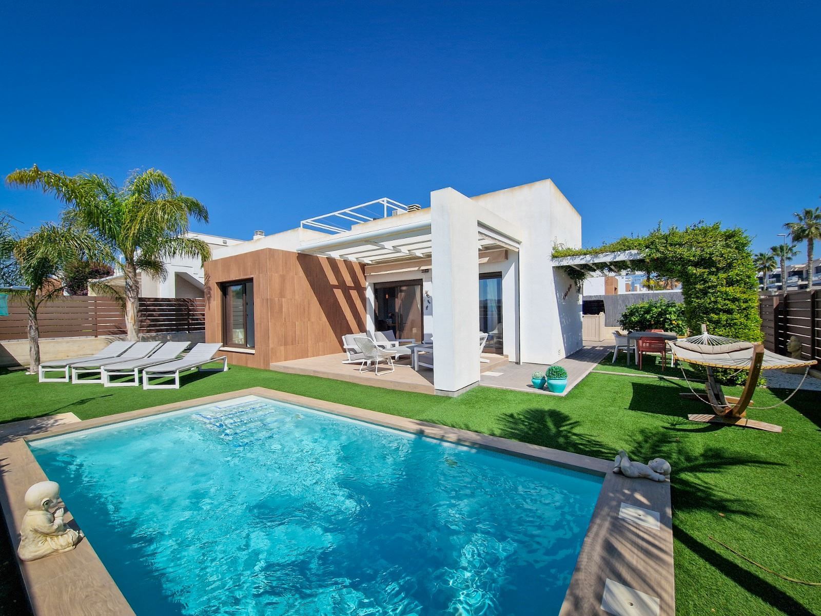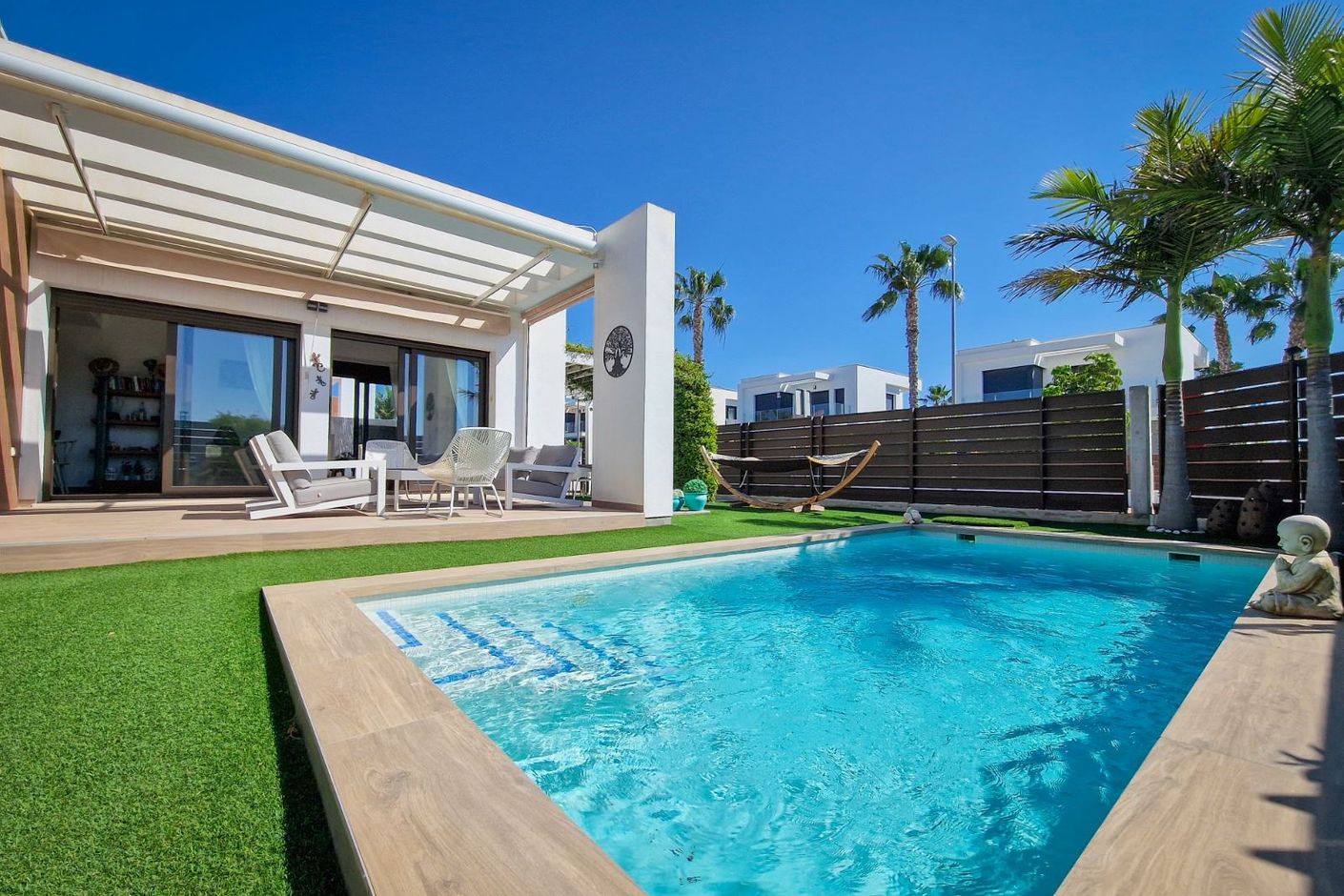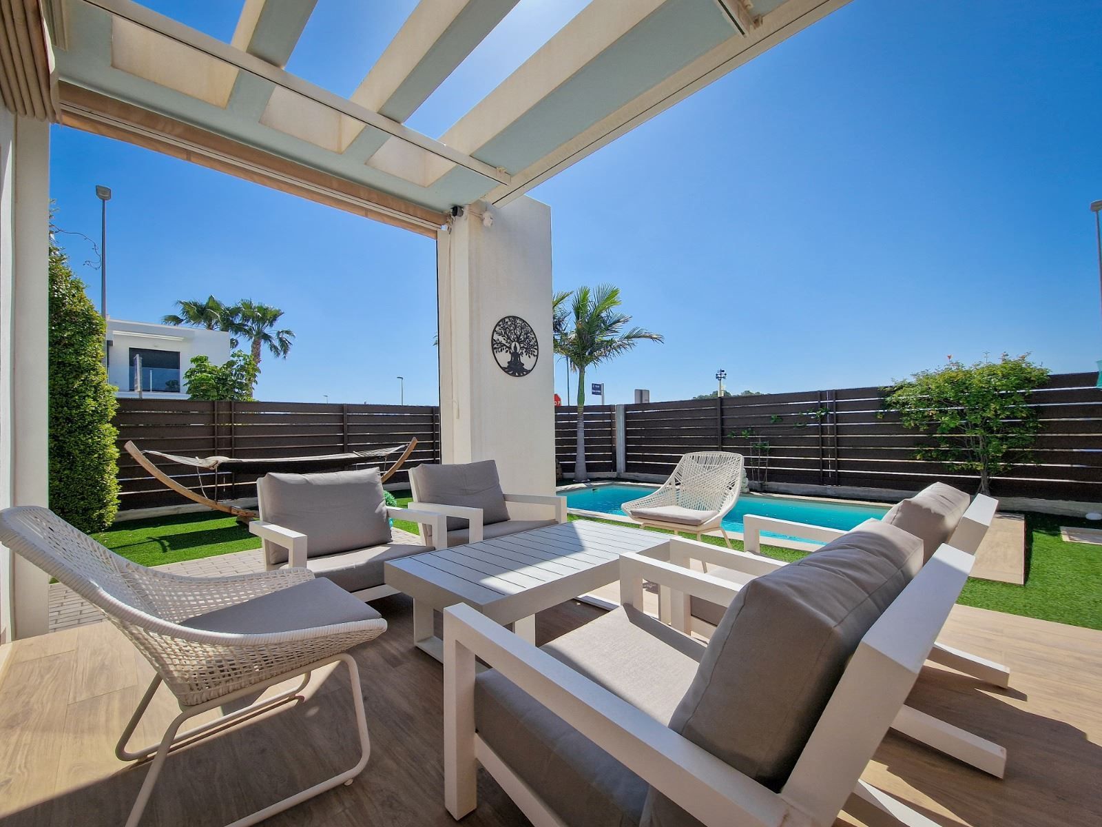 Välkommen till ett hem där varje detalj är noggrant genomtänkt för att erbjuda maximal komfort och elegans. Den sydvända villan ligger på en hörntomt som garanterar ljus, rymd och en känsla av avskildhet – perfekt för dig som vill njuta av Medelhavets sol och värme.