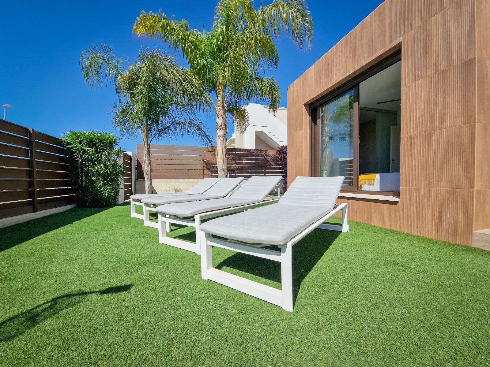 Villan är utrustad med högkvalitativa detaljer som moderna elektriska persienner, säkerhetslarm, elegant utemöblemang och privat parkering diskret placerad bakom huset. Allt detta gör livet bekvämt, säkert och njutbart från första stund.