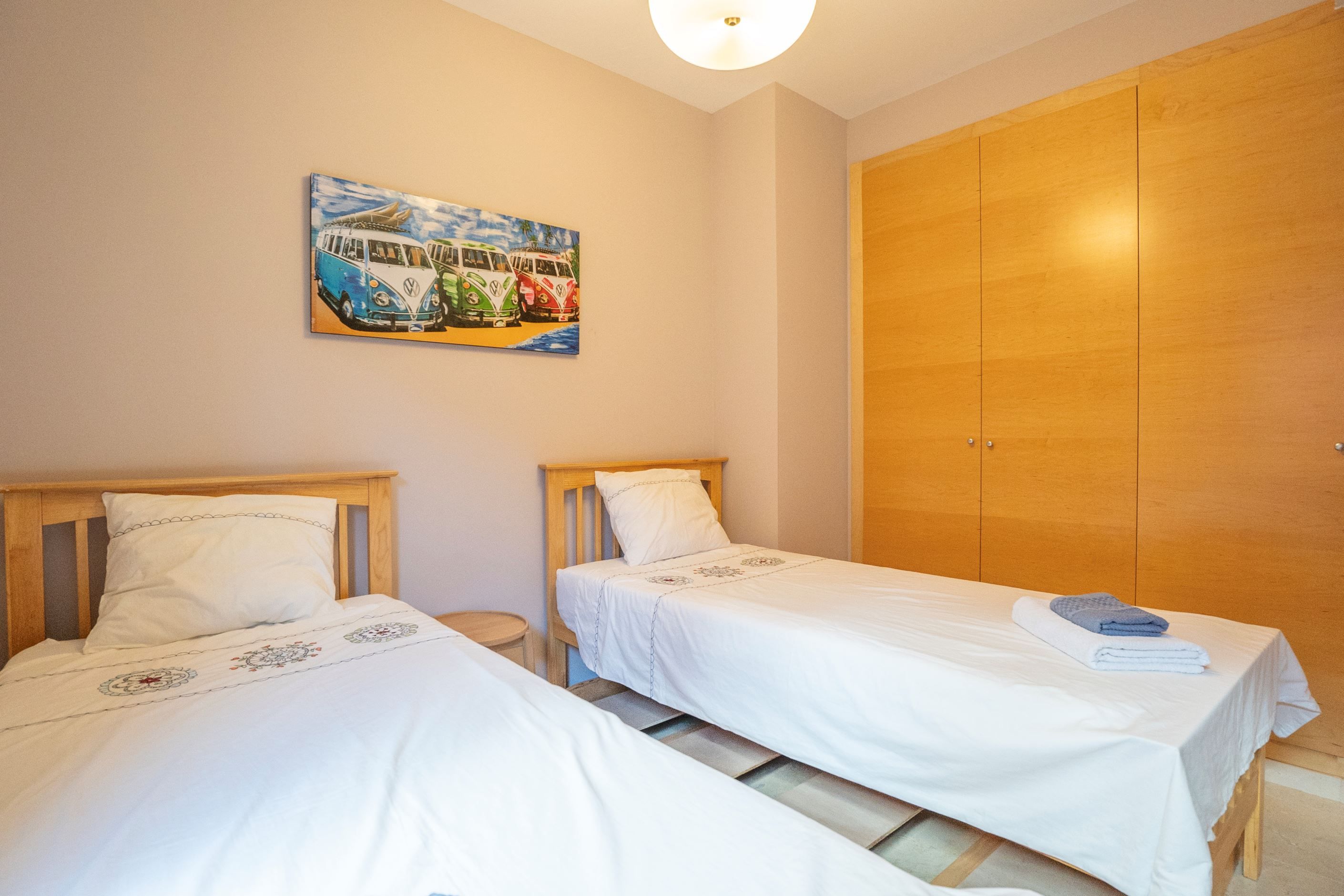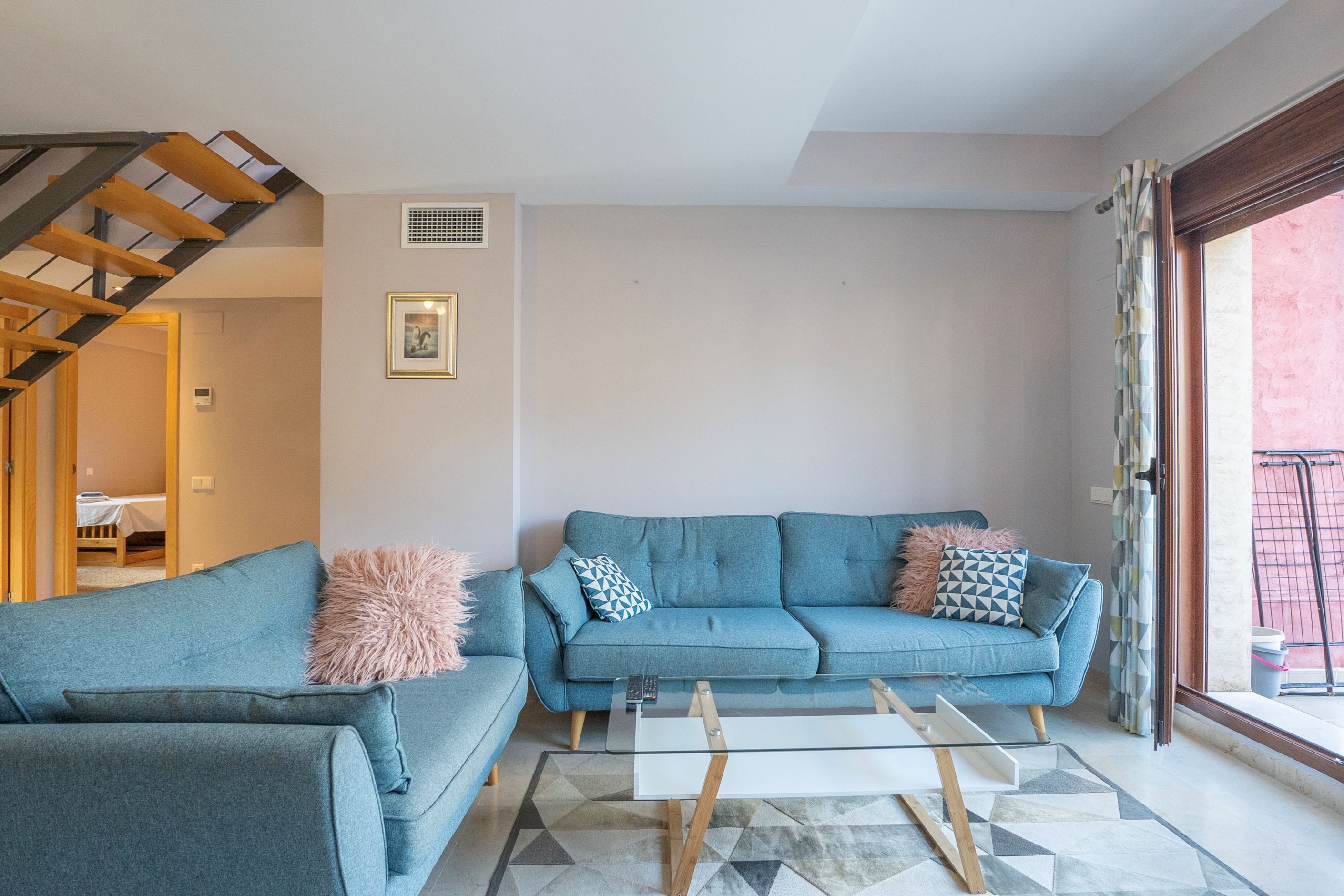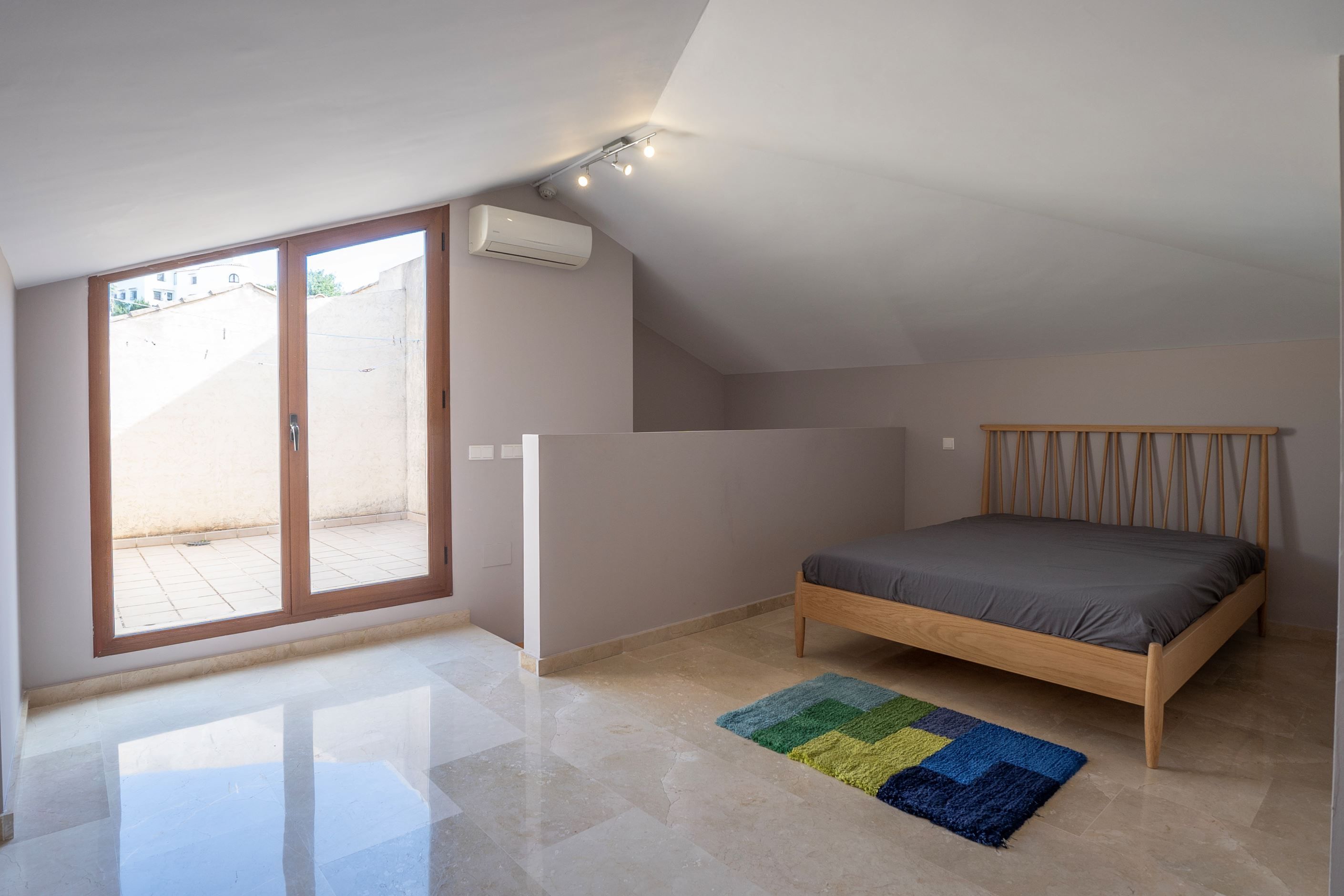 Interiören består av ett öppet kök, ett ljust och rymligt vardagsrum, två sovrum med inbyggda garderober och två badrum, varav ett en suite. Från vardagsrummet finns utgång till en stor terrass med fri utsikt. På övervåningen finns ett extra rum som kan användas som sovrum, kontor eller relaxavdelning, med tillgång till en privat terrass perfekt för att njuta av solen i avskildhet.