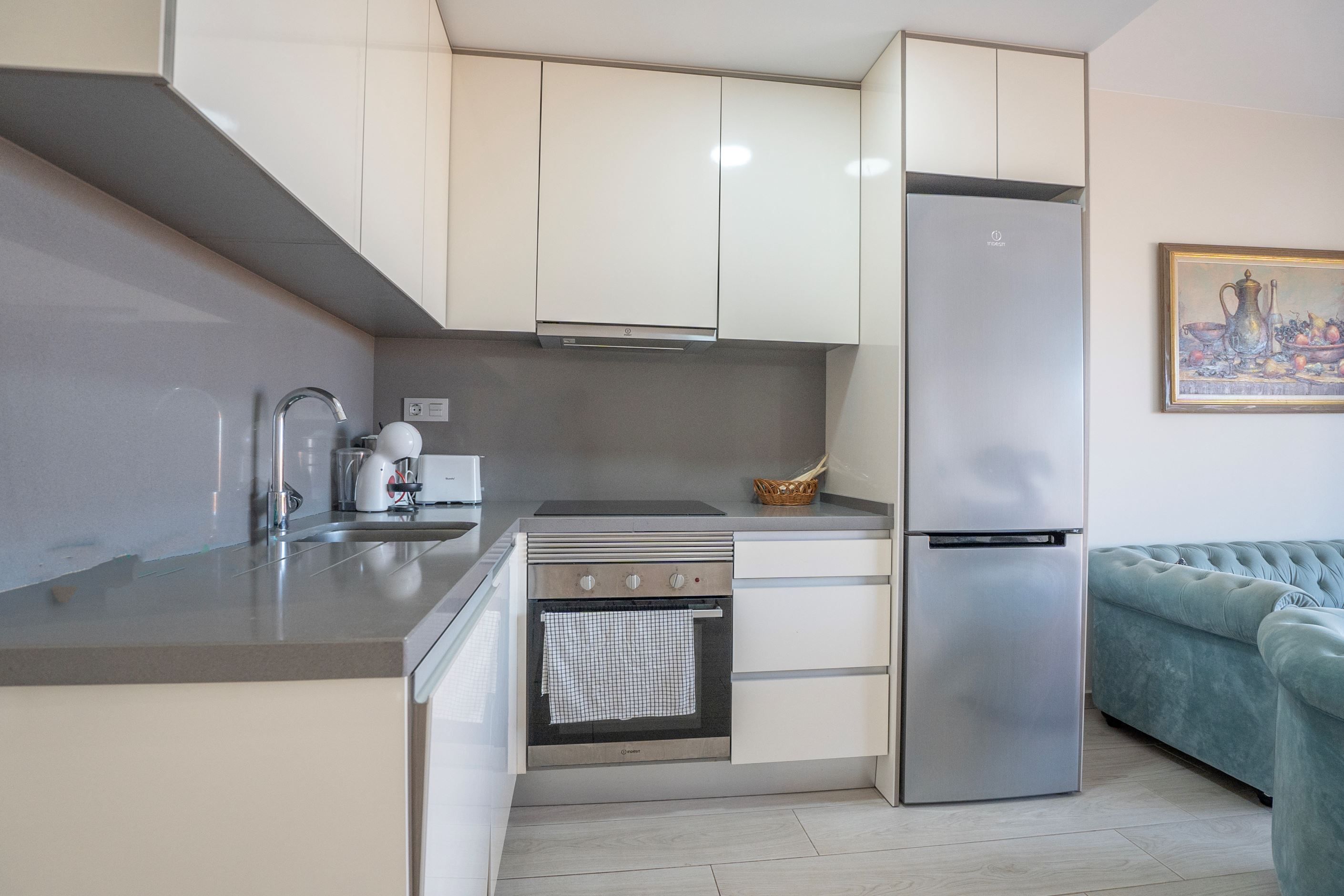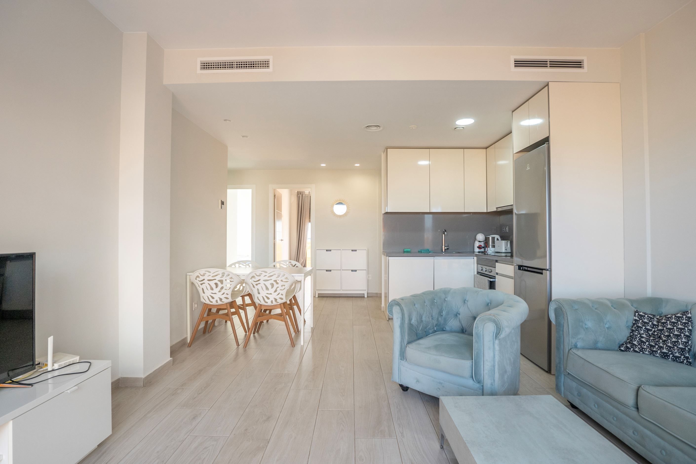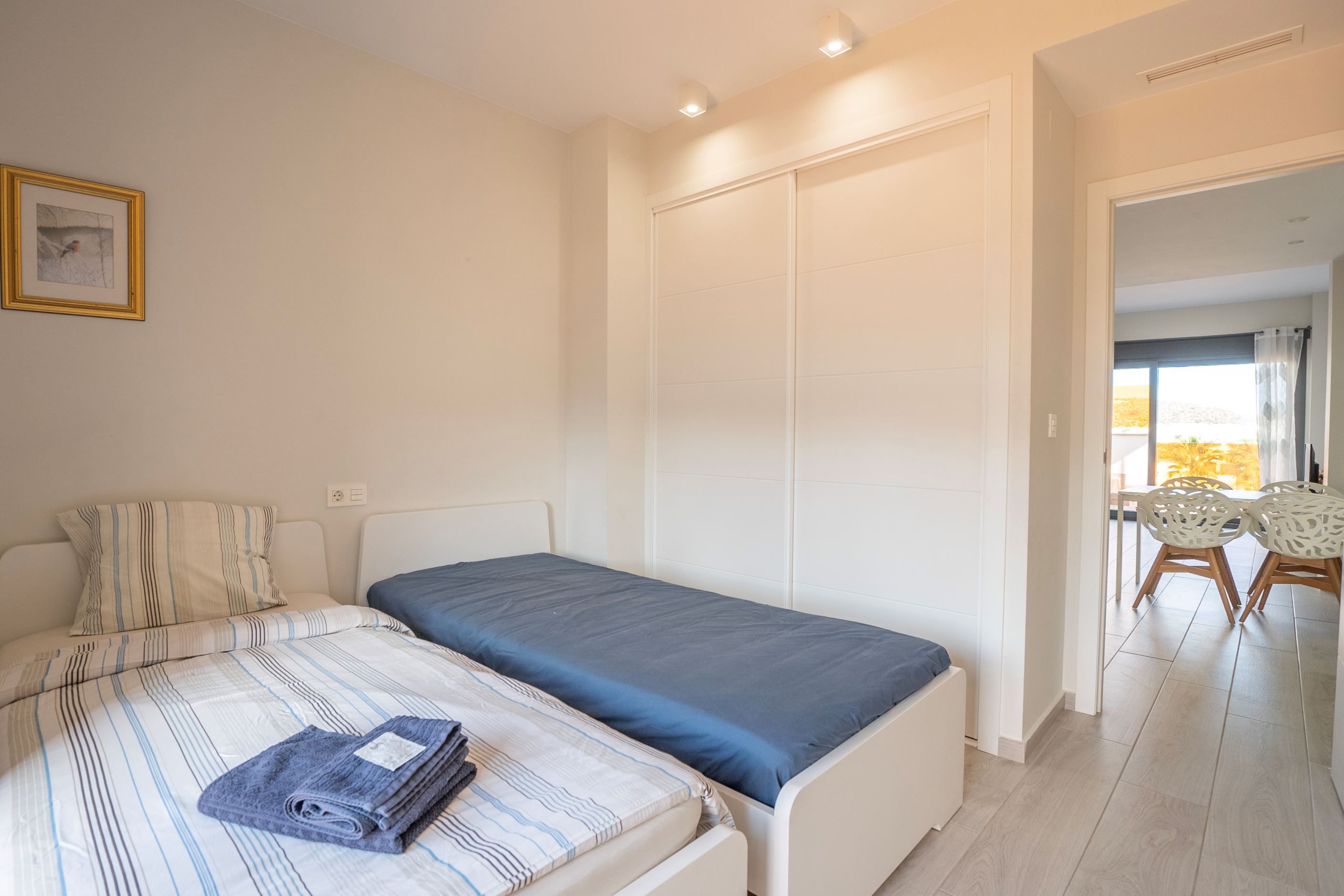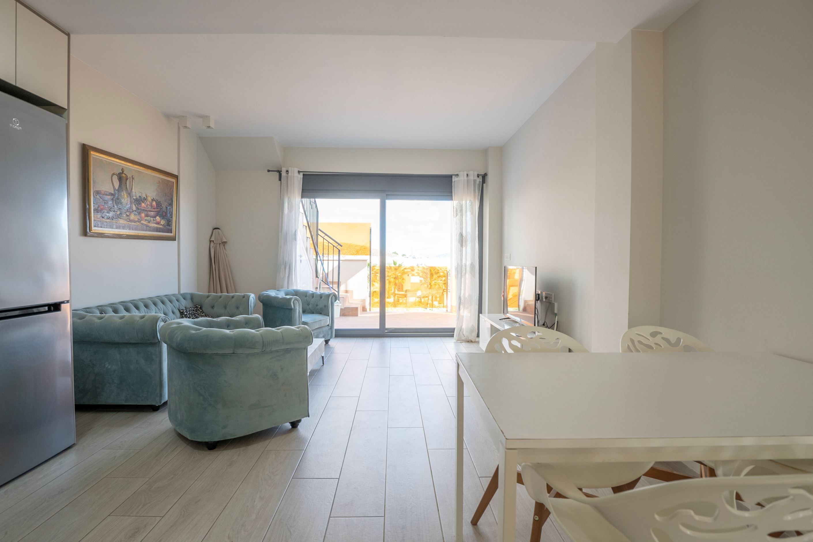 Lägenheten har en ljus och inbjudande atmosfär med fantastisk havs- och bergsutsikt från terrassen och den privata takterrassen. Den säljs fullt möblerad med vitvaror av hög kvalitet, inklusive tvättmaskin, ugn och golvvärme. De rymliga interiörerna och de eleganta materialen skapar ett hem som passar perfekt både för permanent boende och semester.