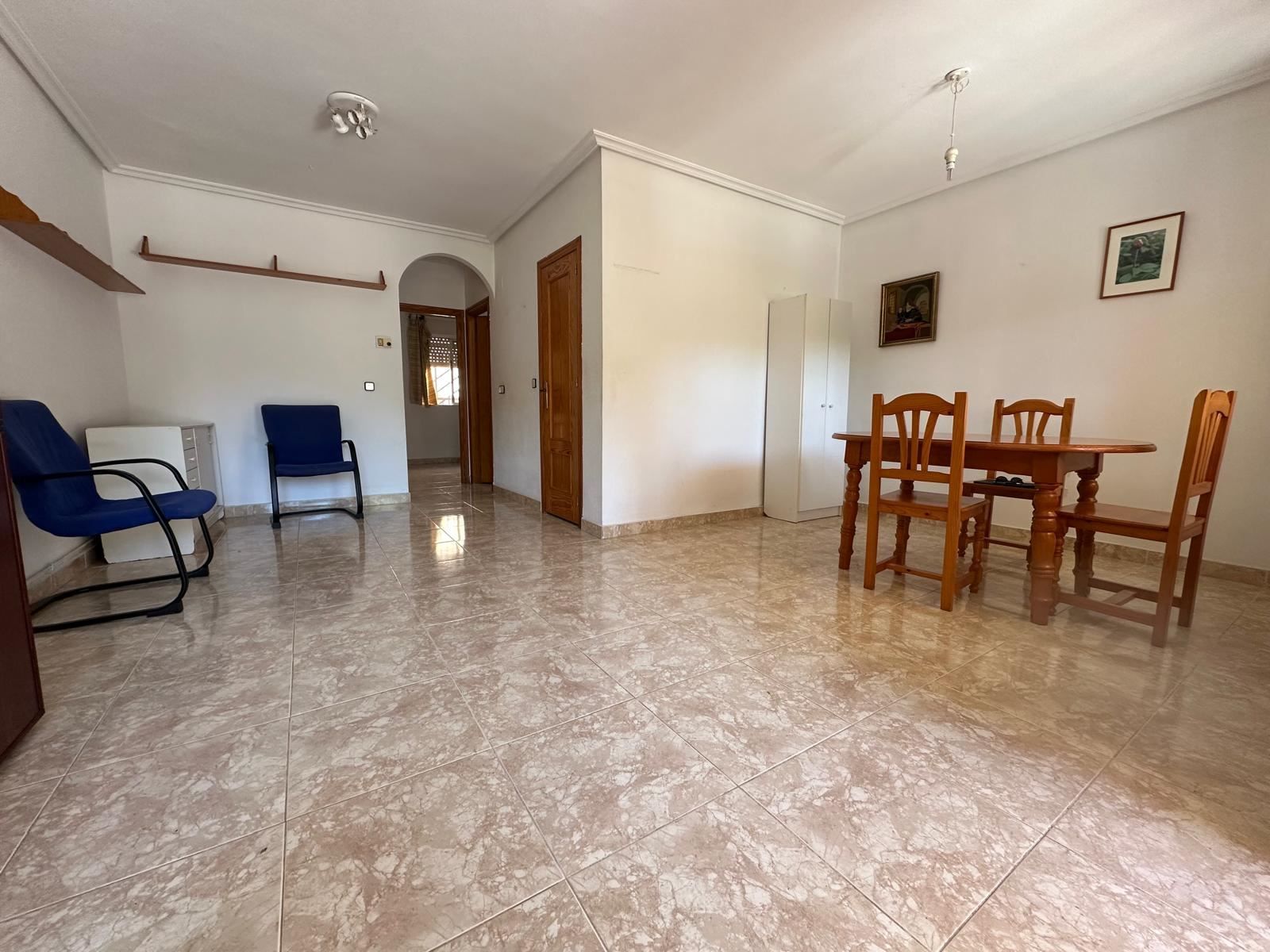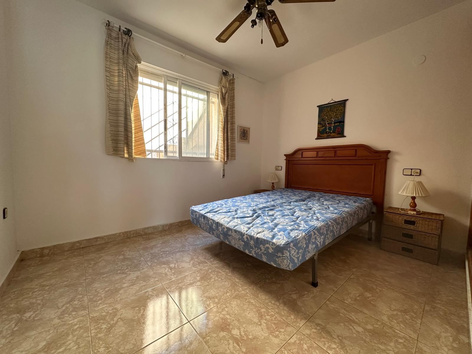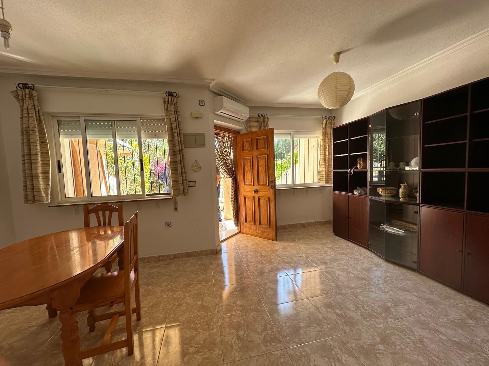 Mitt i den charmiga kuststaden Los Alcázares, bara några steg från det glittrande vattnet i Mar Menor, väntar detta trivsamma radhus på dig som längtar efter ett bekvämt, spanskt vardagsliv i solen. Med två sovrum, två badrum och en placering precis intill en vacker grönskande trädgård, bjuder detta hem på lugn, ljus och ett härligt flöde mellan inne och ute.