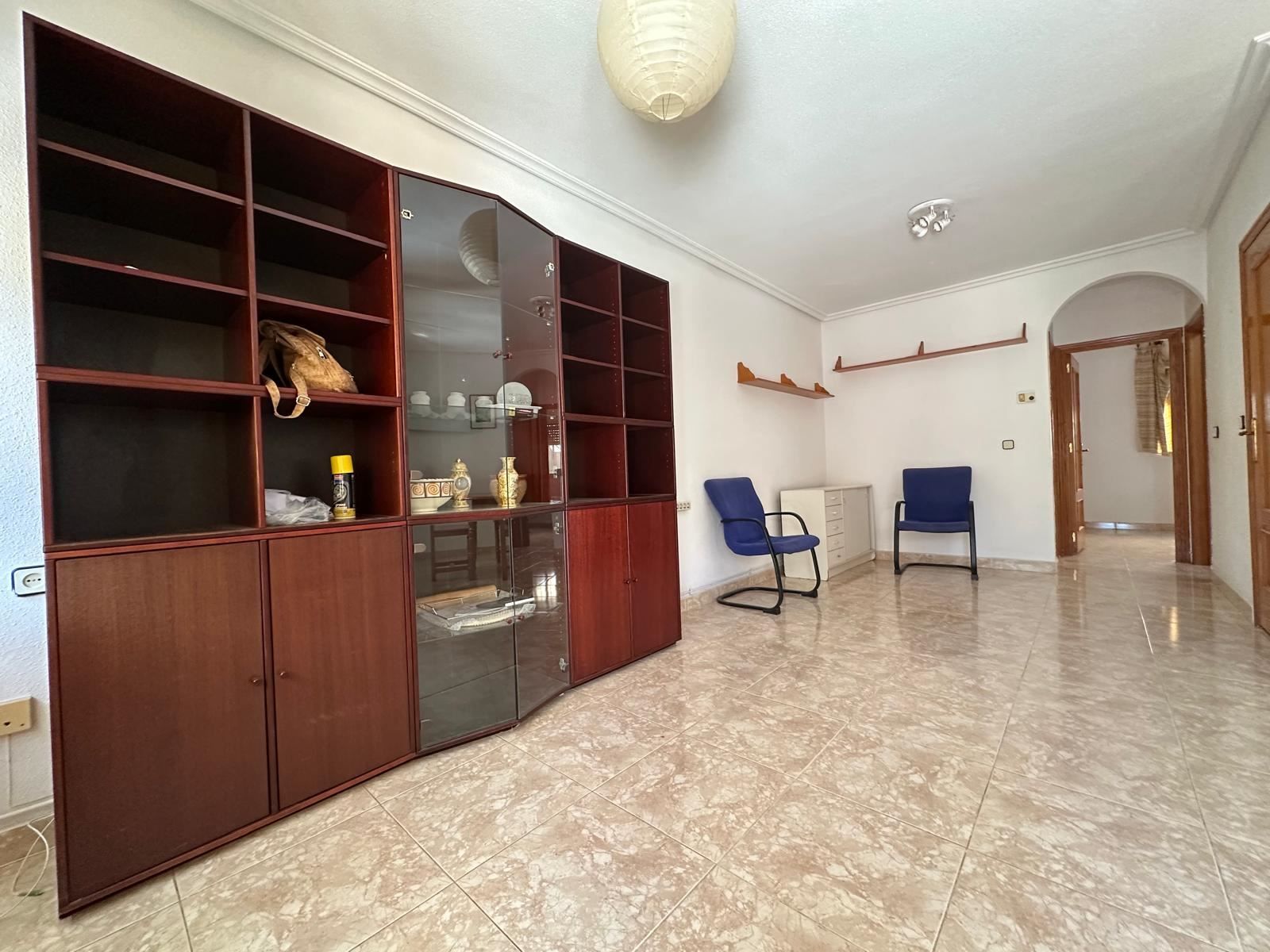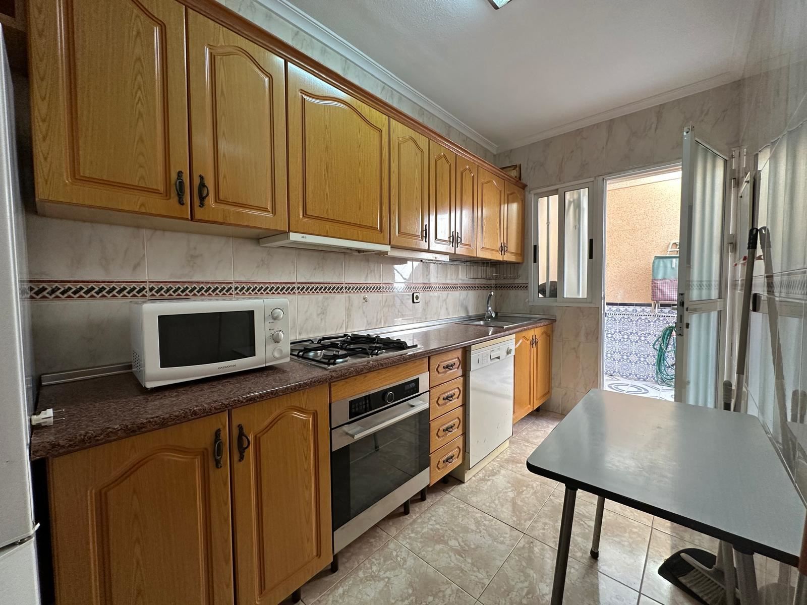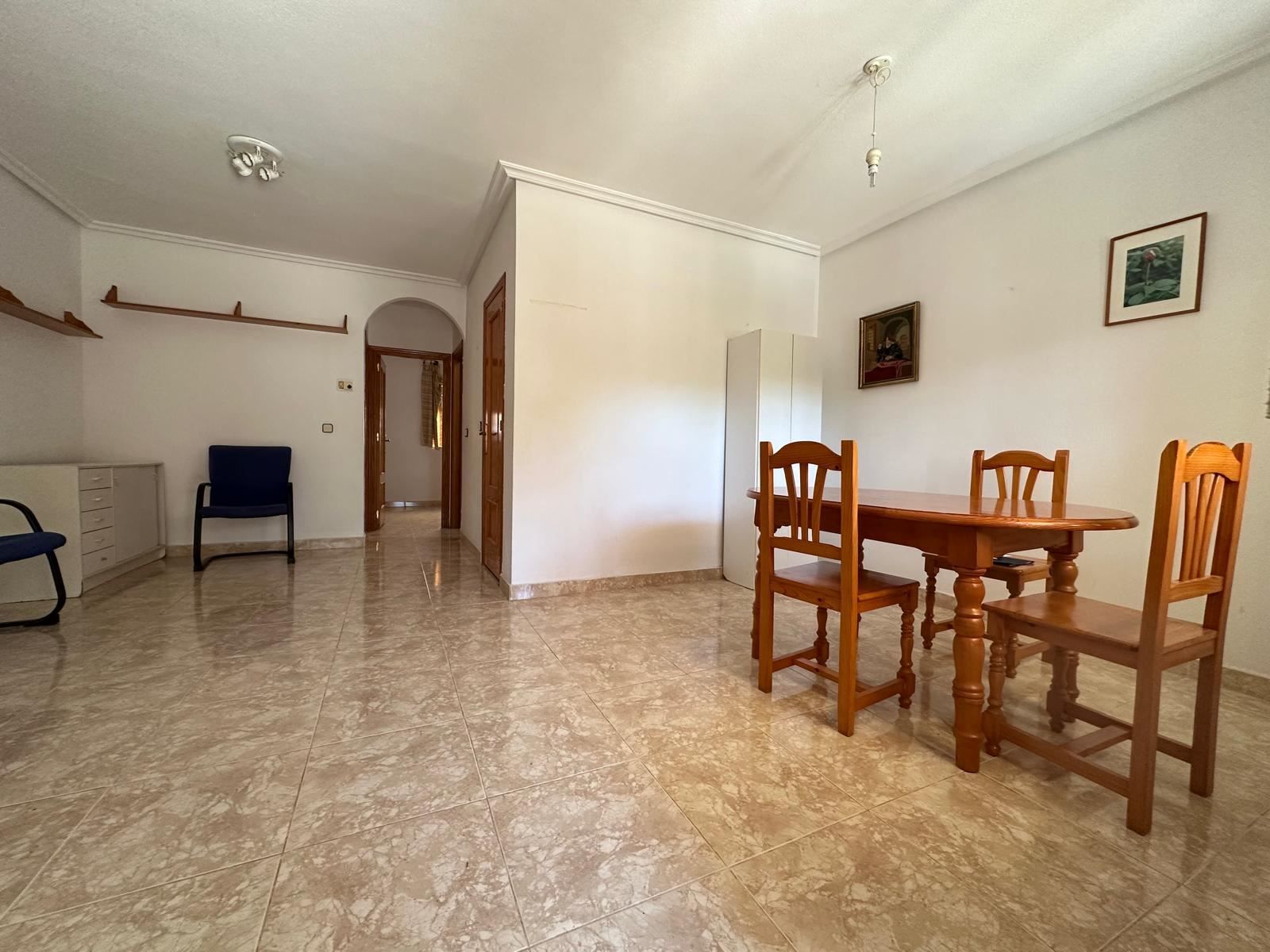 Mitt i den charmiga kuststaden Los Alcázares, bara några steg från det glittrande vattnet i Mar Menor, väntar detta trivsamma radhus på dig som längtar efter ett bekvämt, spanskt vardagsliv i solen. Med två sovrum, två badrum och en placering precis intill en vacker grönskande trädgård, bjuder detta hem på lugn, ljus och ett härligt flöde mellan inne och ute.
