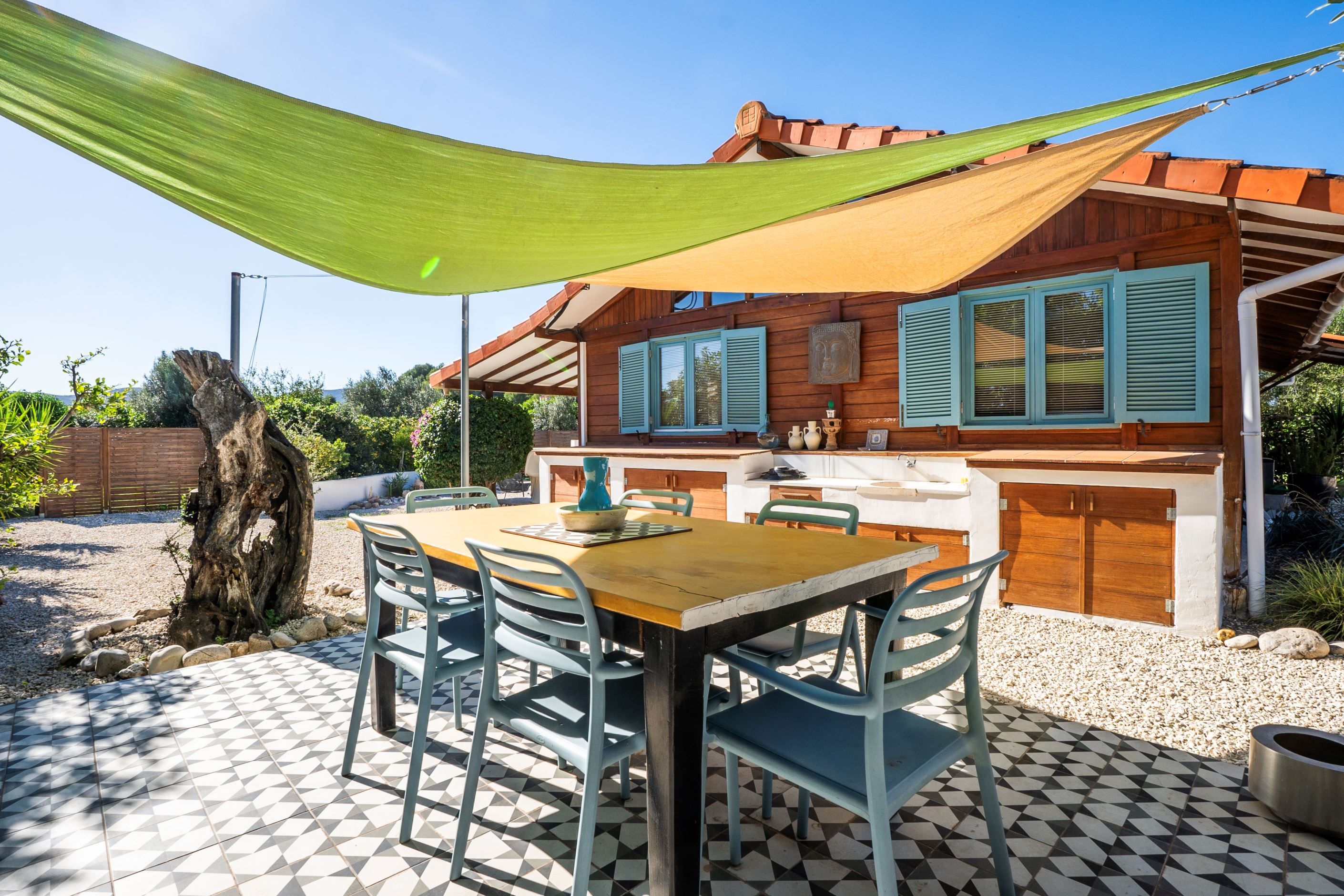 Inne i huset bevaras värmen och karaktären från den traditionella medelhavsstilen, med natursten, synliga bjälkar och en planlösning som flyter harmoniskt mellan rummen. Huset har bekväma sovrum, ljusa utrymmen och ett kök skapat för dem som värdesätter enkelhet och närhet till naturen. Varje hörn berättar en historia om lugn och äkthet, perfekt för den som söker ett off-grid eller hållbart liv.
