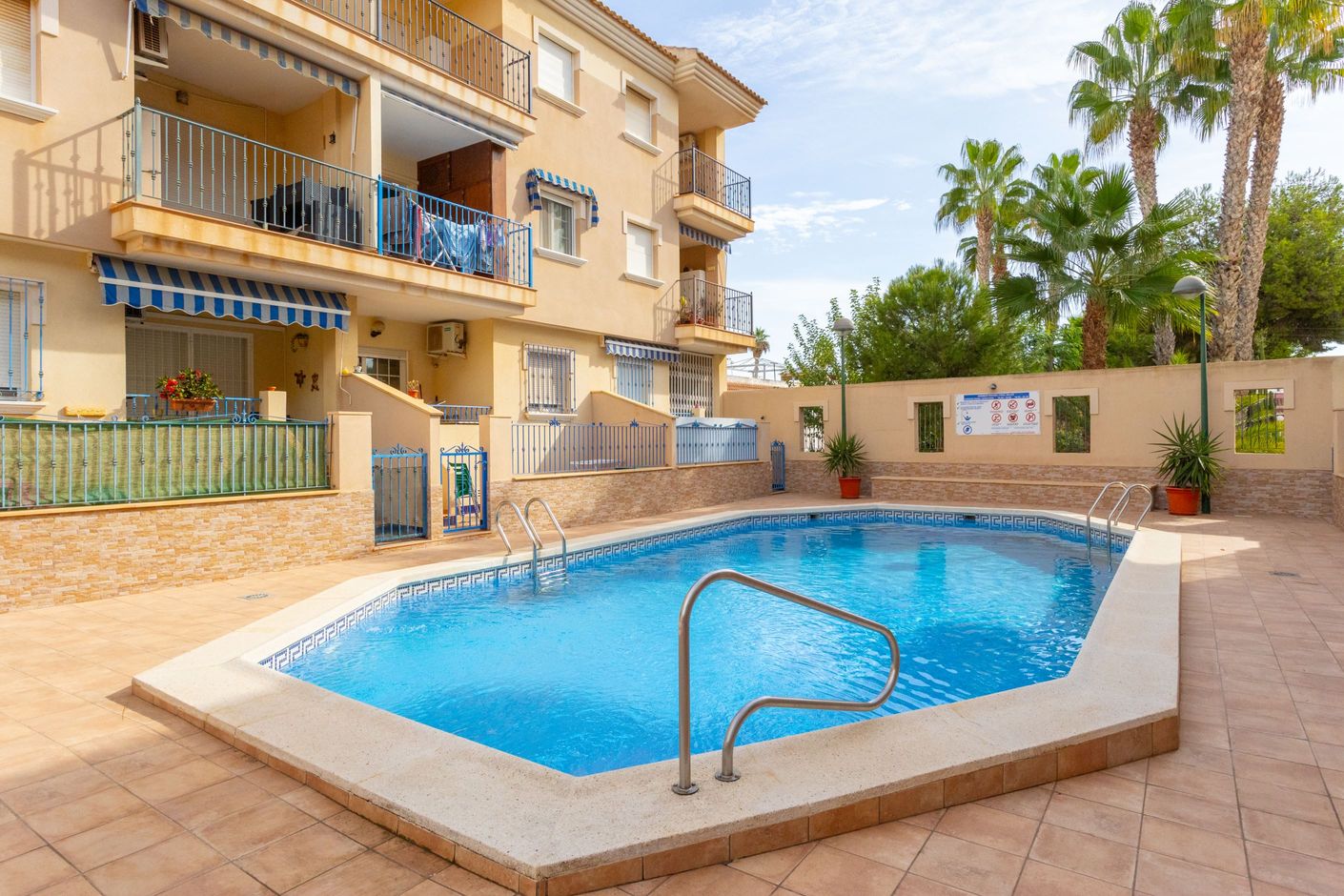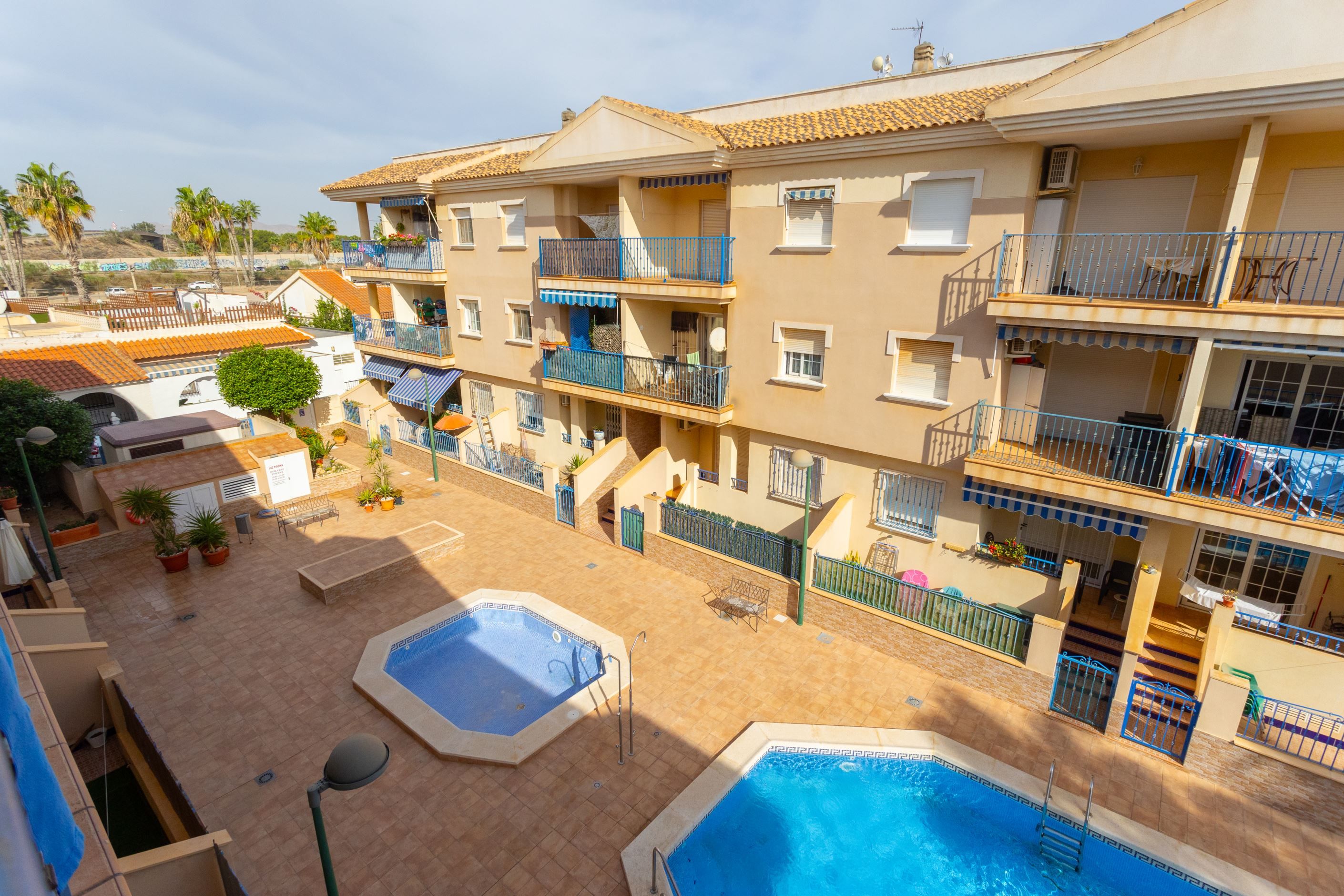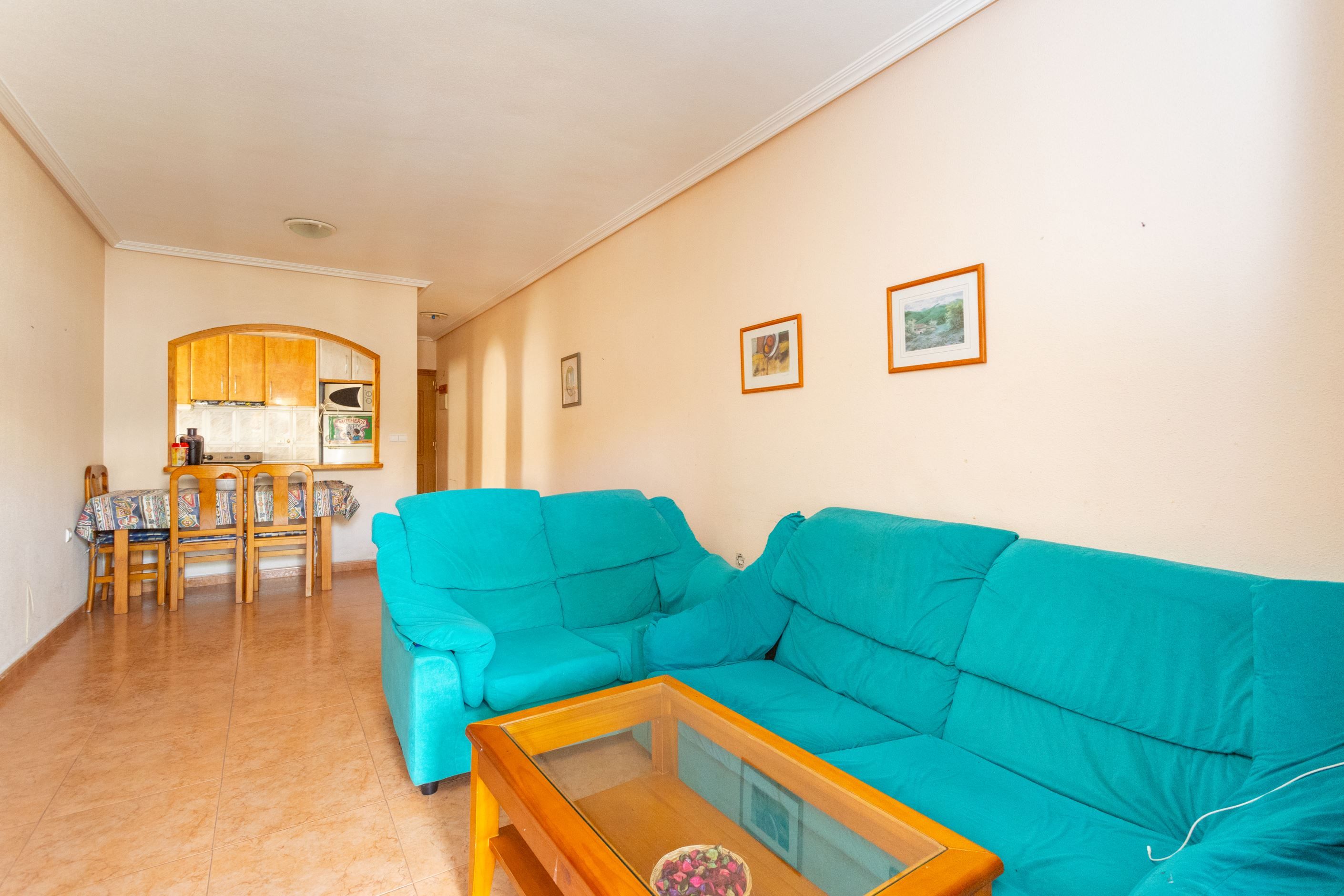 Varmt välkommen till denna hemtrevliga lägenhet med balkong och takterrass belägen i populära Los Narejos. Lägenheten ligger på andra våningen i en byggnad med hiss och består av två sovrum, ett badrum, vardagsrum och kök.