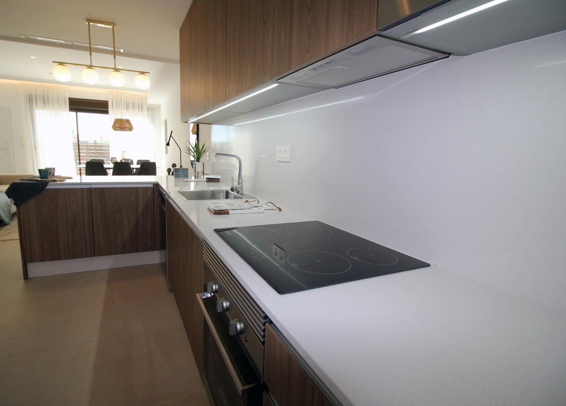 Vi är glada att kunna presentera dessa nybyggda, moderna radhus i Pilar de la Horadada – en charmig spansk by längst i södra delen av Costa Blanca. Bostäderna erbjuder fyra sovrum och två badrum, öppet kök och ett rymligt vardagsrum med direkt utgång till det mysiga poolområdet, perfekt för varma dagar och sociala stunder med familj och vänner.