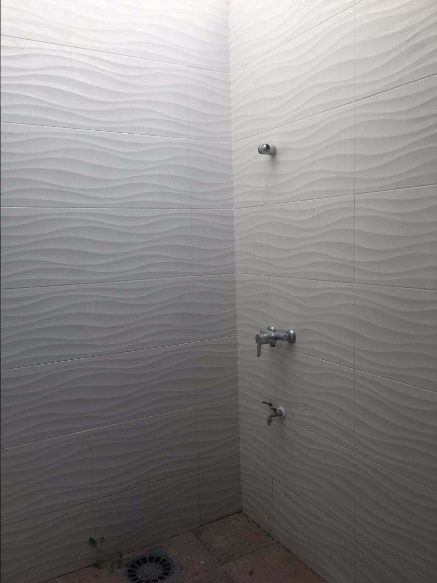 På uteplatsen på baksidan finns plats för tvättmaskin och utedusch medan det på den större uteplatsen på framsidan som har ett soligt läge finns gott om plats för solstolar och loungemöbler, härifrån bjuds en fin utsikt mot vattnet och parken utanför.