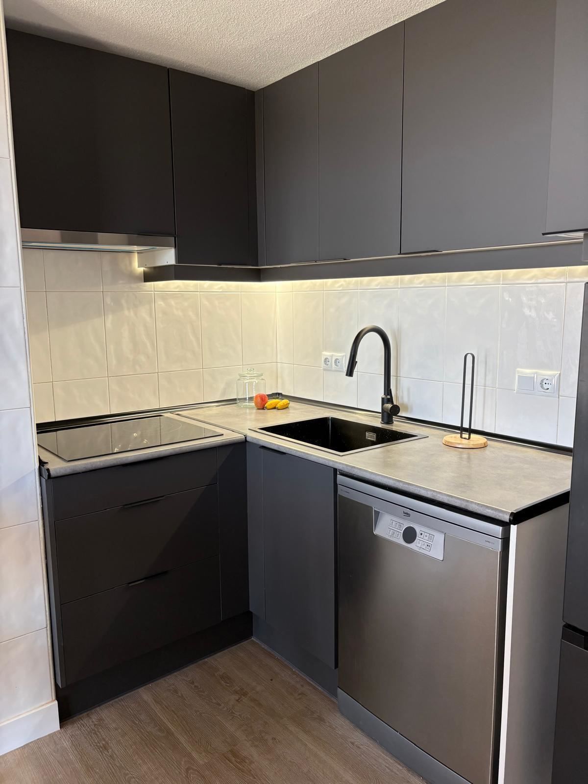 Lägenheten är belägen på femte våningen med hiss och är utrustad med luftkonditionering för både svalka och värme, vilket ger ett behagligt inomhusklimat året runt.