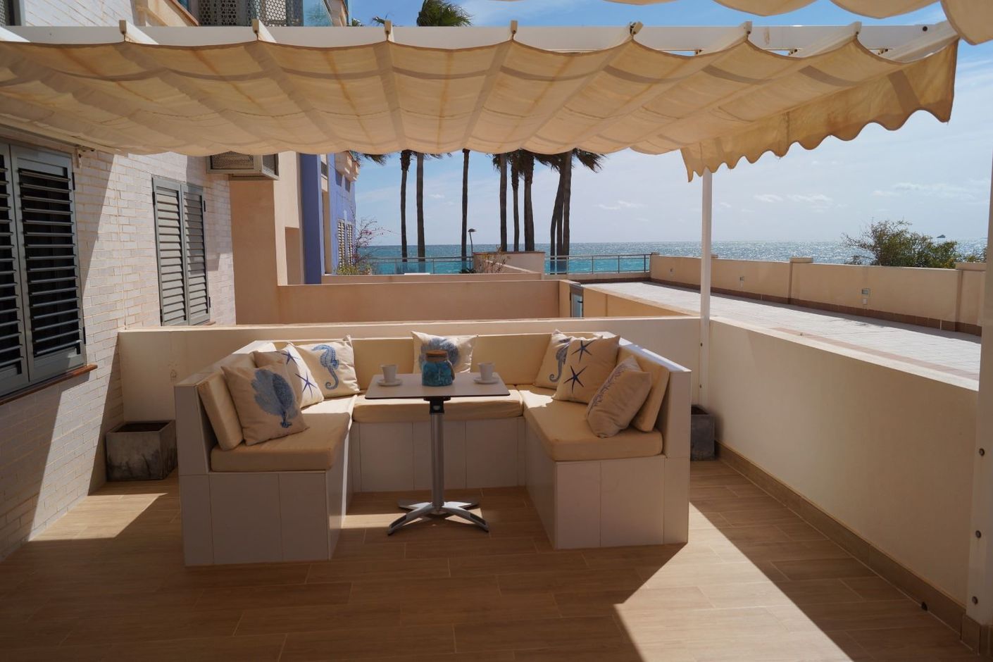Modern och strandnära lägenhet med stor terrass och gemensam pool