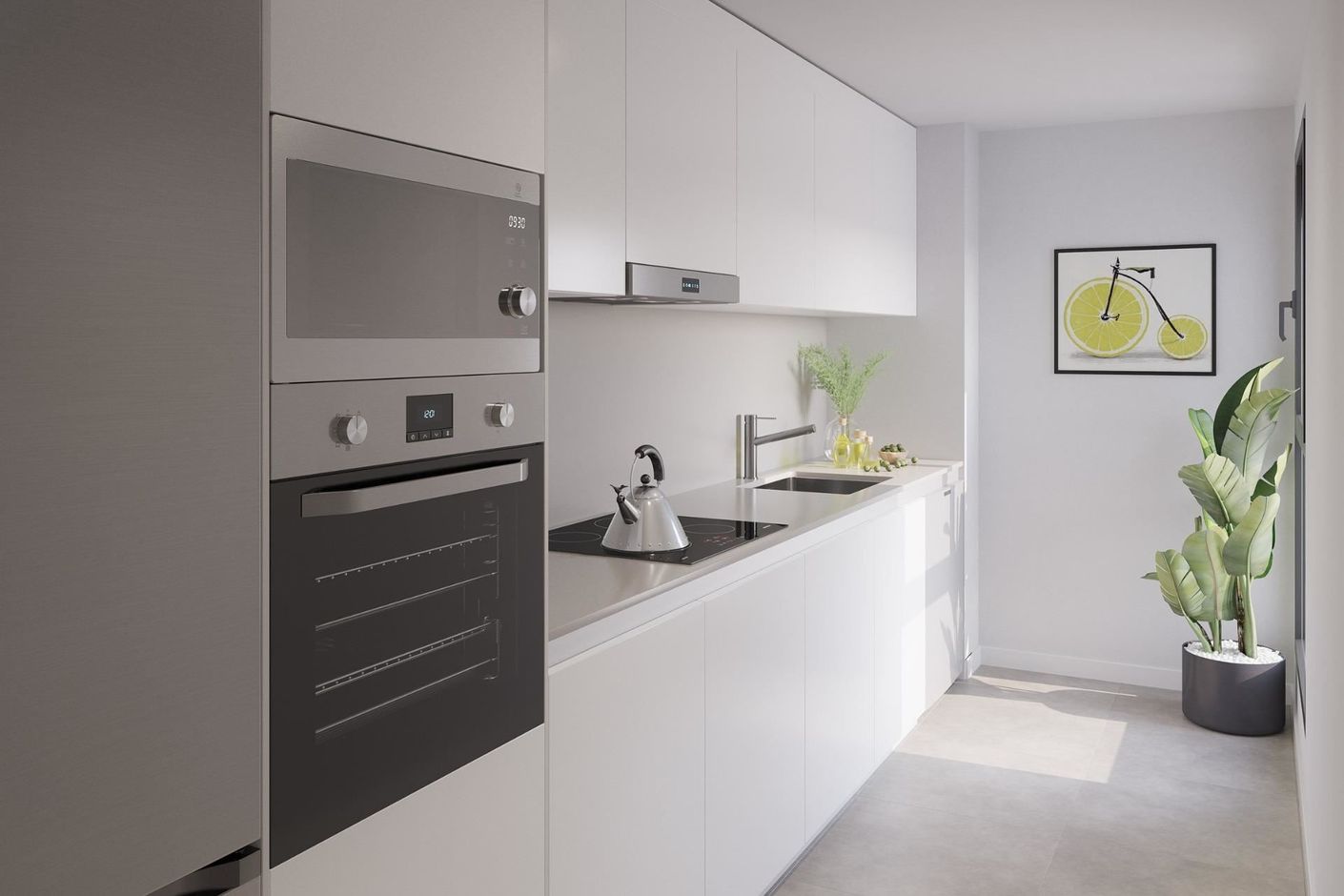 Bostadsområdet består av lägenheter med 1, 2 och 3 sovrum med ljusa terrasser och spektakulära takvåningar med terrasser på mer än 125 kvadratmeter och panoramautsikt. Varje bostad har garage och förråd för maximal bekvämlighet.