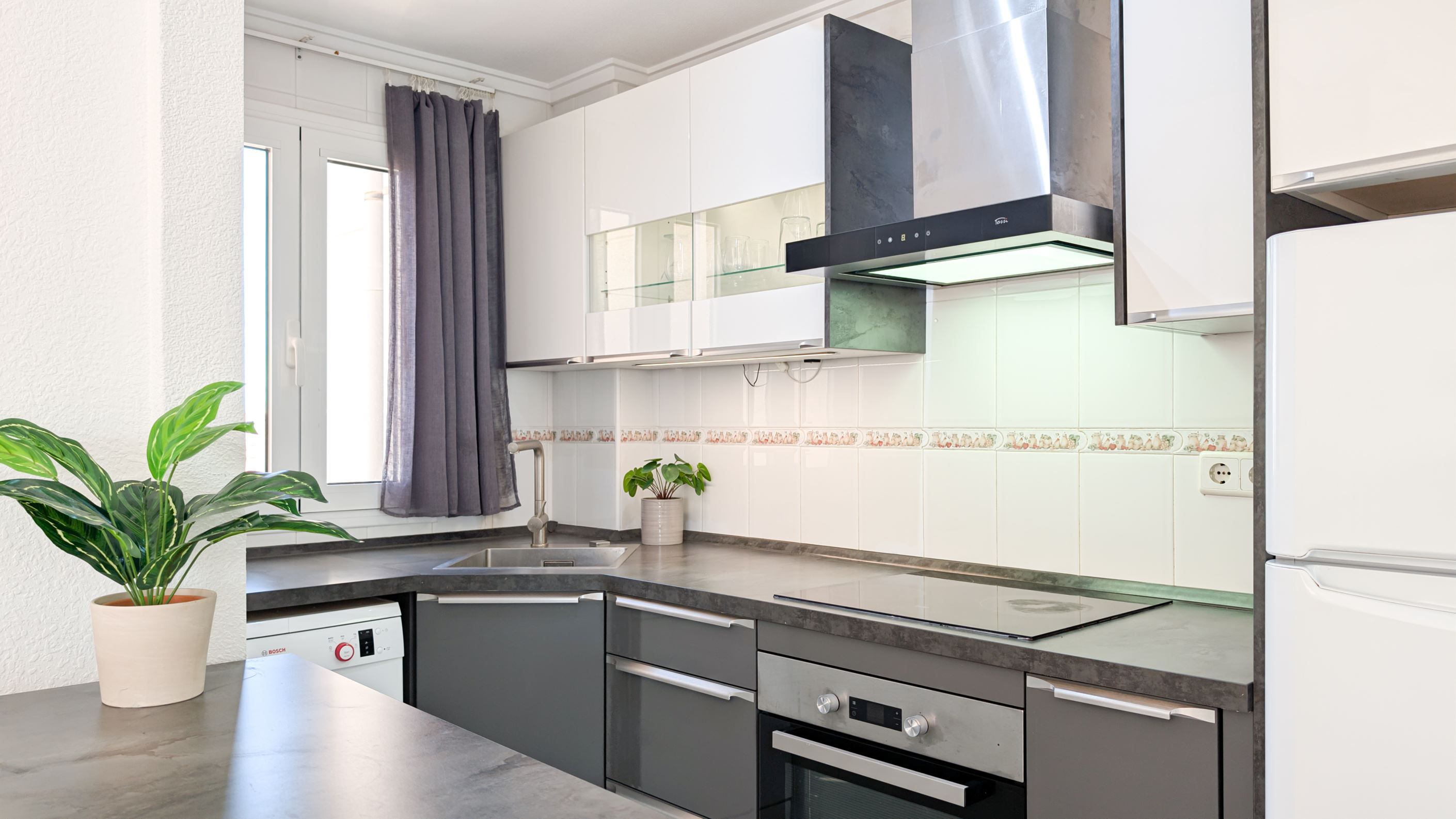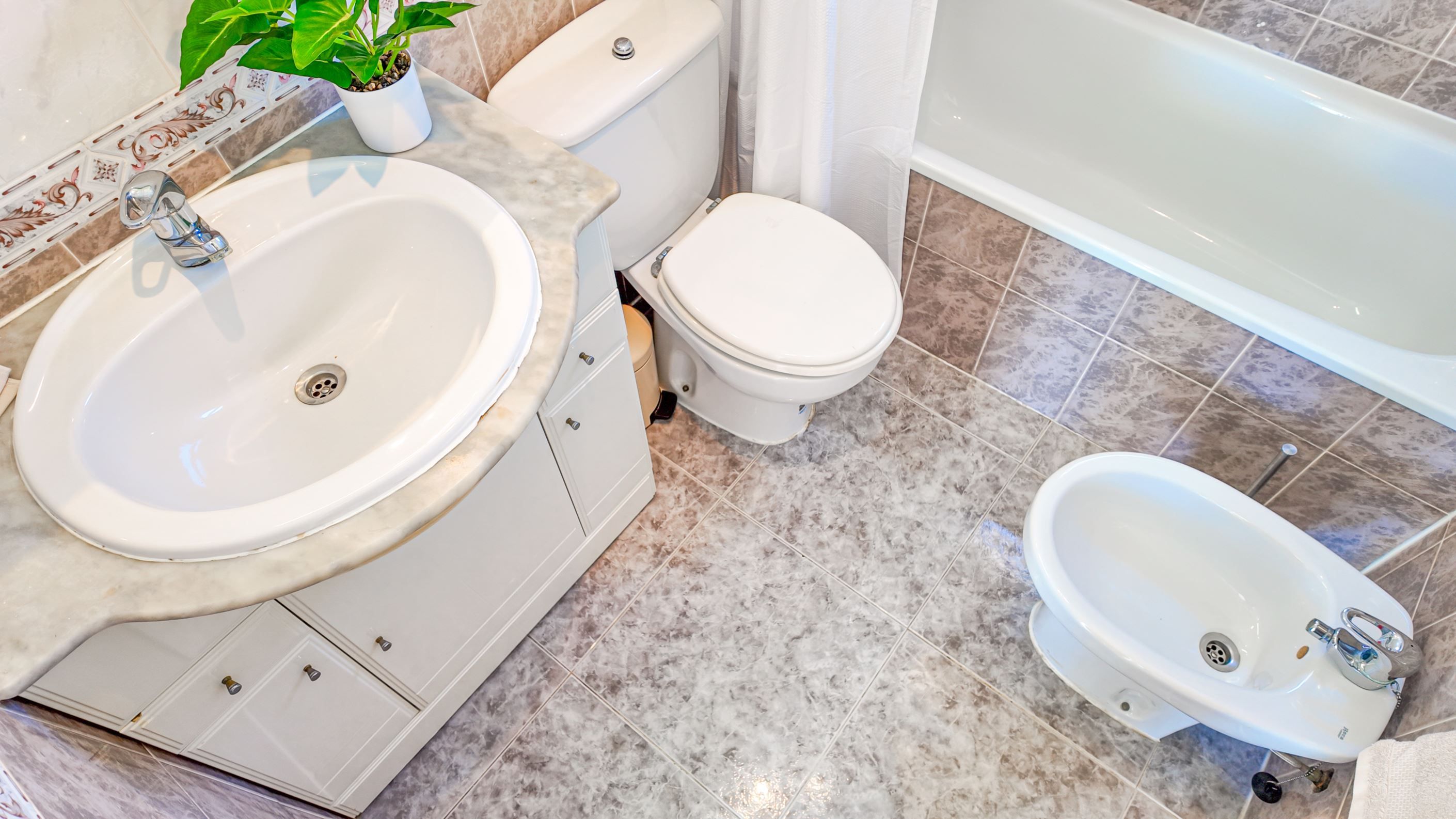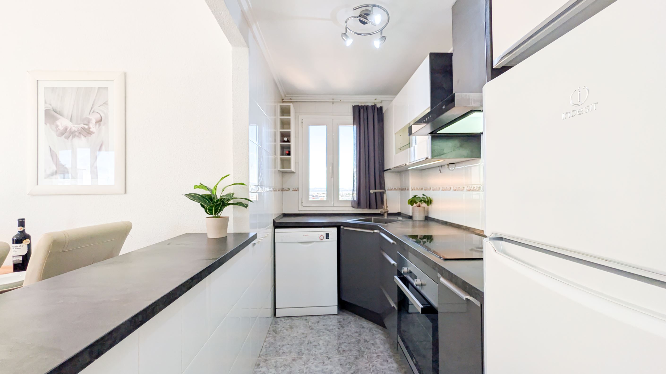 Badrummen är smakfullt renoverade: masterbadrummet med dusch, WC och tvättmaskin färdigställdes 2020, medan det andra badrummet, utrustat med badkar och WC, ligger intill de övriga sovrummen. Lägenheten säljs fullt möblerad, inklusive köksutrustning, sängar, TV och utemöbler – bara att flytta in!