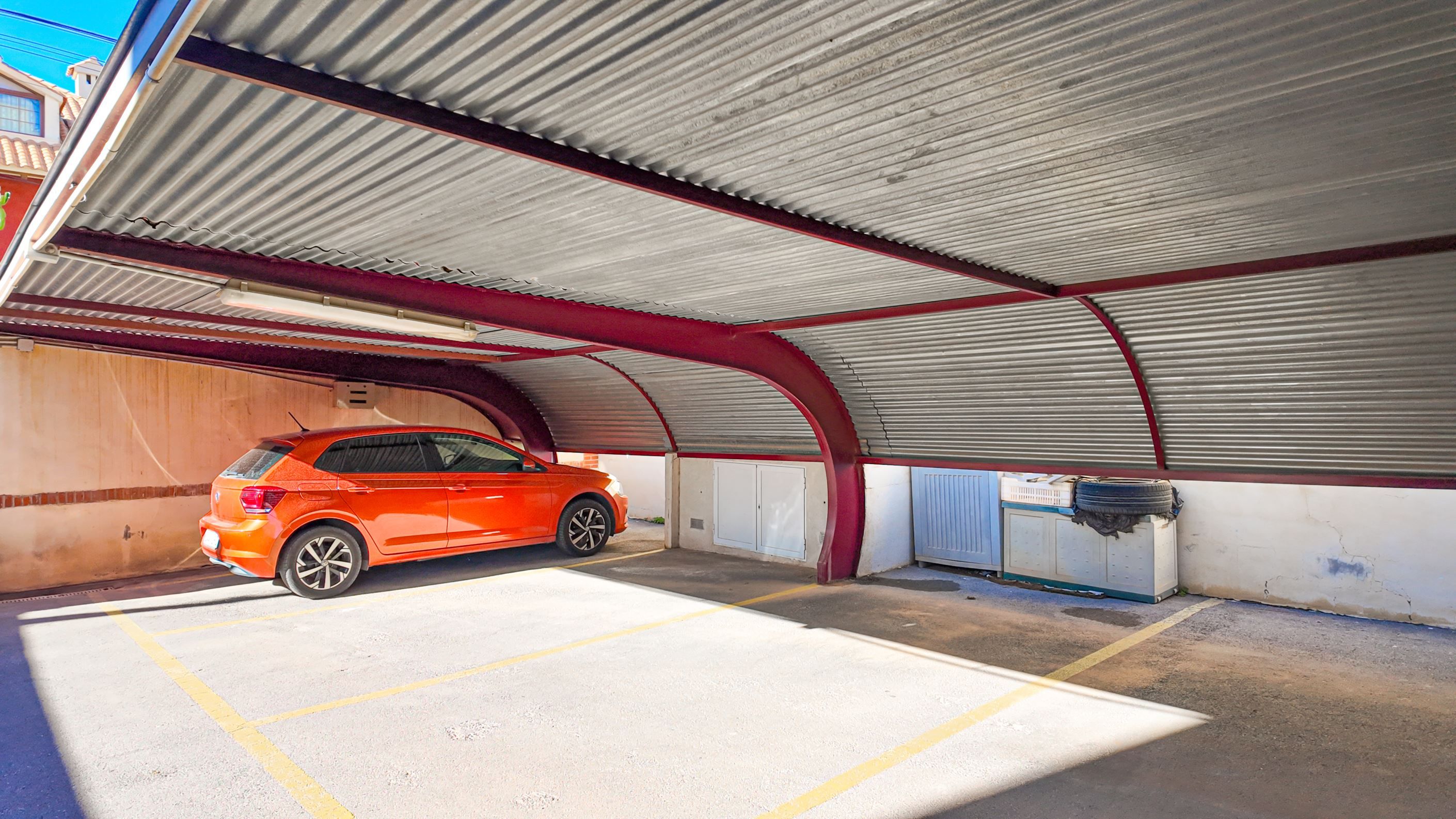 Till lägenheten finns möjlighet att köpa en privat parkeringsplats i separat, täckt parkeringsområde (såld separat för 10?000 €). Bostadsområdet erbjuder även gemensam pool och lekplats för barn.