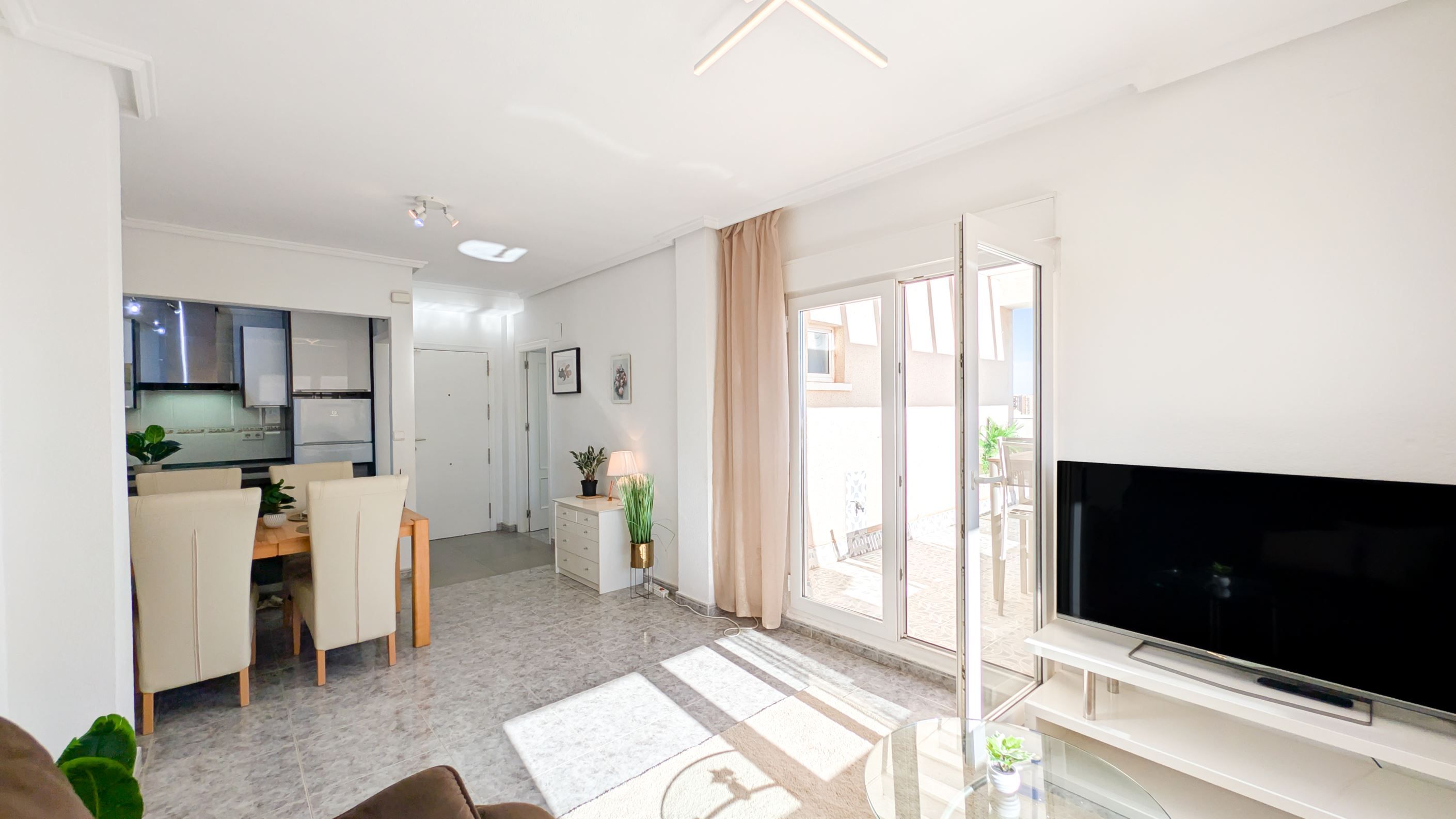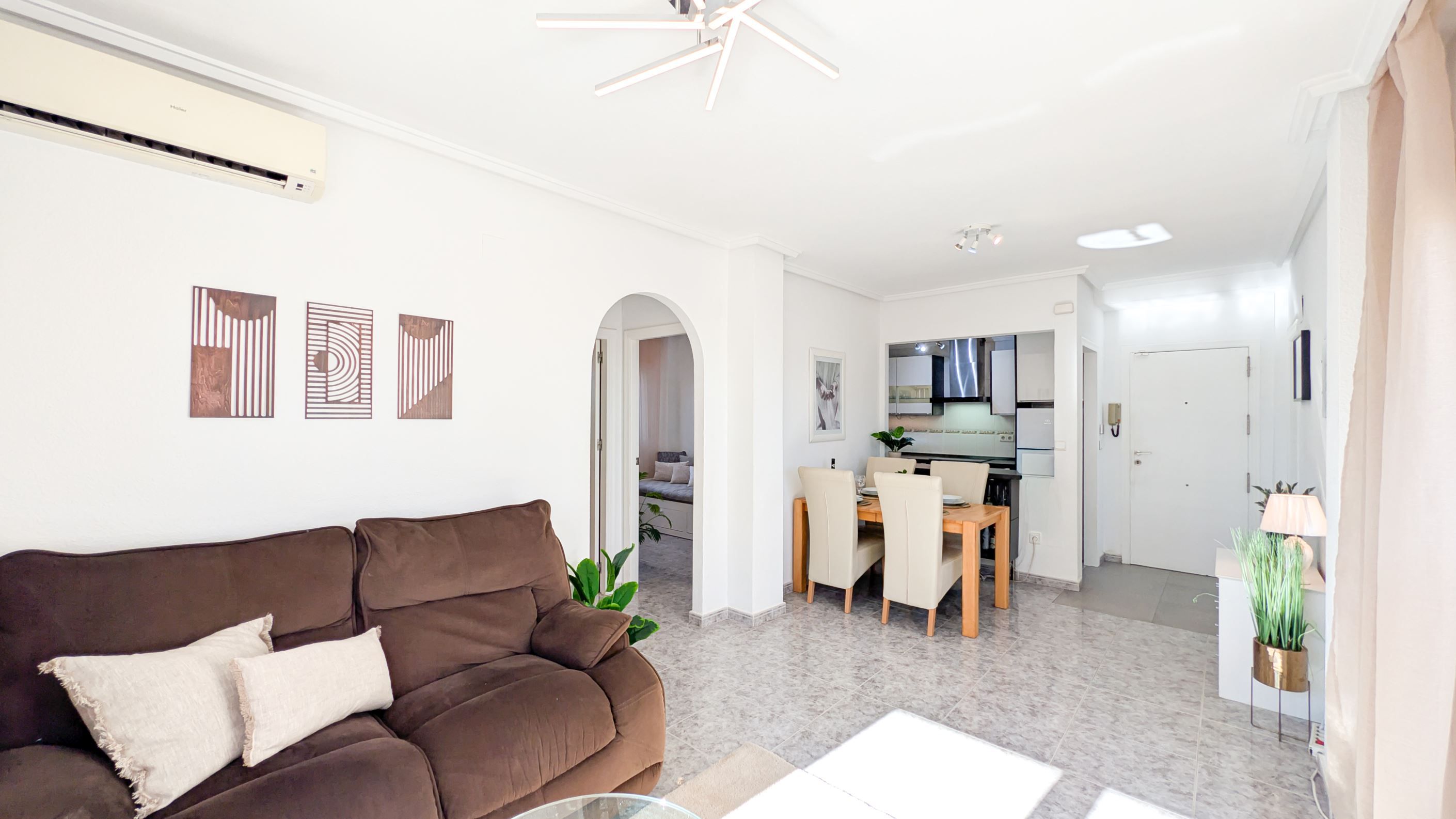 Med ett lugnt läge men ändå mitt i närheten av restauranger, butiker och service är detta hem perfekt för både permanentboende och semester. Till stranden och den berömda strandpromenaden i Torrevieja är det endast cirka 15 minuters promenad, där du kan njuta av några av Spaniens renaste badvatten.