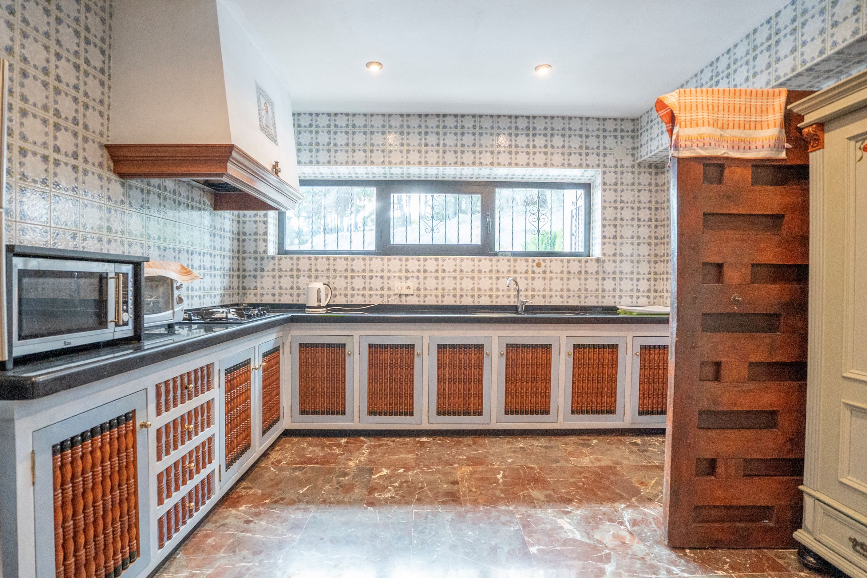 Bostaden omfattar 250 m² fördelade på två våningar och utmärker sig genom rymd, ljus och en varm medelhavskaraktär. Här finns ett rymligt vardagsrum, fullt utrustat kök, tre generösa sovrum varav ett med eget badrum, samt tre eleganta badrum. Stora fönster släpper in naturligt ljus och ger vyer över landskapet från varje rum.