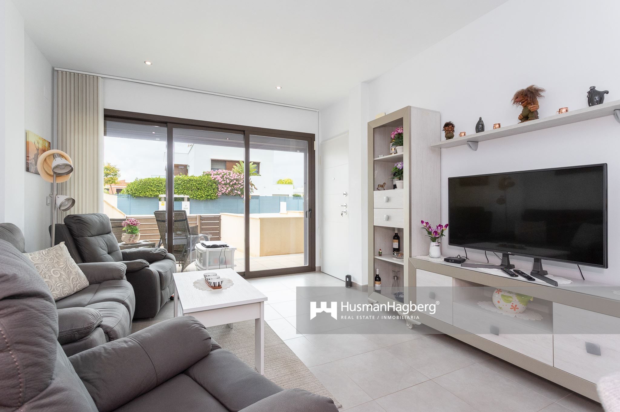 Välkommen till ett ljust och smakfullt hem där du kan njuta av livet året runt – perfekt beläget nära den glittrande lagunen Mar Menor. Denna trivsamma bostad om ca 80 kvm erbjuder tre välplanerade sovrum och två fräscha badrum, idealiskt för både par och familjer som söker en plats att kalla sitt eget på soliga Costa Blanca.