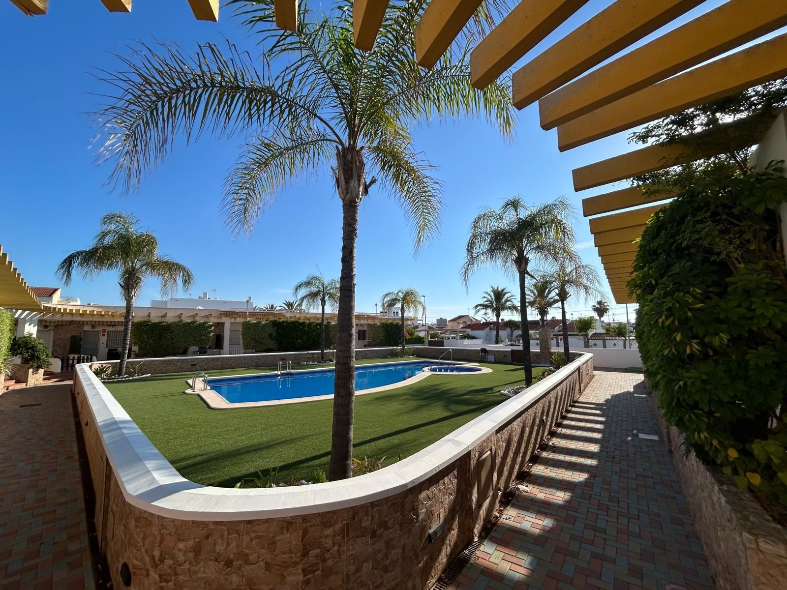 Välkommen till ett charmigt radhus beläget i det eftertraktade området Mil Palmeras – en plats där lugnet möter närheten till havet och vardagen får ett skimmer av semesterkänsla. Här bor du i ett välplanerat hem med två sovrum, ett stilrent badrum och en inbjudande sällskapsyta där kök och vardagsrum möts i en harmonisk helhet. Ljuset strömmar in genom fönstren och förstärker den luftiga känslan i hela bostaden.