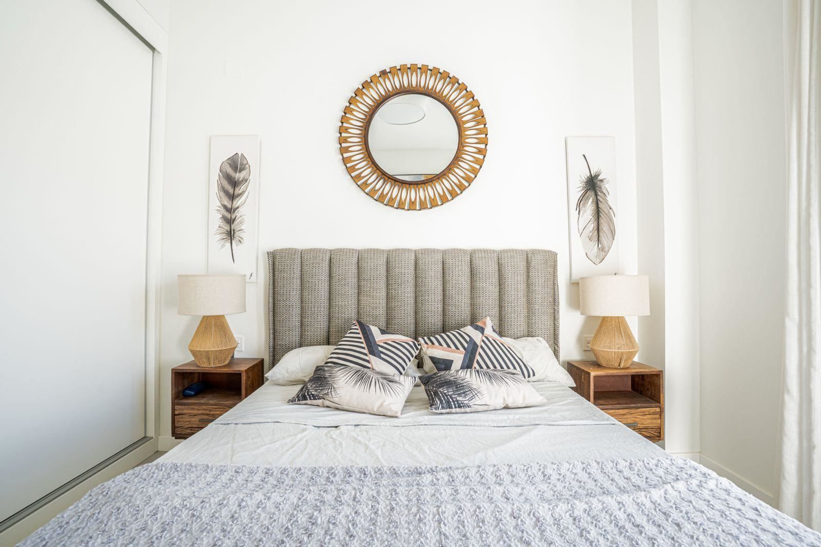 Villan rymmer tre rymliga sovrum med inbyggda garderober och två eleganta badrum. Den smarta planlösningen skapar en luftig och inbjudande atmosfär, där stora fönster fångar ljuset från flera väderstreck – syd, öst och väst – vilket ger sol nästan hela dagen.