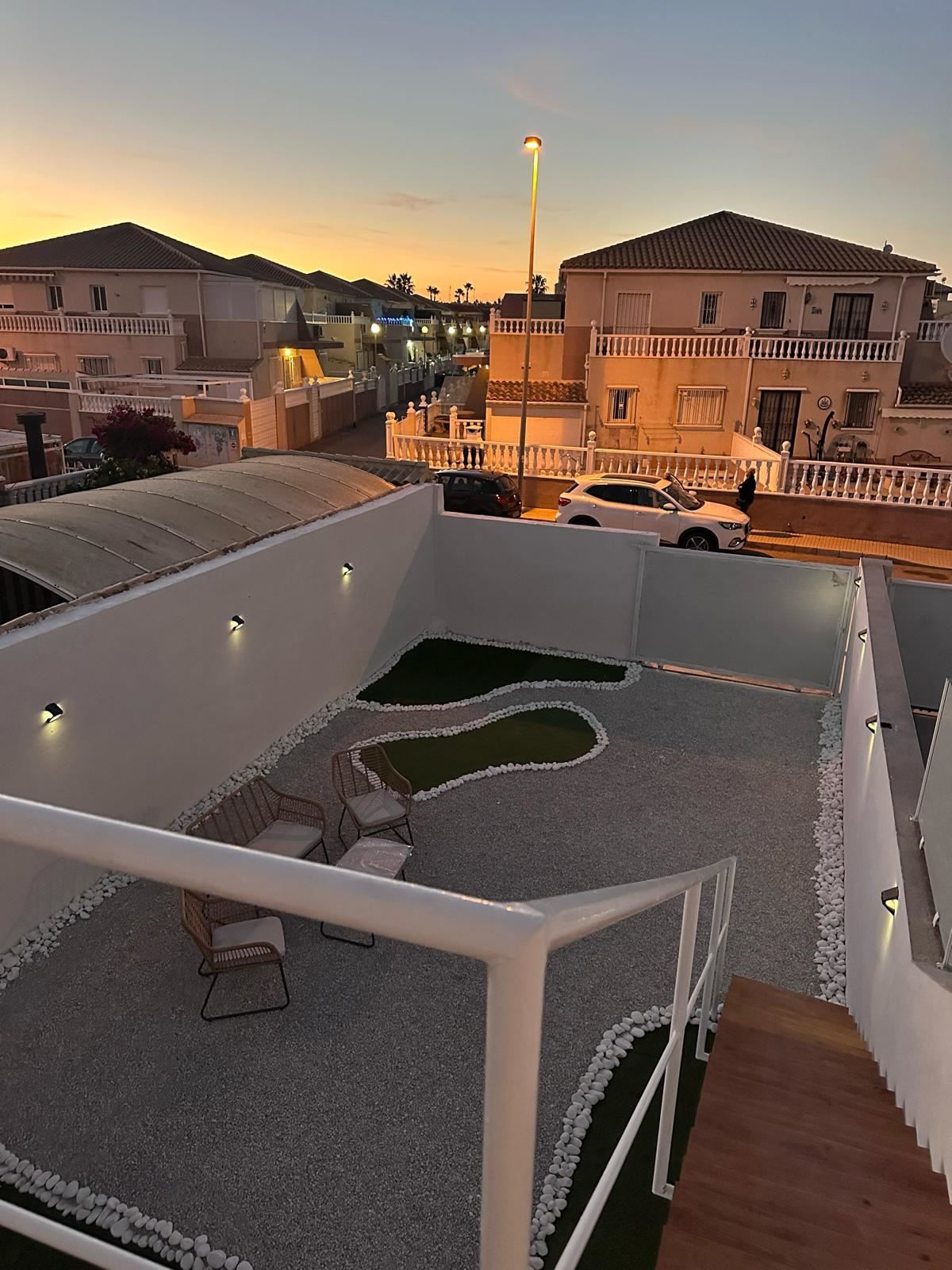 En av bostadens verkliga höjdpunkter är den rymliga uteplatsen på baksidan – hela 90 m² privat yta som bjuder in till middagar under bar himmel, avslappnade eftermiddagar eller kanske en egen trädgårnsoas. Här finns gott om plats att skapa precis den atmosfär du drömmer om.