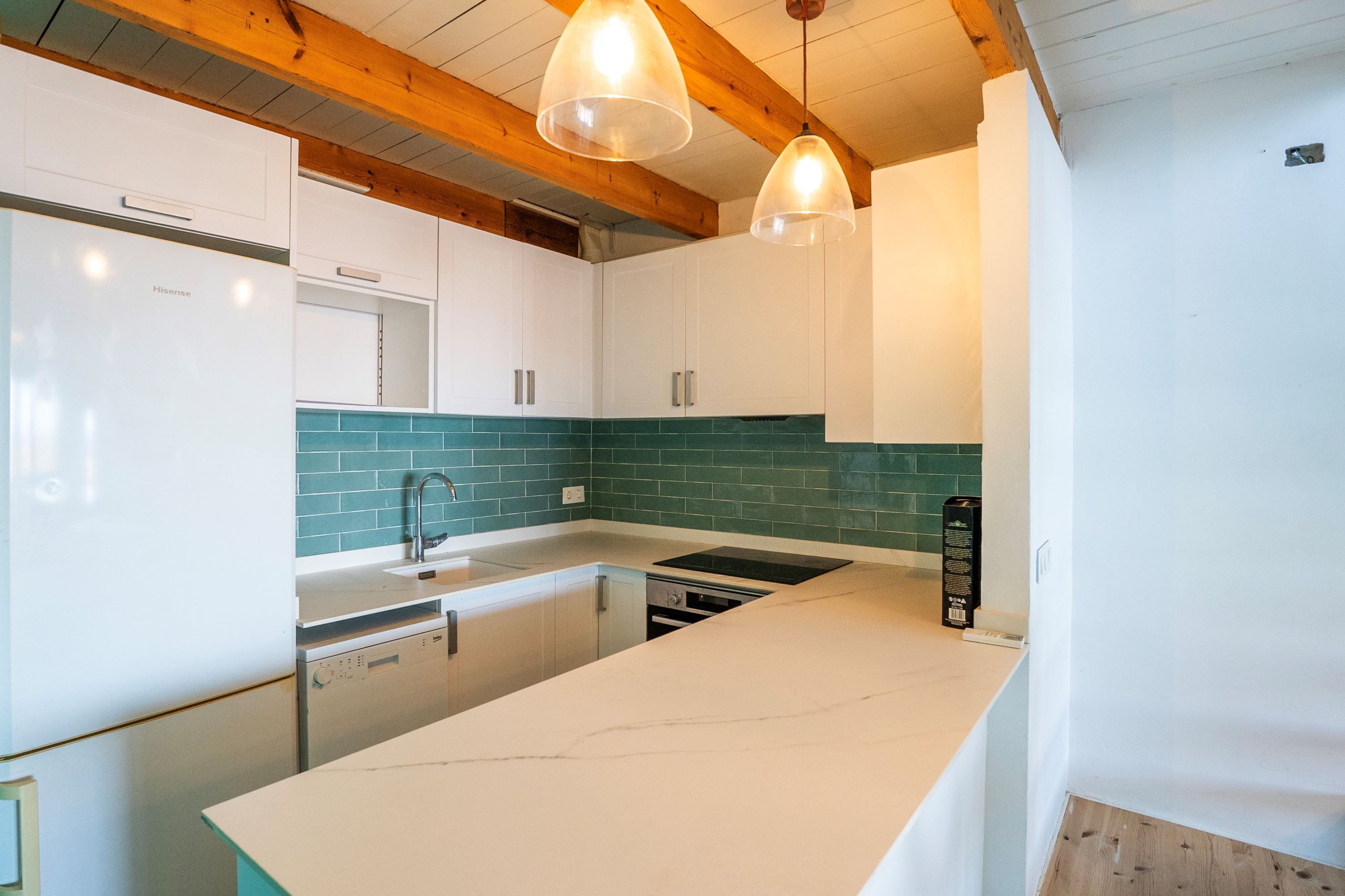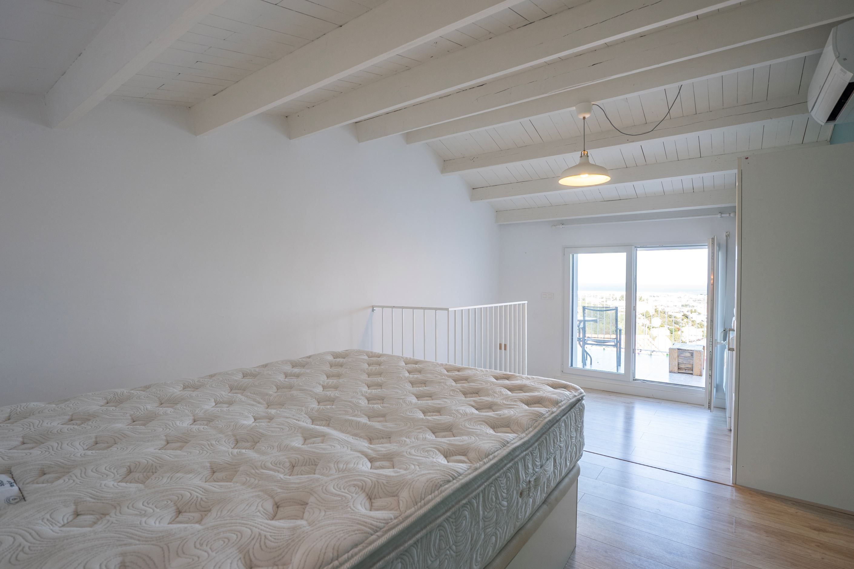 Bostaden är nyligen renoverad i modern stil med material av hög kvalitet. Den består av två sovrum, ett badrum, ett ljust vardagsrum med öppet kök och en rak modern trappa som leder upp till det stora sovrummet. Från sängen når man direkt en privat terrass med imponerande havsutsikt. Fönster av hög standard och utmärkt isolering skapar en tyst och behaglig miljö året runt.