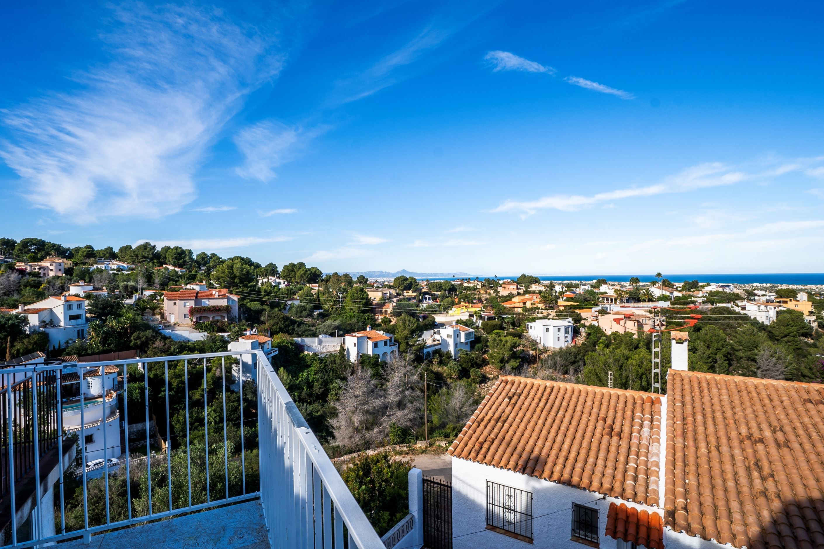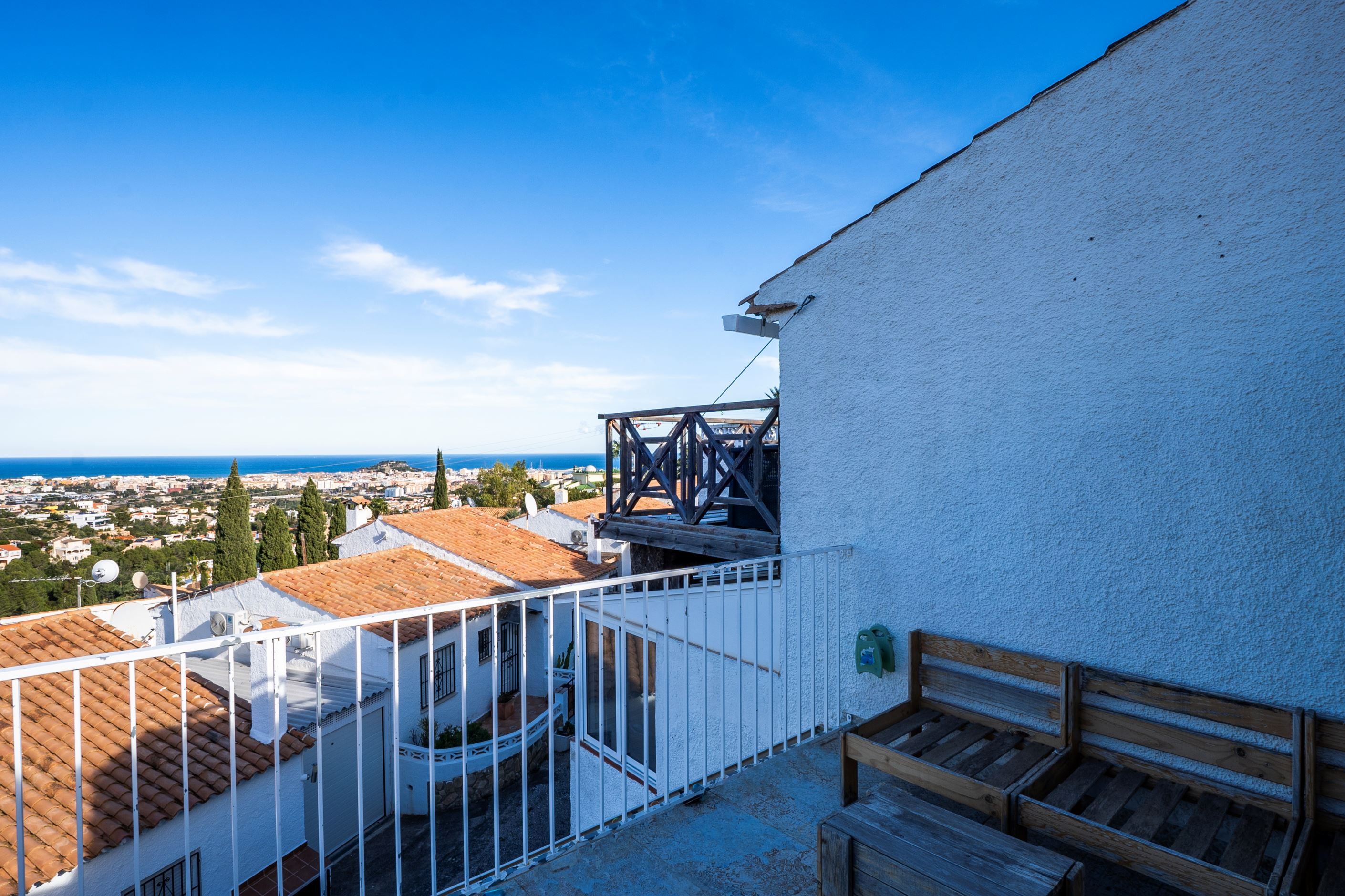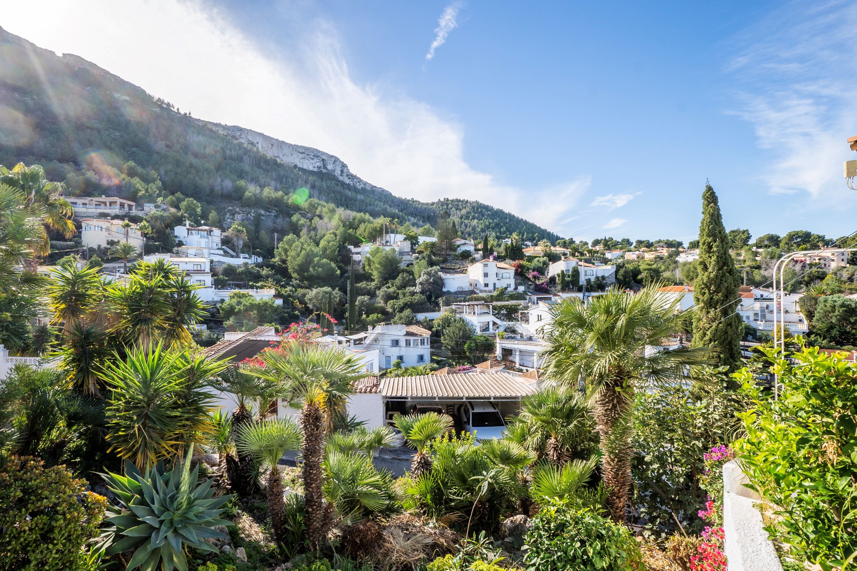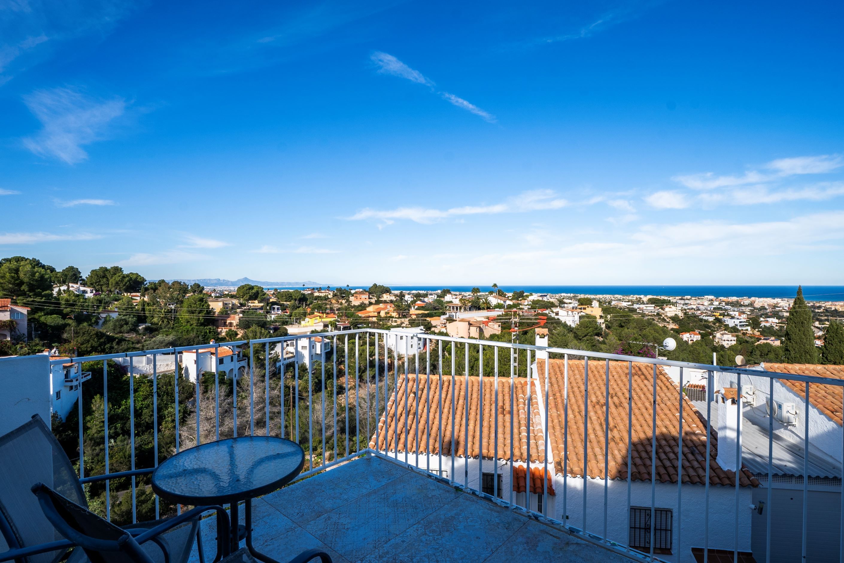 På en lugn bergssluttning bara några minuter från centrala Dénia ligger detta radhus omgivet av natur och med öppna vyer mot både hav och berg. Här bor man stillsamt utan att ge upp närheten till stränder, butiker, service och goda kommunikationer.