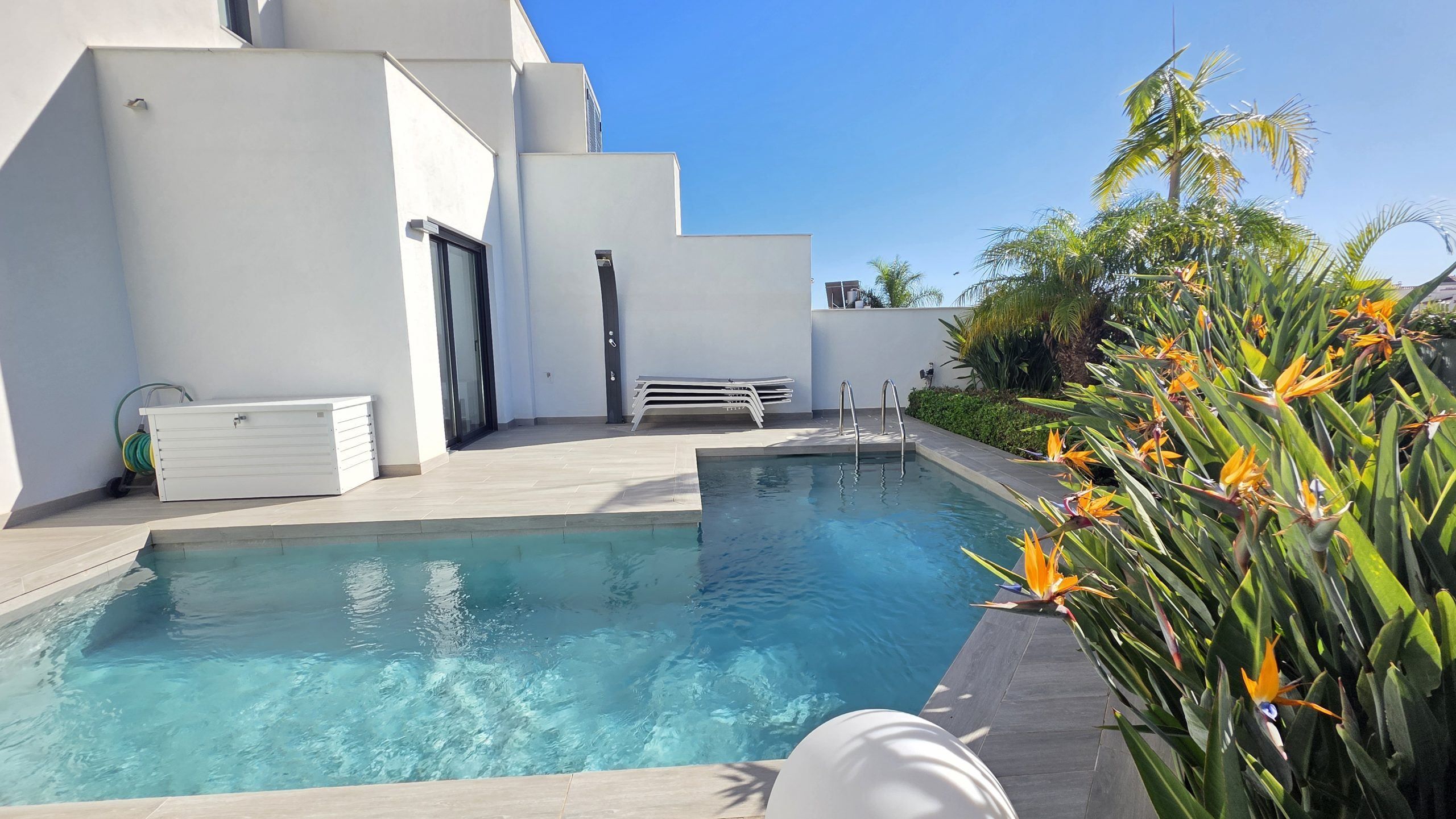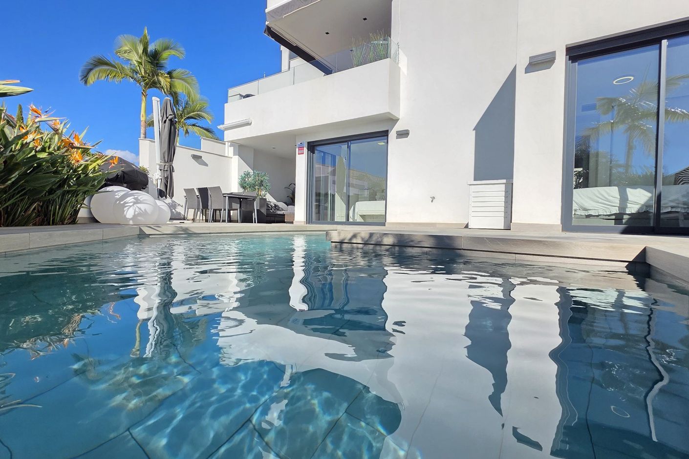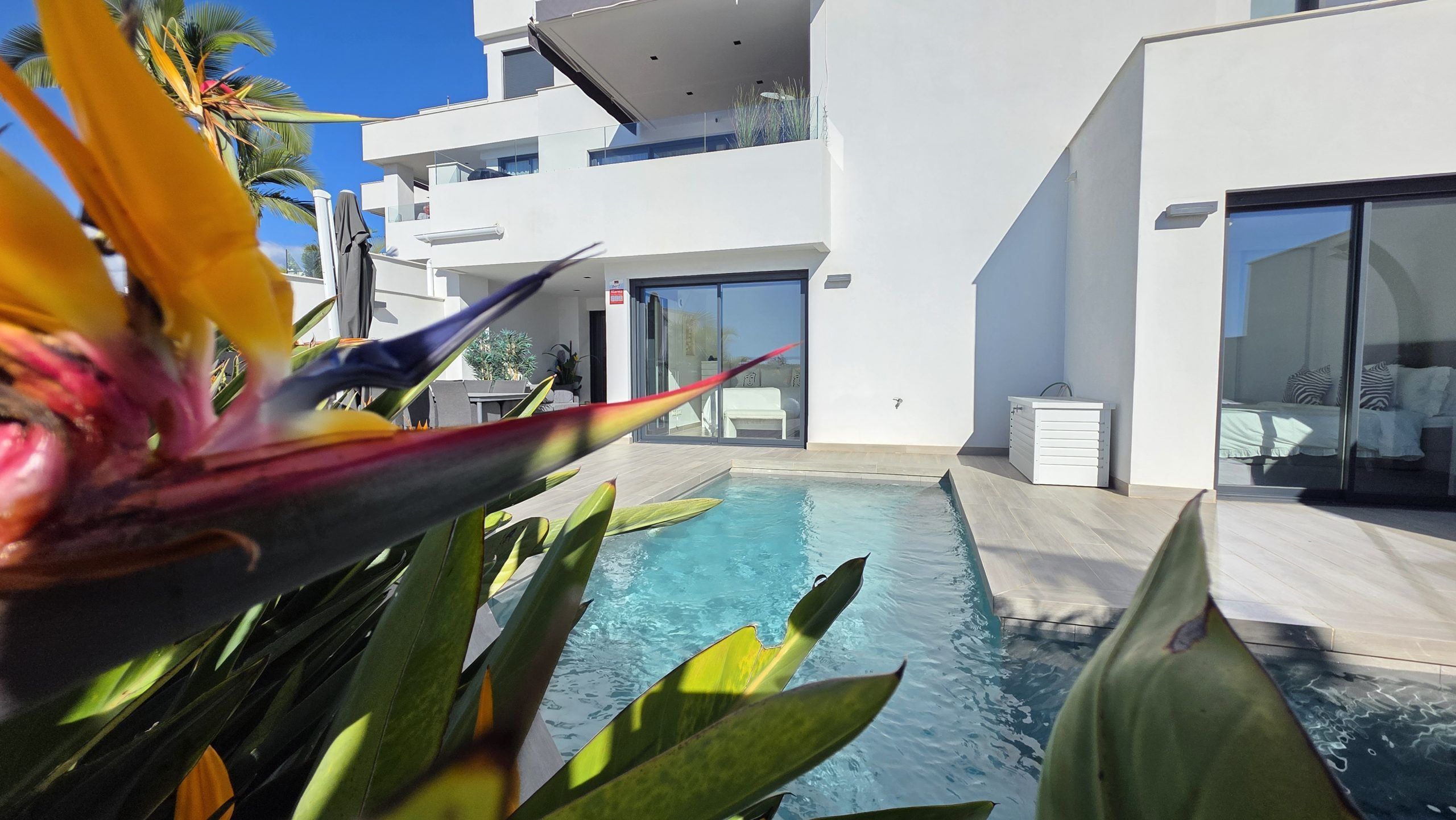 Den största attraktionen i denna fastighet är den magnifika privata poolen – ett sällsynt privilegium i detta område – som ger fullständig avskildhet och förvandlar terrassen till en verklig oas. Dessutom har komplexet en spektakulär gemensam pool och gott om parkeringsplatser, vilket garanterar bekvämlighet och tillgänglighet vid alla tidpunkter.