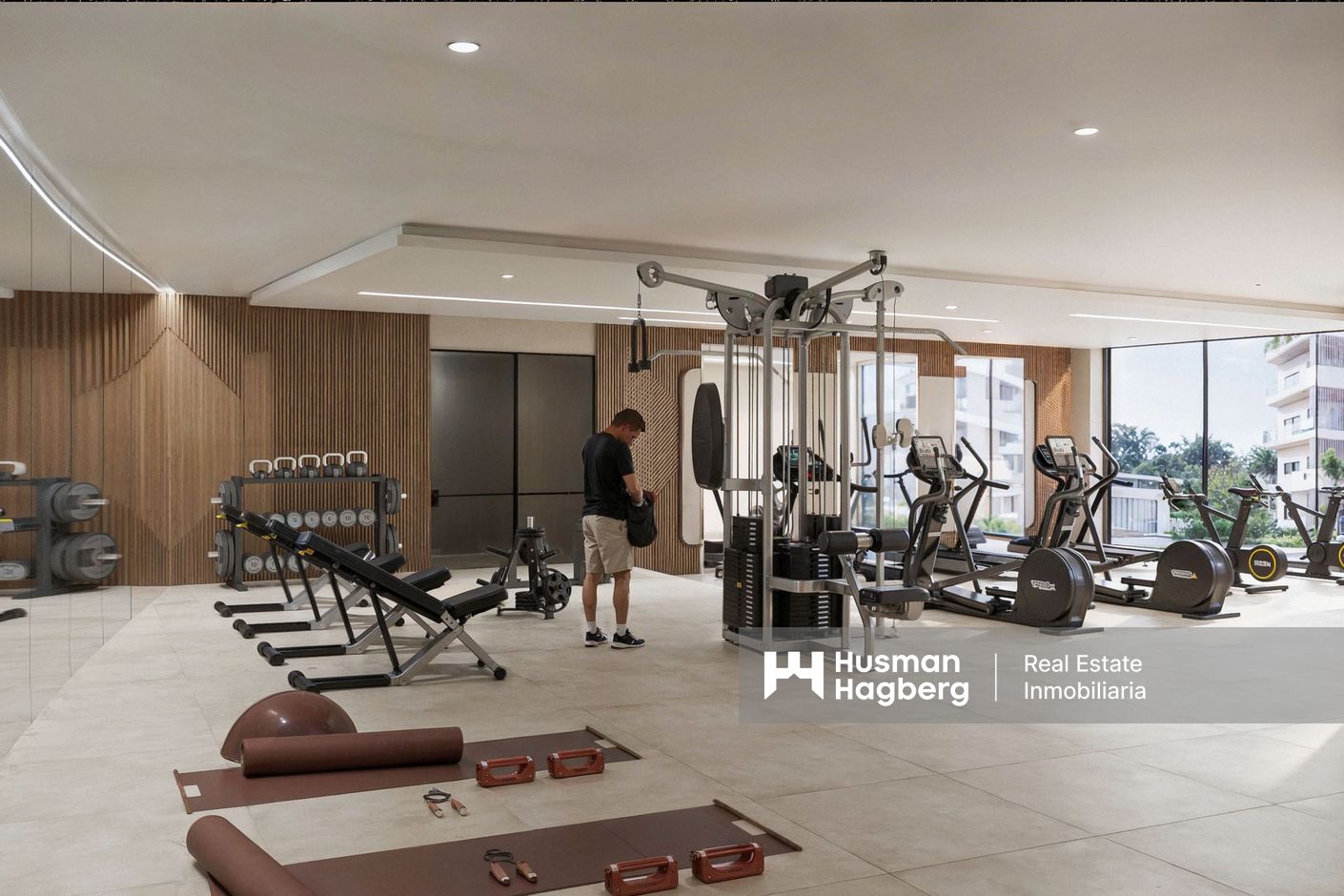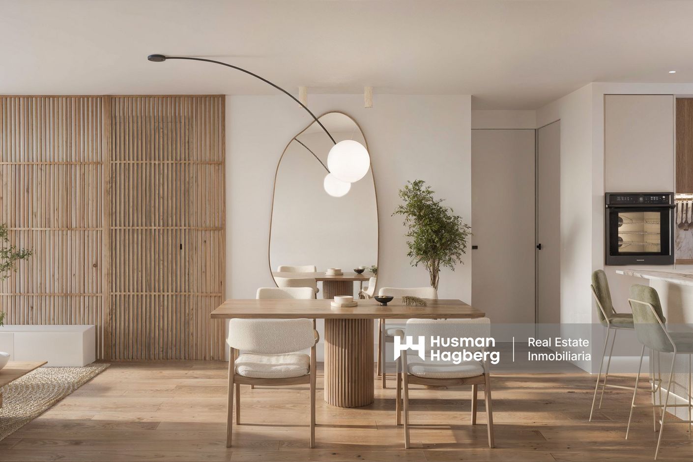 Lägenheten har ett integrerat kök med vitvaror av hög kvalitet, fullt utrustade badrum med golvvärme, motoriserade persienner, dubbelglas samt aerotermiskt system för energieffektiv uppvärmning och kylning.