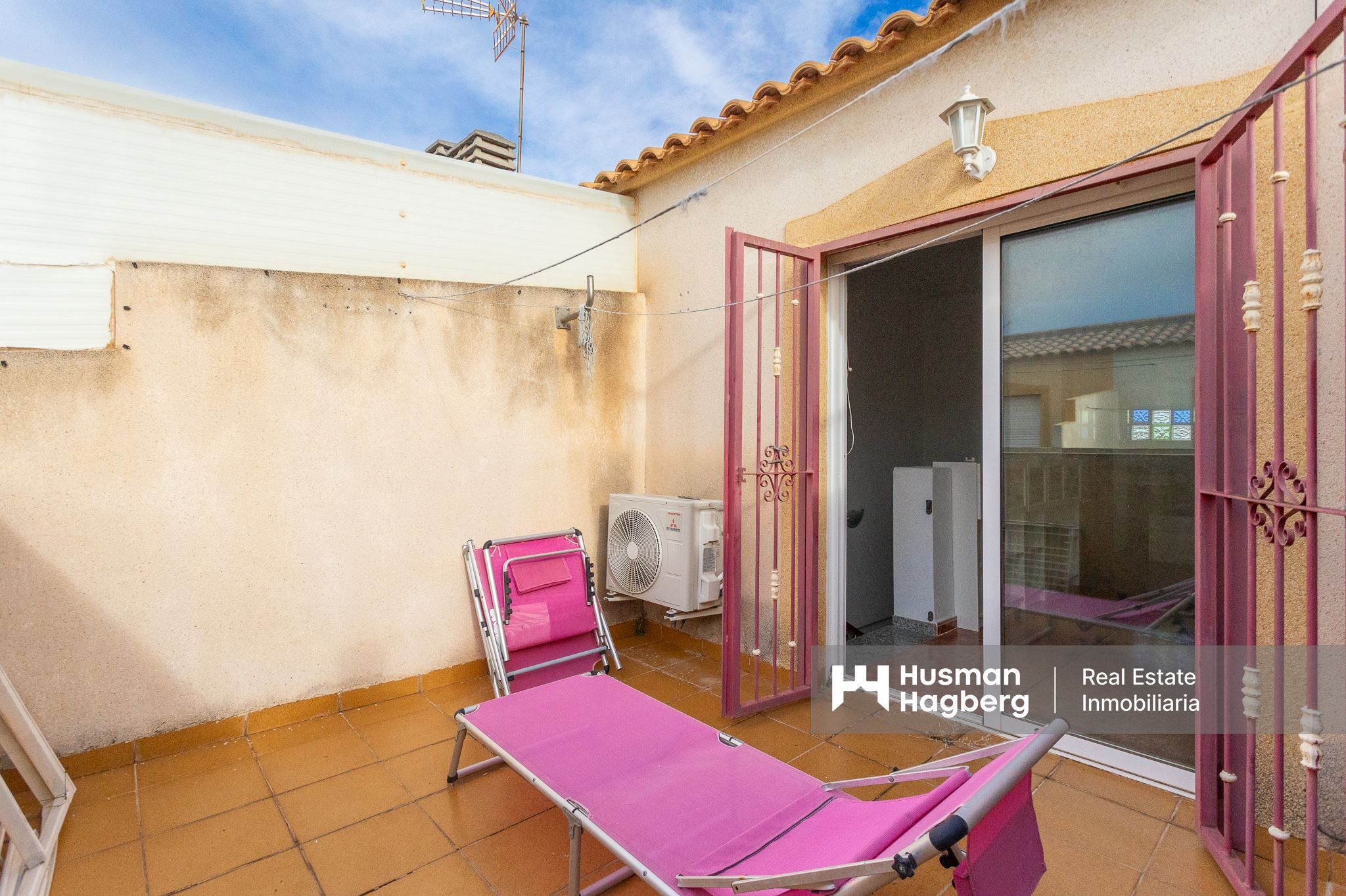 Här finns både terrass och balkong – perfekta platser för att njuta av solen eller koppla av med en bok. Hemmet är utrustat med luftkonditionering för komfort året om och har en idealisk orientering mot norr och söder, vilket ger naturligt ljus under hela dagen.