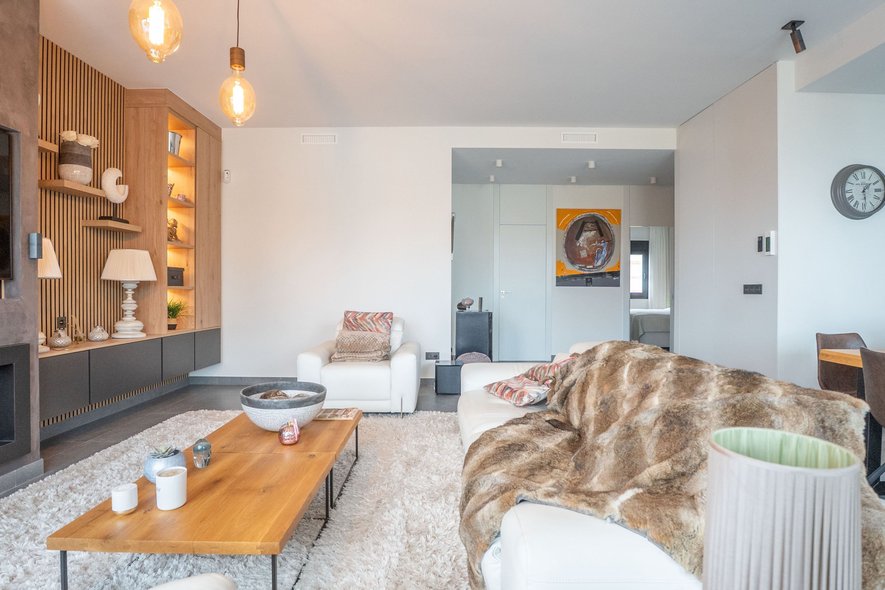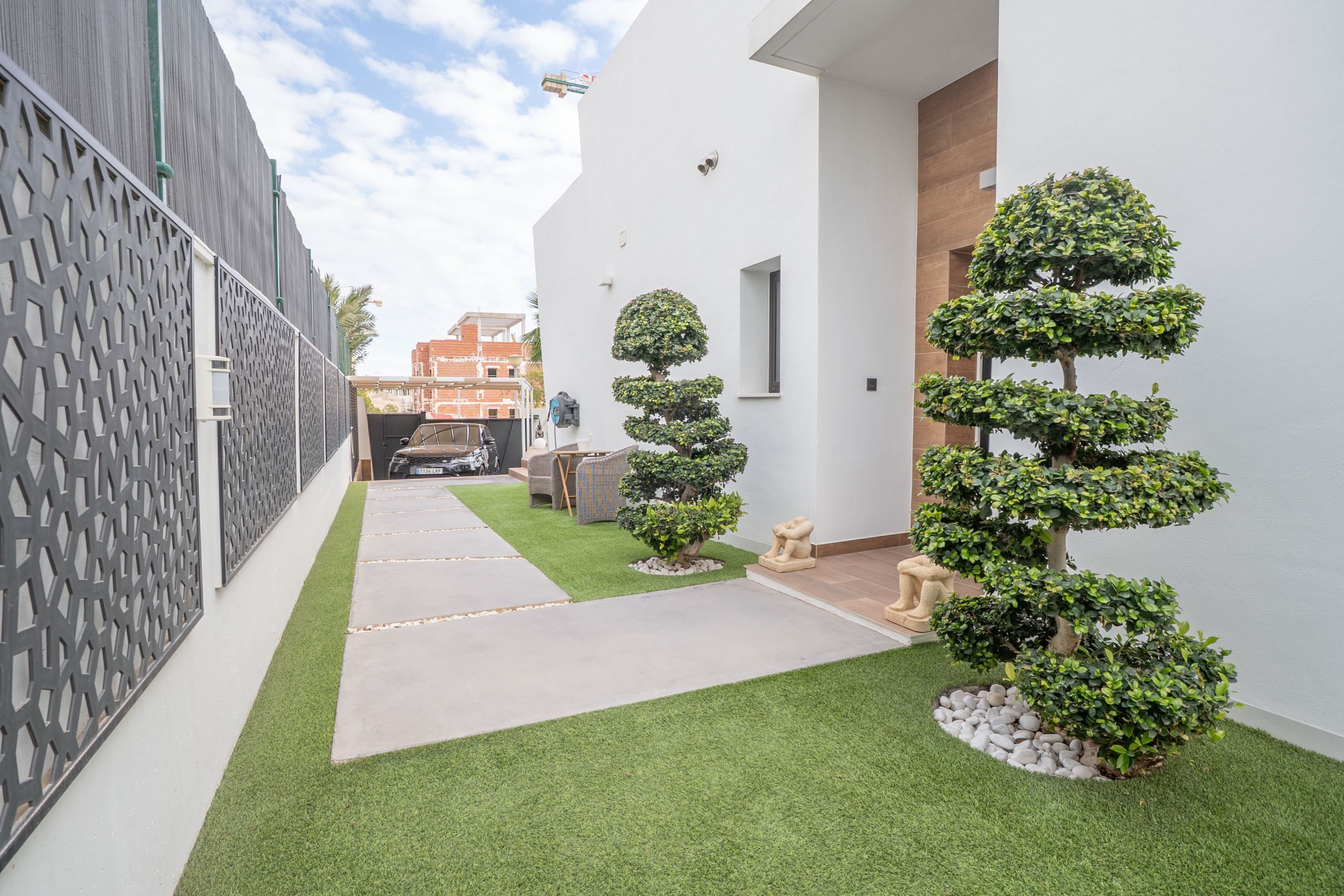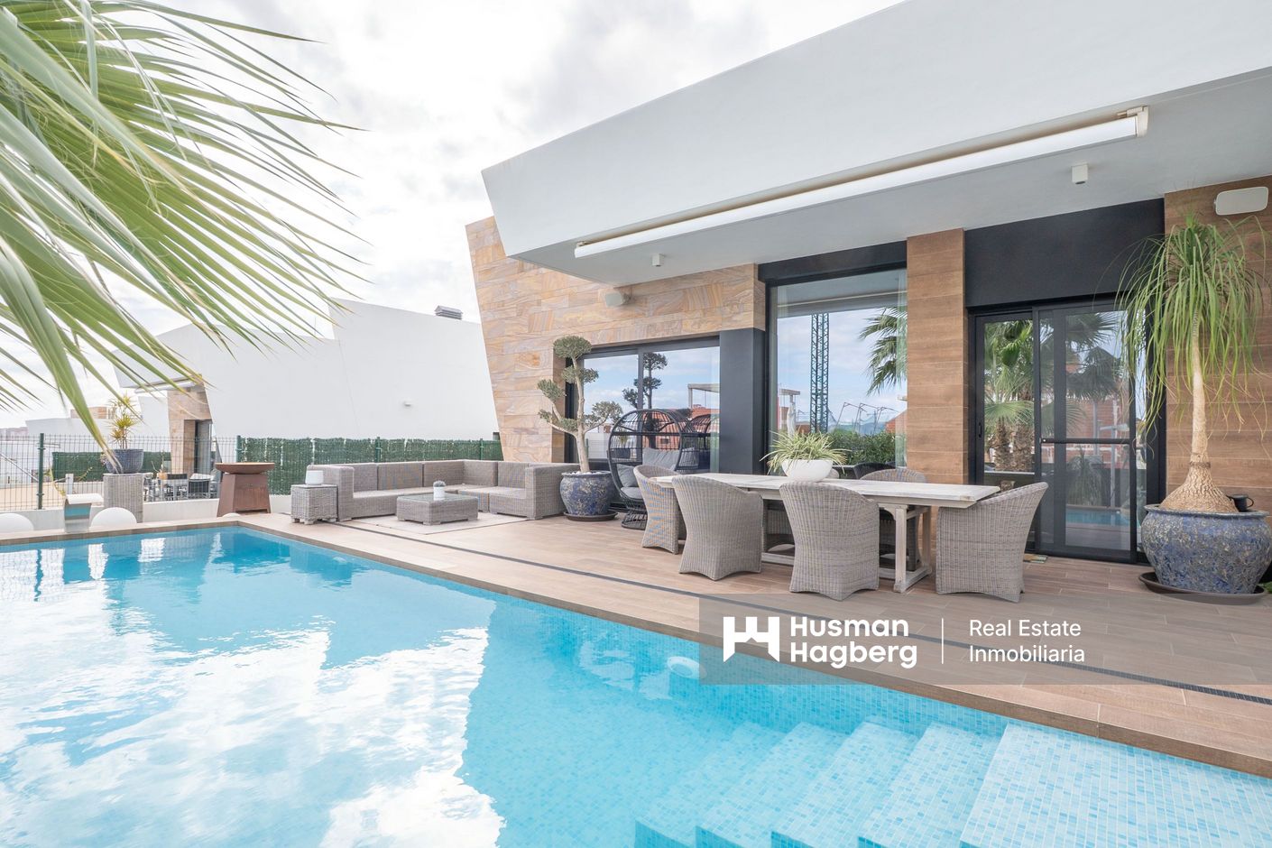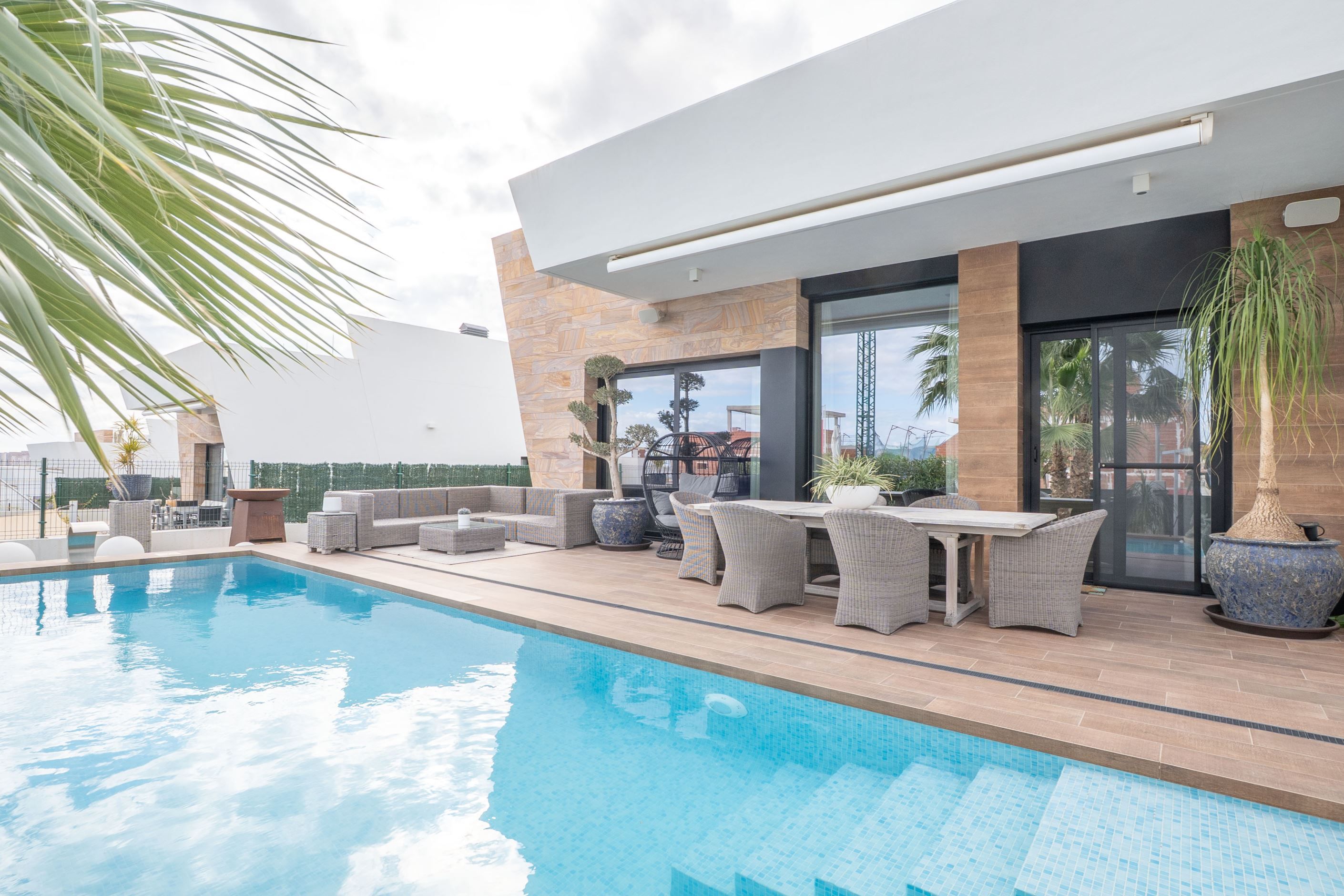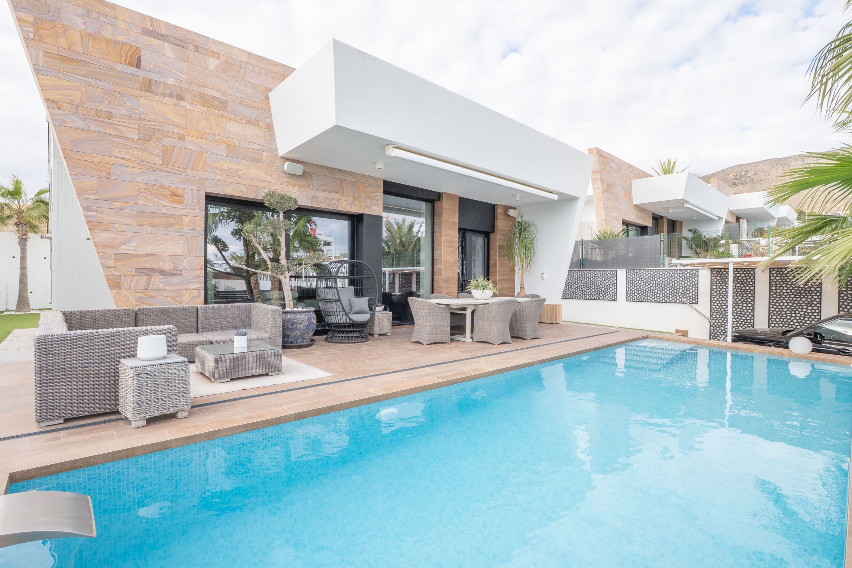 Ytterligare bekvämligheter inkluderar luftkonditionering, uppvärmning, privat parkering, förrådsutrymmen samt genomgående goda materialval. Med närhet till stränder, golfbanor, shoppingområden och smidig tillgång till Alicantes flygplats utgör denna fastighet en utmärkt möjlighet som permanentbostad, fritidshus eller investering på Costa Blanca.
