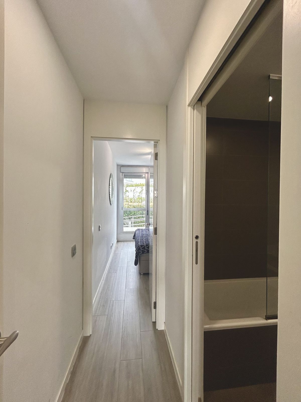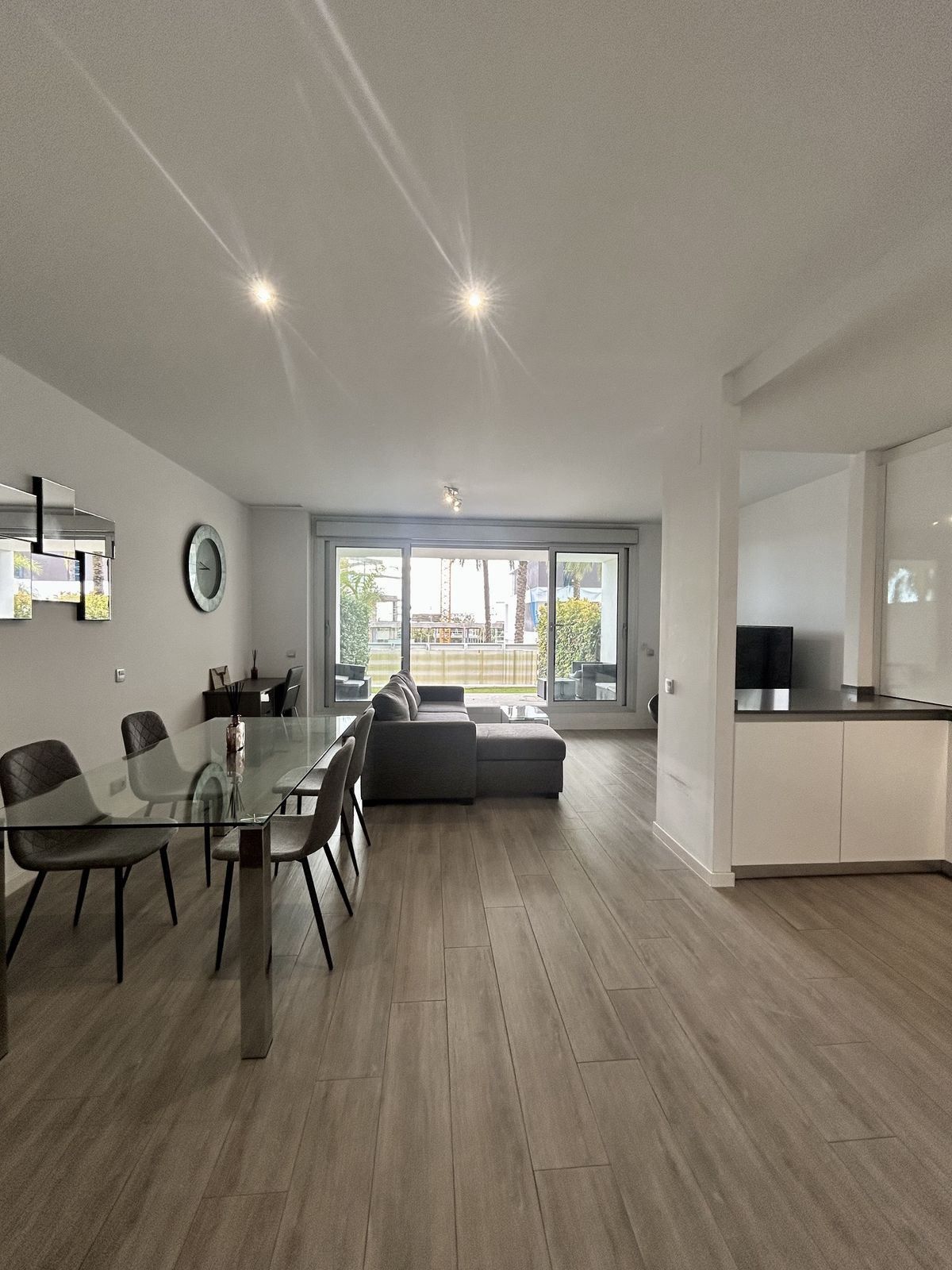 Modern lägenhet belägen i den charmiga byn Cancelada i Estepona. Trädgårdslägenheten består av ett ljust vardagsrum och matplats med tillgång till en privat 18m2 terrass med havsutsikt och en 30m2 trädgård. Köket är öppet och fullt utrustat med vitvaror av högsta kvalitet. De 2 sovrummen har eget badrum och inbyggda garderober. Komplexet är bevakat av säkerhetsvakter och concierge och har 2 pooler, barnpool och lekplats. Några minuters promenad till butiker, restauranger och service och bara 5 minuter med bil till stranden och Los Flamingos golfbana.