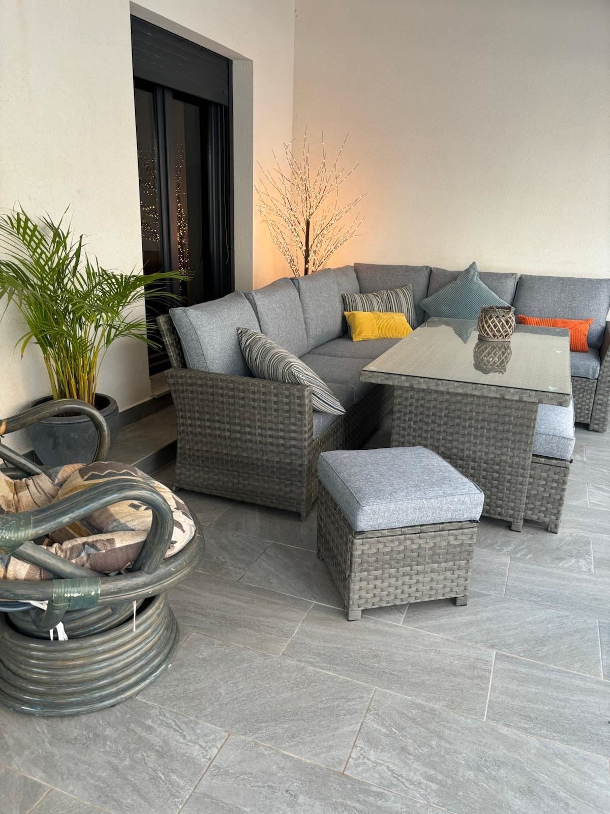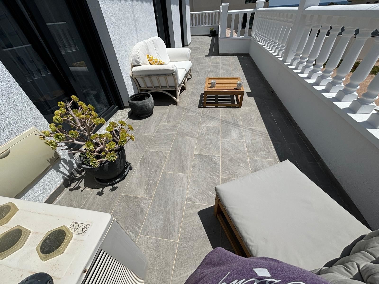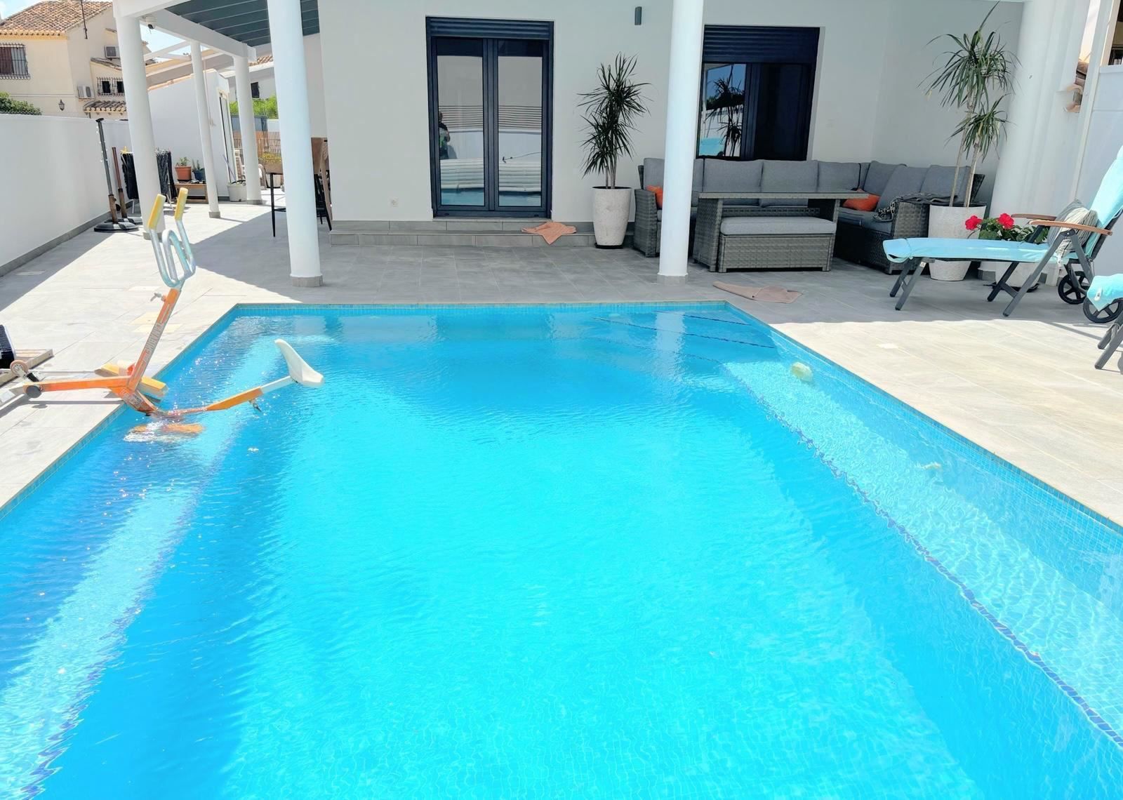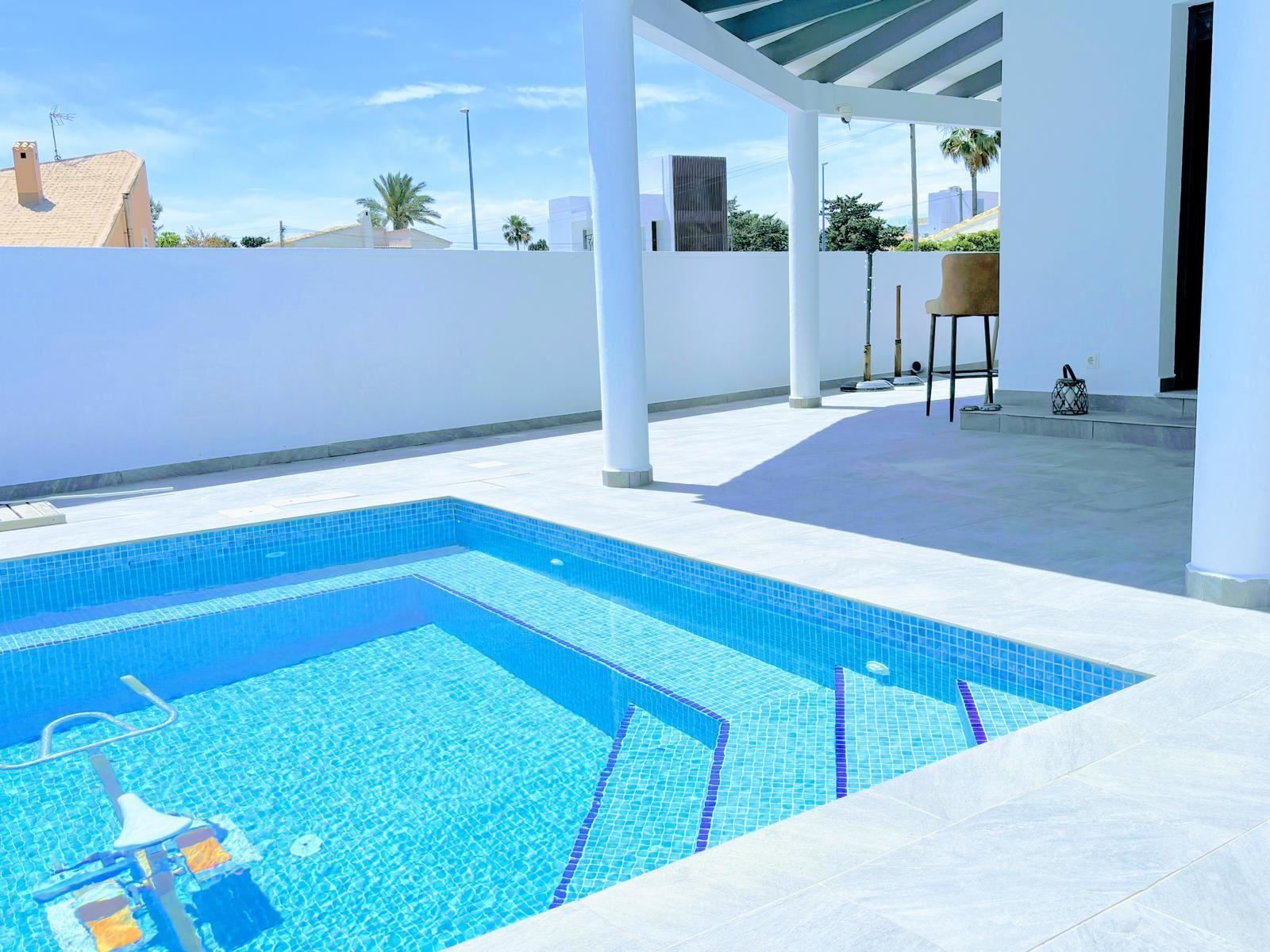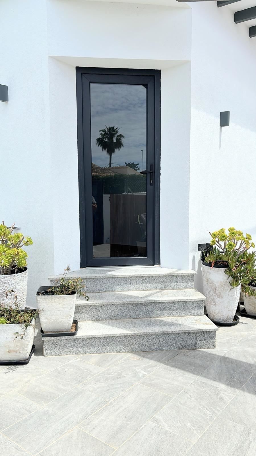 Tomten på 350 m² skapar fantastiska möjligheter för utomhusliv. Här finns en privat pool för svalkande dopp under varma dagar, en terrass och en balkong som bjuder in till avkoppling och sociala stunder. Den genomtänkta orienteringen mot söder, öster och väster ger maximalt med naturligt ljus under hela dagen, vilket förstärker känslan av ett hem där du kan njuta av medelhavsklimatet året om.