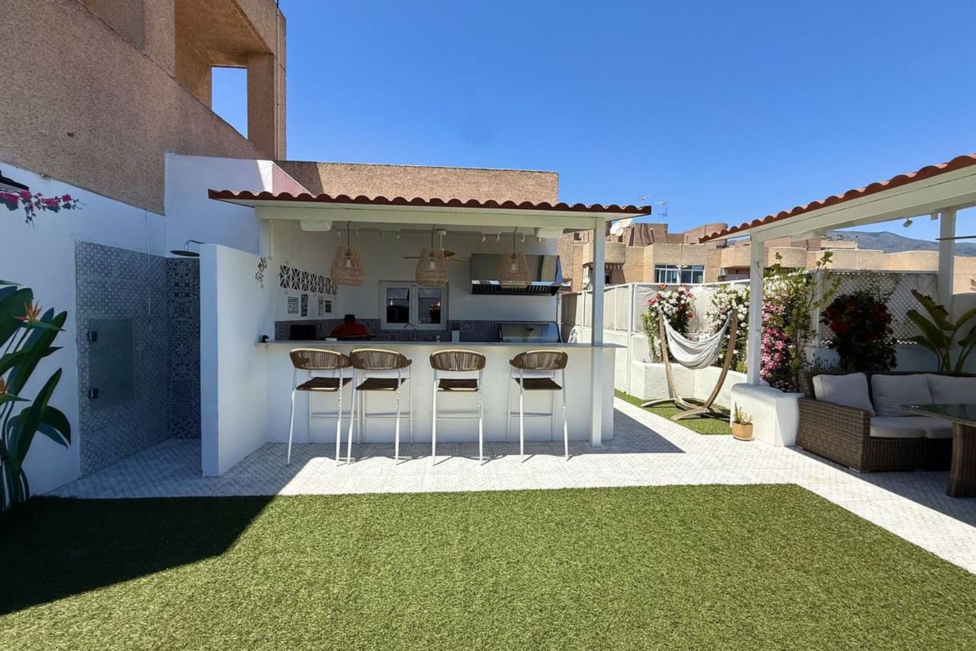 Penthouse i centrala Estepona med 98 m² terrass, fullt utrustat utekök, gymyta & uthyrningstillstånd!