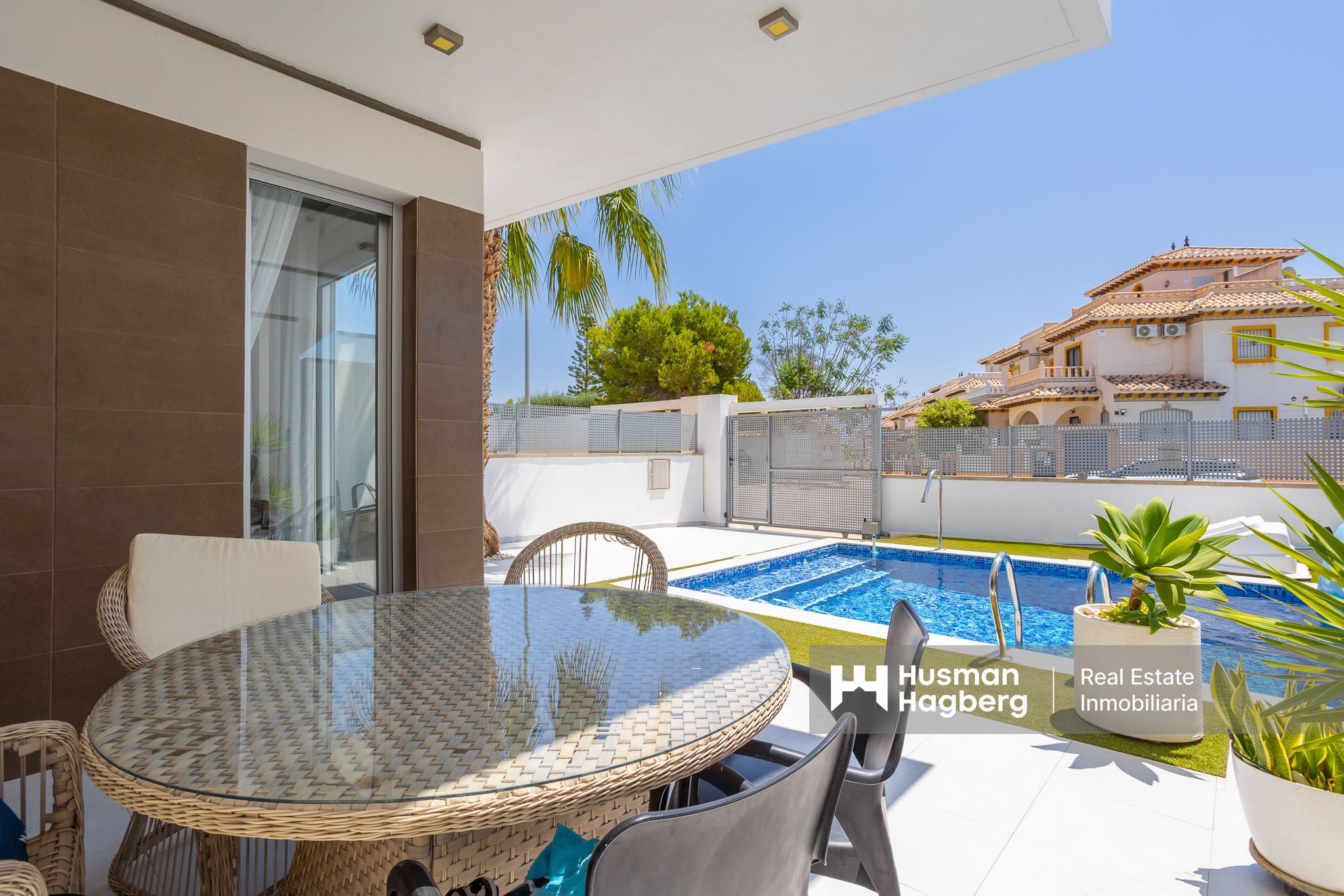 Läget är dessutom oslagbart: ett lugnt och tryggt bostadsområde med gångavstånd till La Zenia Boulevard, matbutiker som Consum, lokala bagerier och vackra sandstränder. Här bor du nära allt – men ändå i din egen oas av lugn och avskildhet.