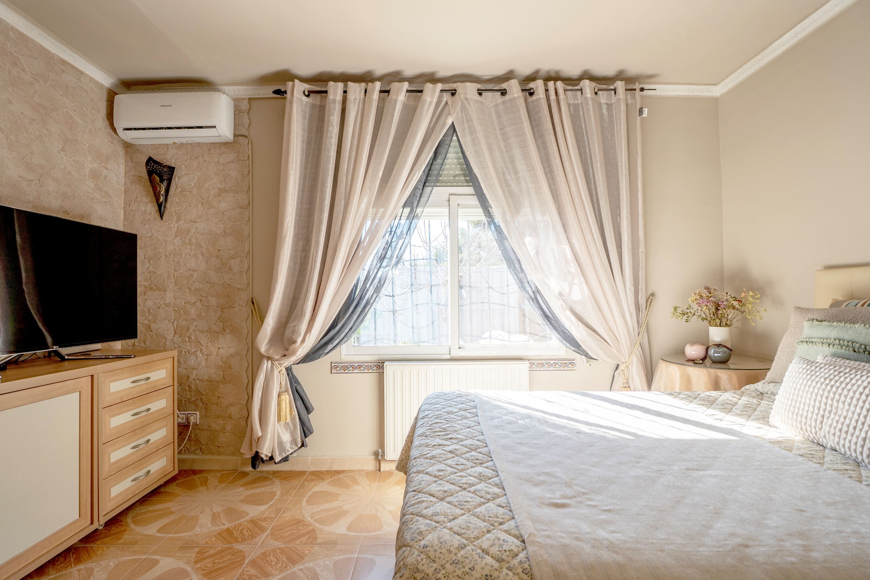 För komfort året runt är villan utrustad med både luftkonditionering och centralvärme. De 10 installerade solpanelerna gör bostaden mycket energieffektiv och bidrar till lägre driftskostnader.