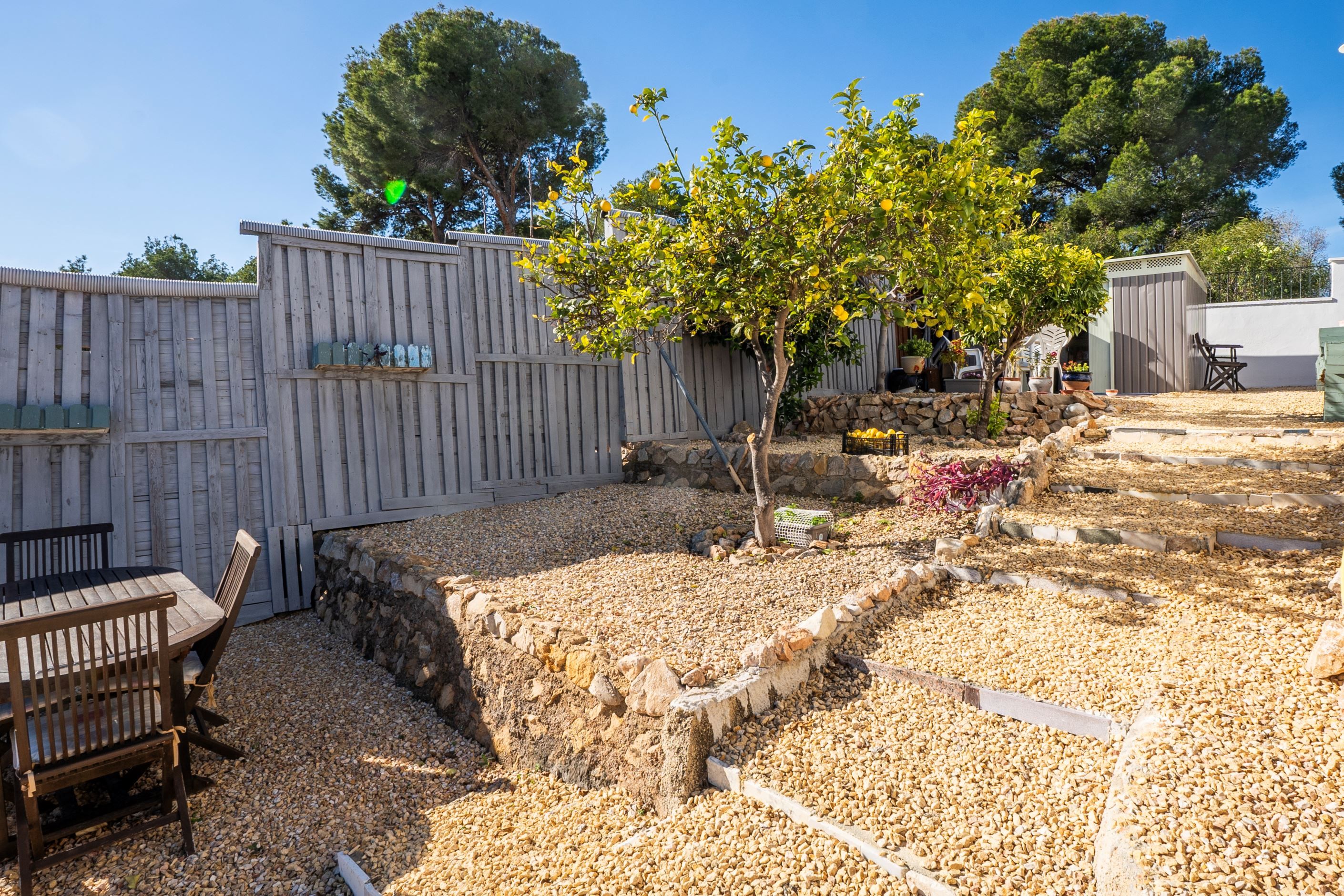 Utomhus finns en lättskött trädgård med flera soliga terrasser och en balkong i söderläge. Här finns även en privat pool samt en separat utomhusdusch, perfekt för att njuta av det mediterrana klimatet. Öppen havsutsikt kan avnjutas från flera delar av fastigheten. Slutet garage och extra förråd ingår.