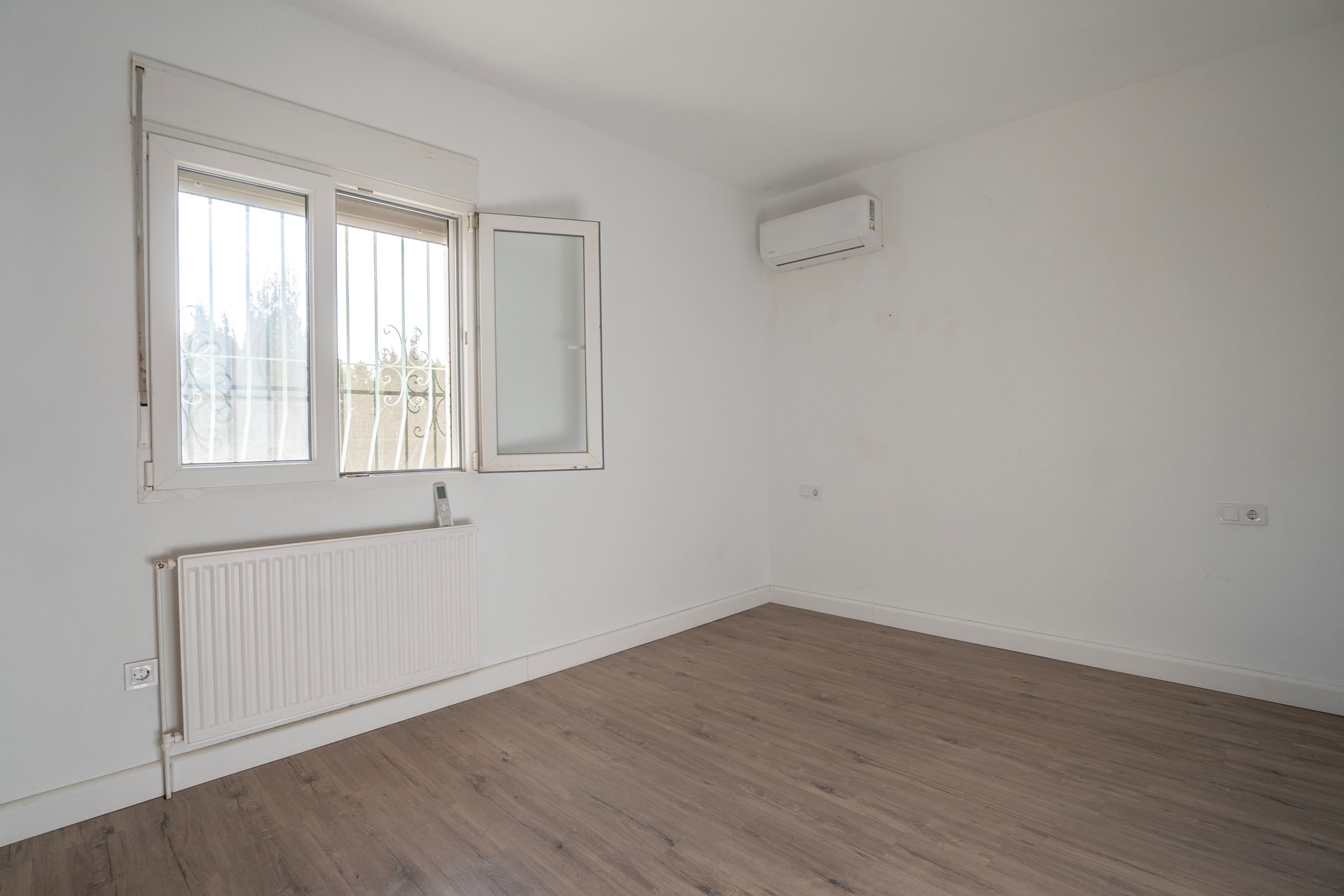 Villan är byggd i ett plan, vilket gör den mycket bekväm för vardagsboende. Invändigt finns ett ljust vardagsrum med utgång till terrassen, ett separat kök, två sovrum, ett komplett badrum samt inbyggda garderober. Dessutom finns förråd, källare och garage som ger extra förvarings- och användningsmöjligheter.