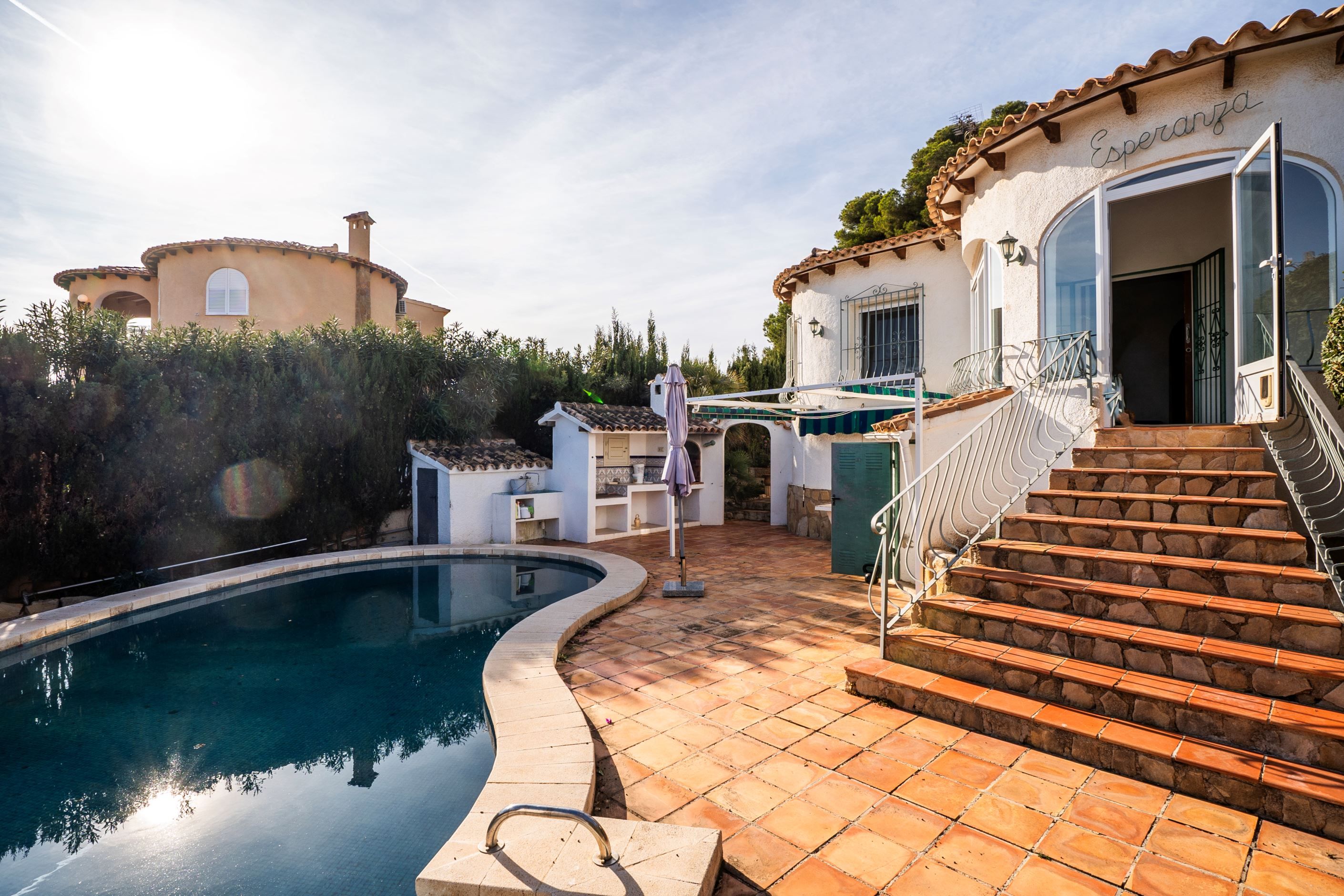 Utomhus finns en privat pool och en trevlig trädgård med skuggade ytor, perfekt för att njuta av det mediterrana klimatet. Läget ger ett behagligt ljusinsläpp, särskilt under morgontimmarna.