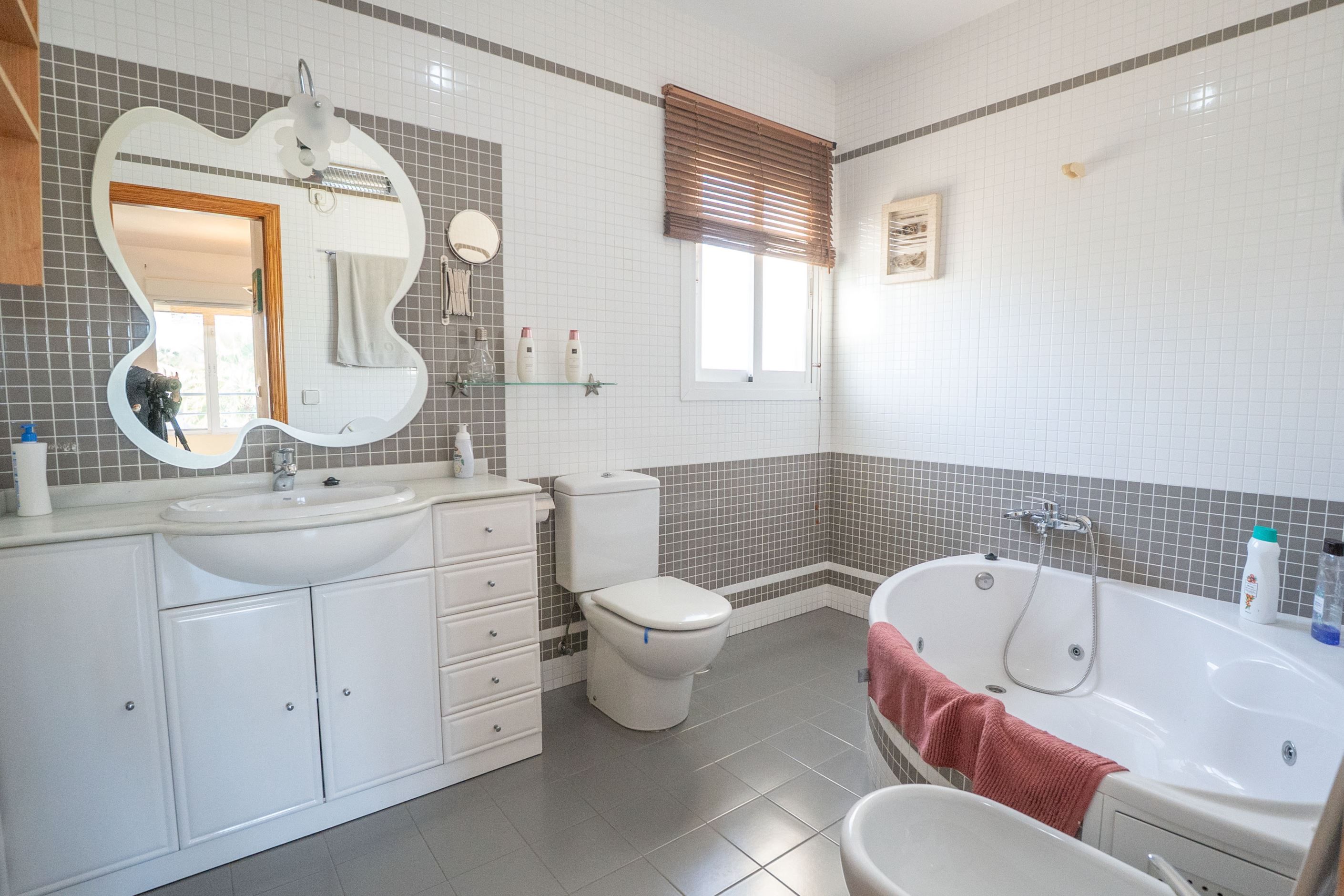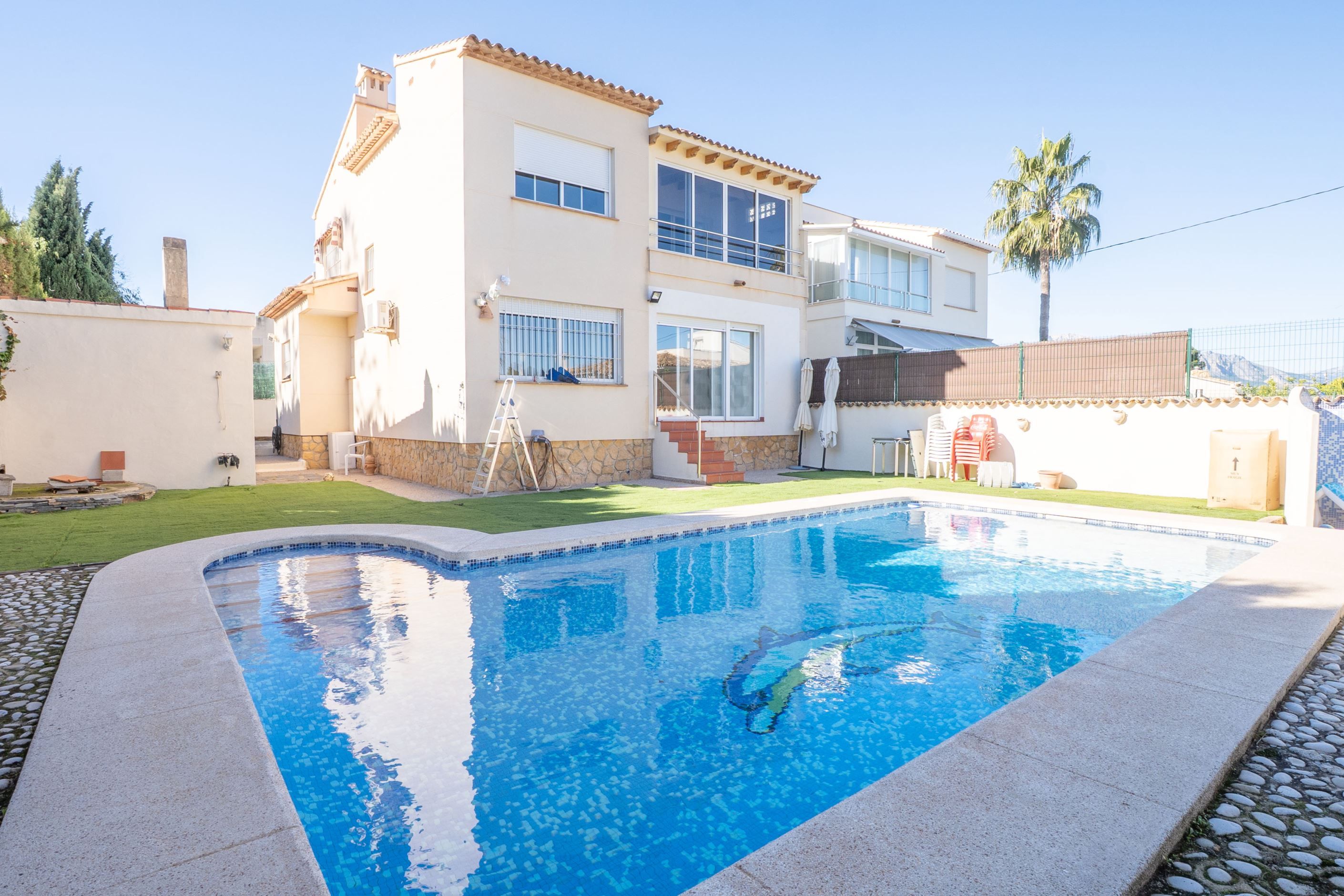 Denna välskötta villa är belägen i Albir och erbjuder fri, öppen utsikt i ett lugnt och trevligt bostadsområde. Fastigheten är byggd år 2003 och ligger på en tomt om 495 m² med en total byggyta på 240 m². Huset har tre rymliga sovrum och tre badrum, vilket gör det väl lämpat både som permanentbostad och semesterboende. Den östliga orienteringen ger ett behagligt morgonljus i bostaden.