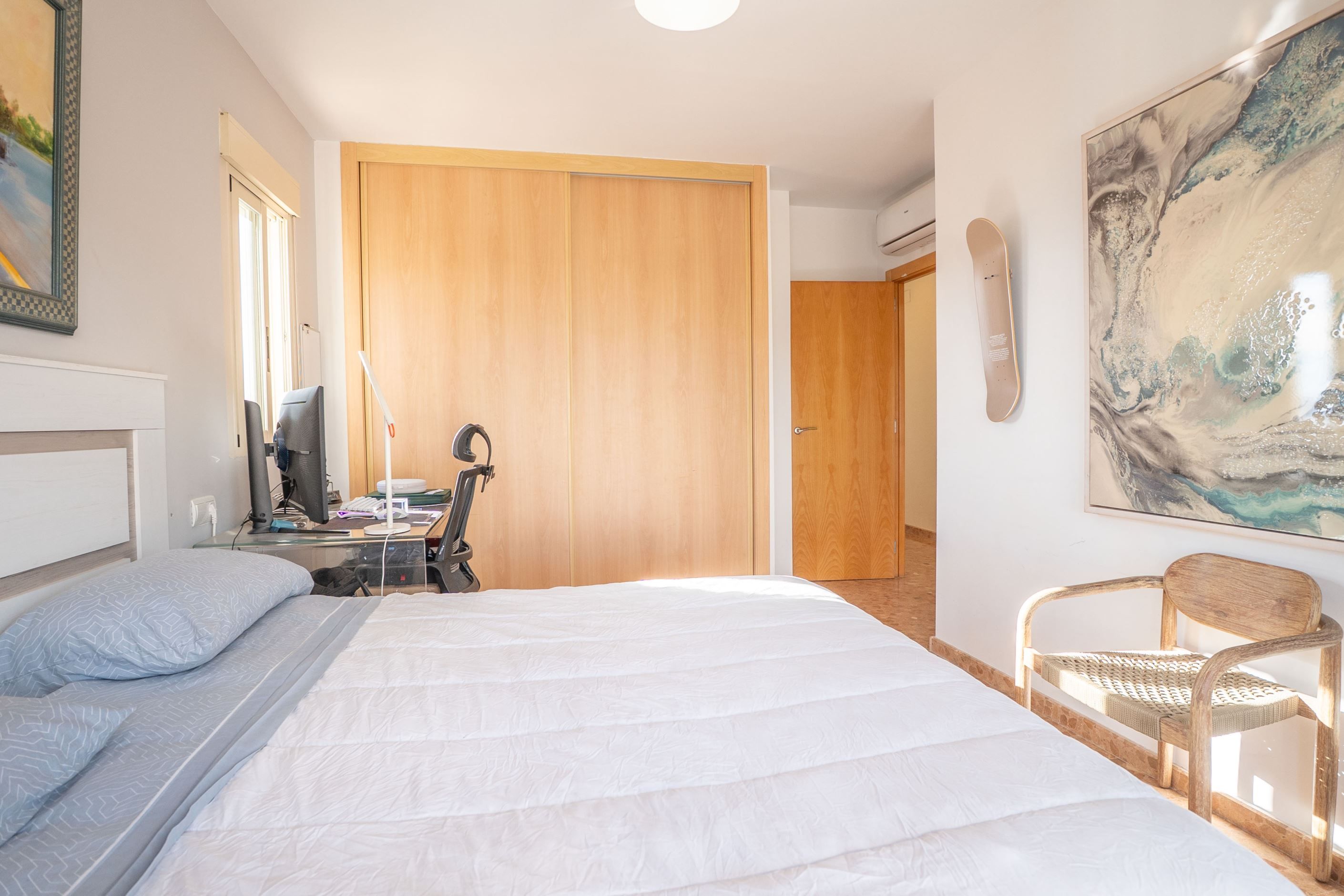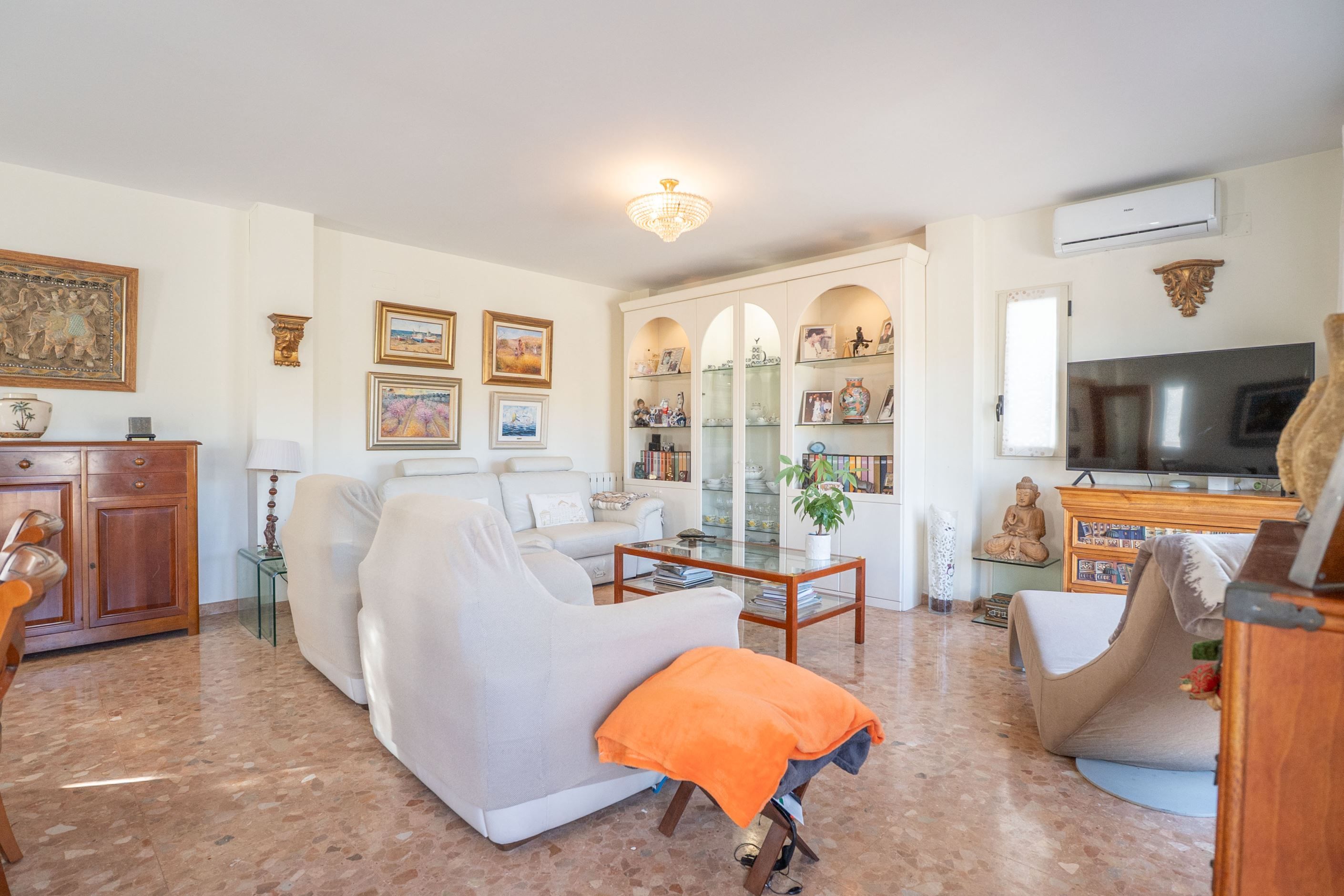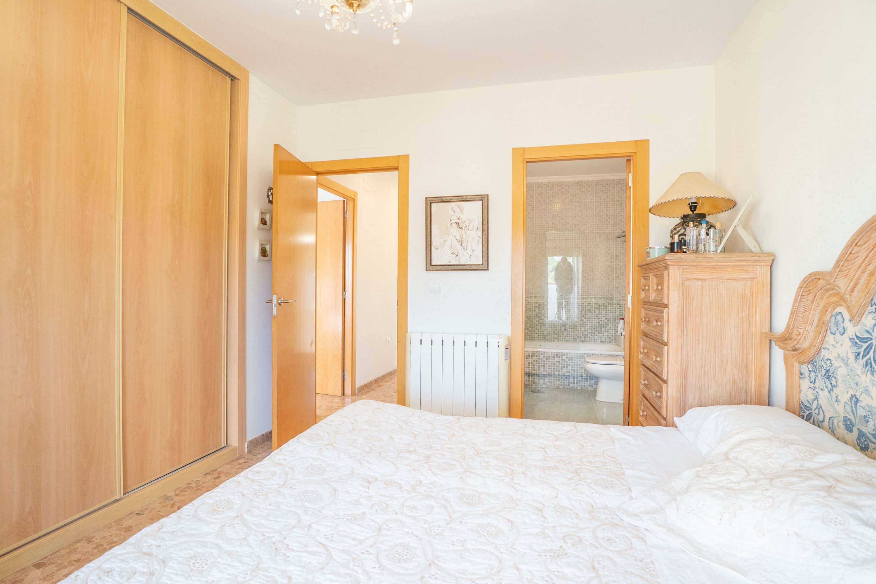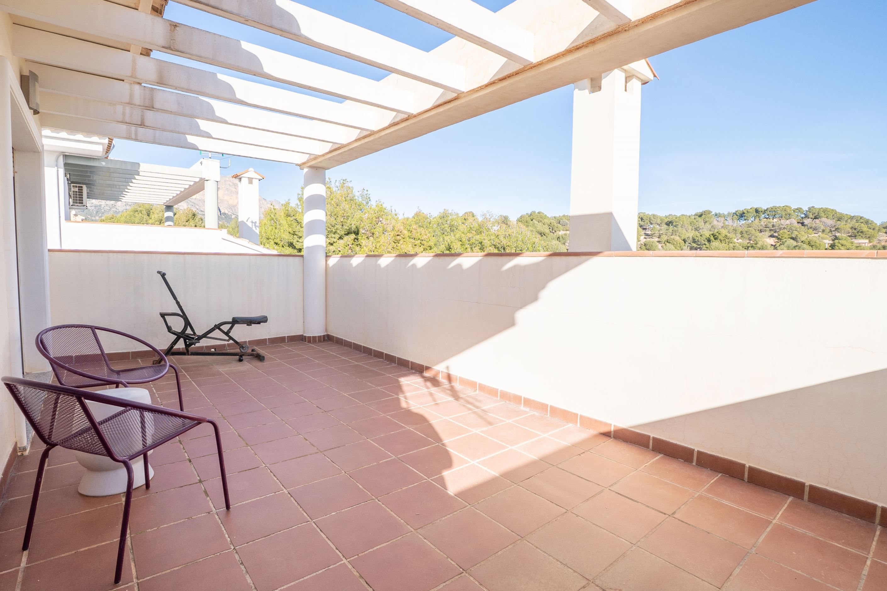 Denna rymliga villa ligger i Alfaz och erbjuder bekvämt boende fördelat på två våningar samt källarplan. Fastigheten byggdes år 2006 och har fyra sovrum och tre badrum, vilket gör den idealisk för familjeboende eller som fritidsbostad. Villan är nordvänd och har en praktisk planlösning med ljusa sällskapsytor och god ventilation. Den är utrustad med luftkonditionering i hela bostaden och erbjuder parkering för en eller flera bilar inom den privata tomten. Källarplanet ger extra utrymme som kan användas som förråd, hobbyrum, gym eller extra allrum, vilket ger stor flexibilitet. Fastigheten ligger i ett lugnt bostadsområde i Alfaz, nära service och goda kommunikationer. Fastighetsskatten (IBI) uppgår till cirka 850 € per år.