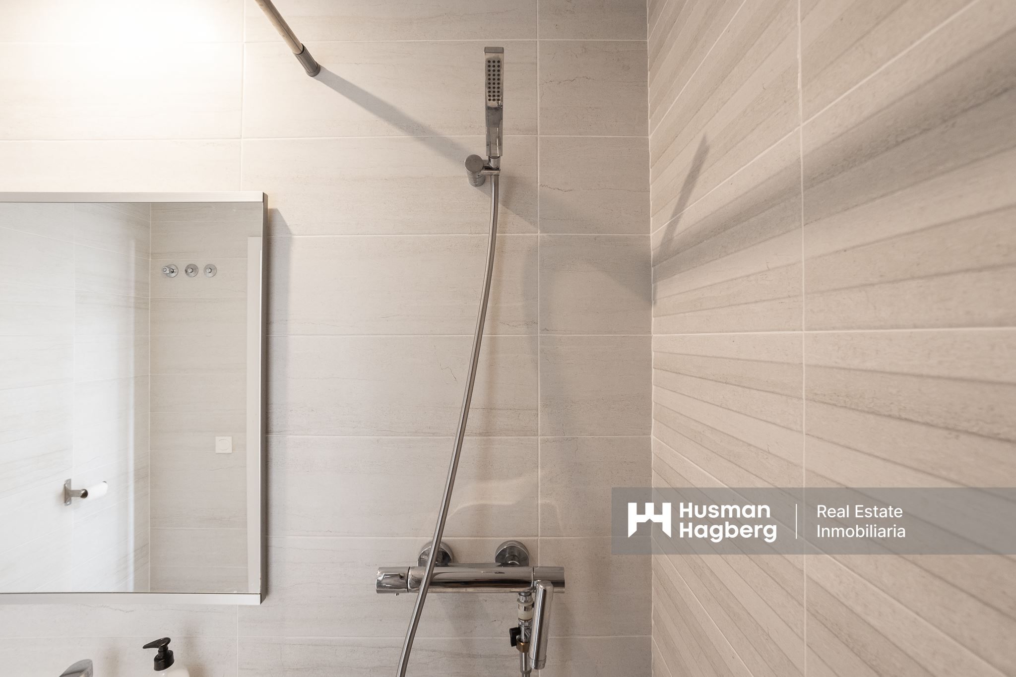 På den privata uteplatsen finns även en praktiskt placerad tvättmaskin, diskret integrerad för att förenkla vardagen utan att ta plats inomhus. Sovrummen är rogivande och välplanerade, med goda förvaringsmöjligheter och en harmonisk atmosfär. De två badrummen ger extra komfort och flexibilitet, oavsett om du bor här själv, med familj eller tar emot gäster.