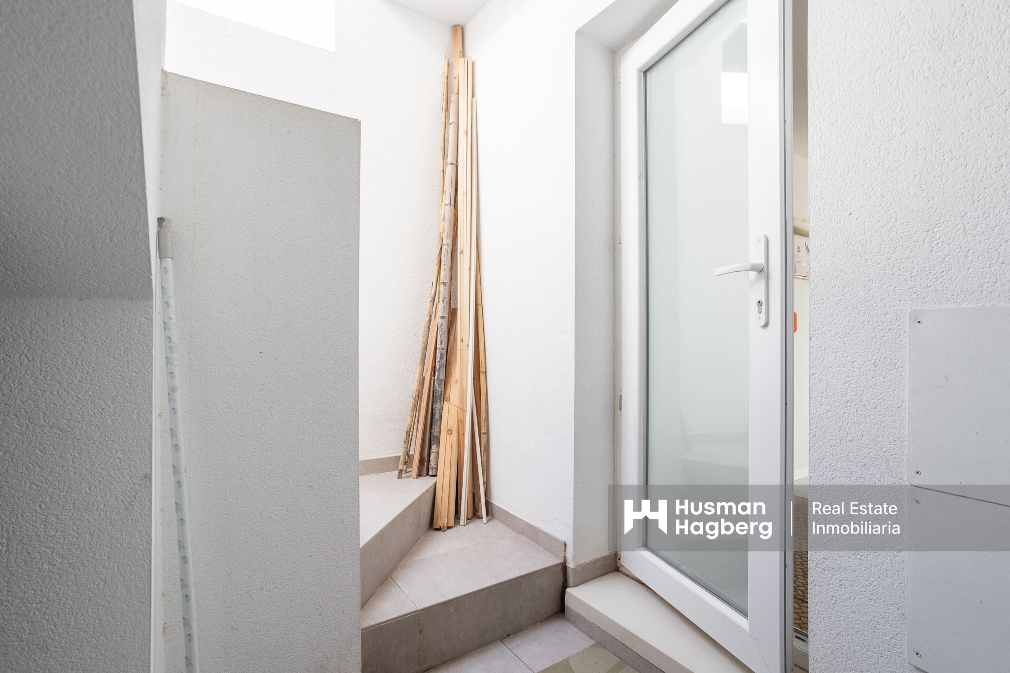 En våning upp väntar en privat takterrass som är lika stor som själva bostaden, vilket ger dig ett generöst extra rum under bar himmel. Här finns gott om plats för solbad, loungemöbler, matgrupp och växter - en plats där du kan skapa din egen oas och njuta av långa dagar och ljumma kvällar. Denna takterrass tillför bostaden en känsla av rymd och frihet som få hem kan erbjuda.