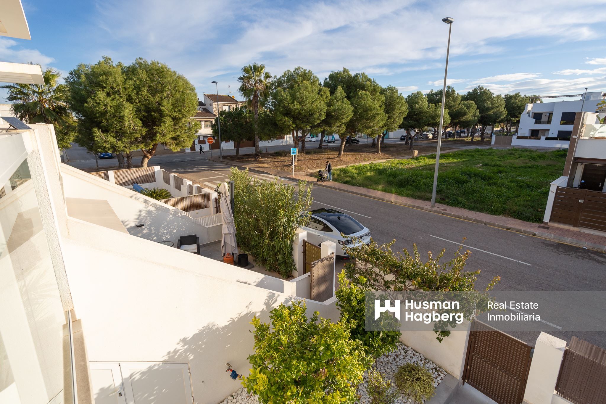 I ett omtyckt och välskött bostadsområde, bara en kort promenad från strandlivet och Mar Menors lugna vatten, finner du detta välplanerade hem som erbjuder både komfort och en äkta medelhavskänsla. Här bor du med tillgång till flera privata uteplatser, gemensam pool och närhet till både service och natur - ett boende som passar lika bra som semesterbostad som för längre vistelser.