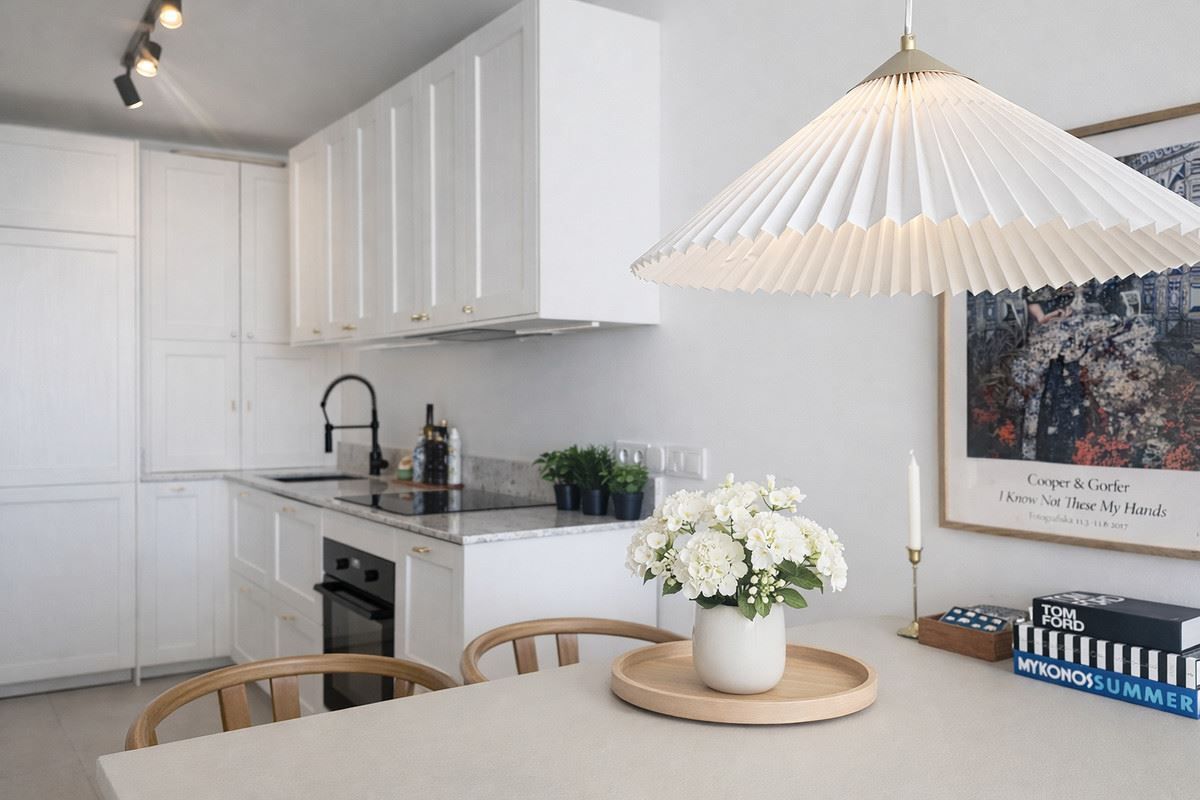 Bostaden erbjuder tre sovrum och två badrum med en modern och genomtänkt planlösning. Det öppna köket smälter samman med matplats och vardagsrum och skapar ett ljust, luftigt och inbjudande sällskapsutrymme.