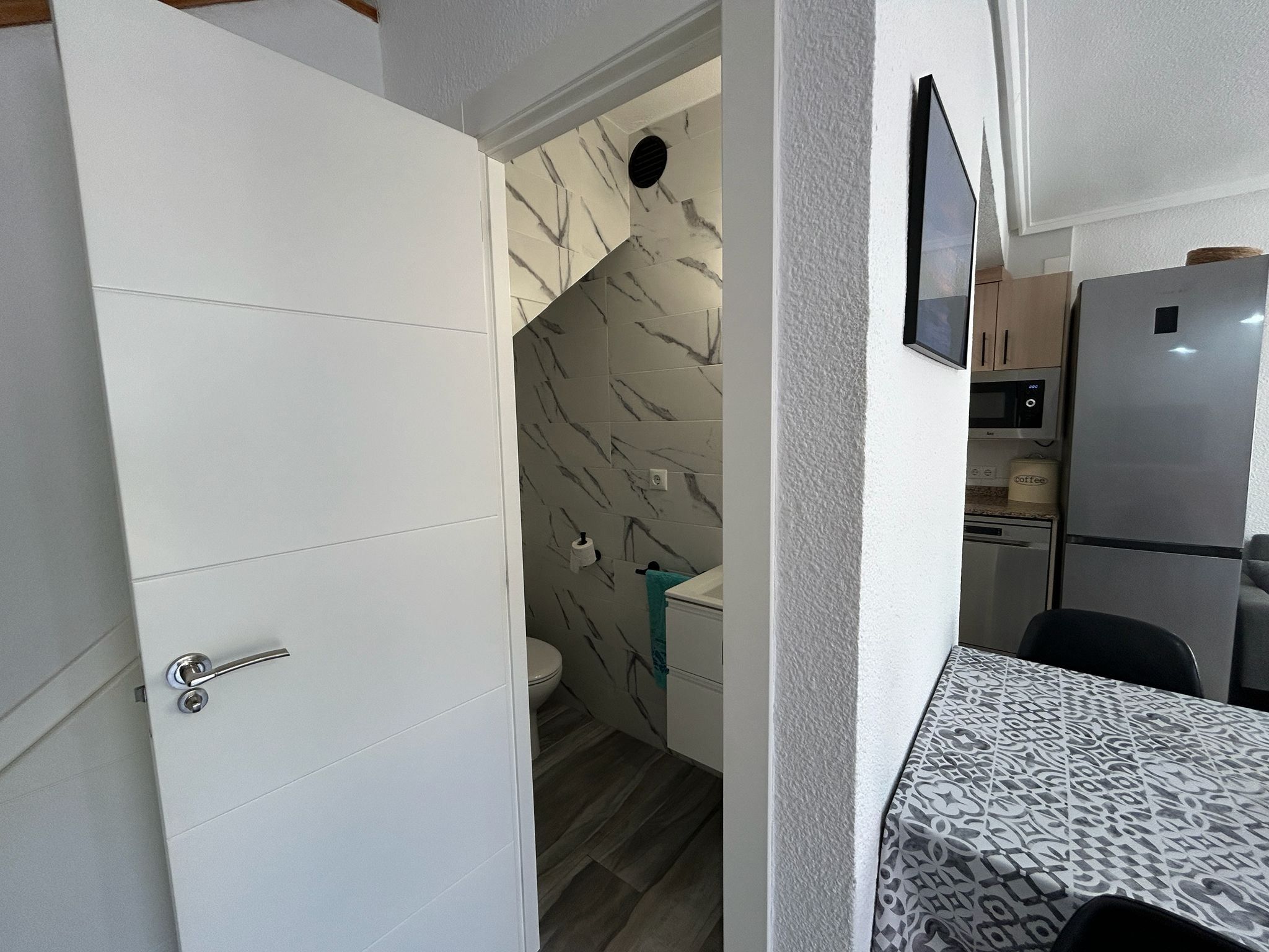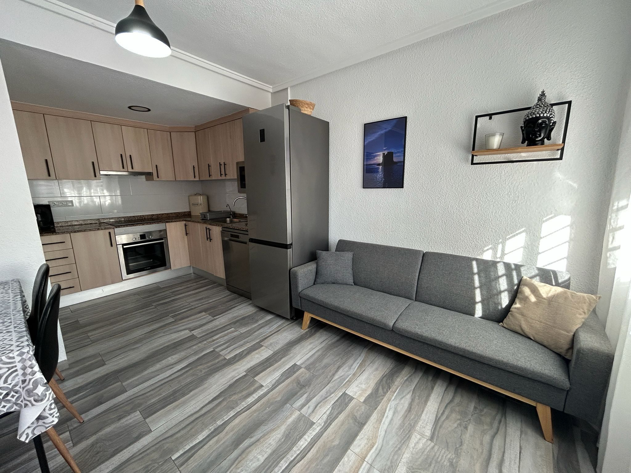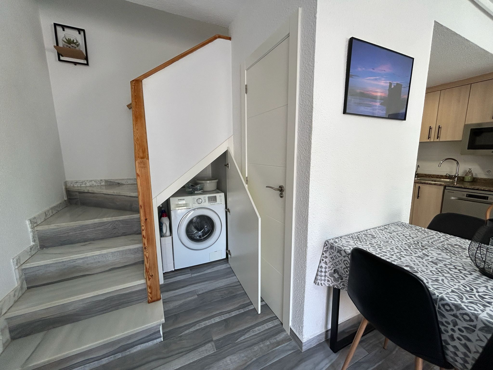 En privat parkeringsplats ingår i priset, och bostaden erbjuder även ett praktiskt förråd som gör det enkelt att förvara allt från strandutrustning till vardagsföremål. Individuell uppvärmning och luftkonditionering gör att inomhusklimatet alltid kan anpassas efter säsong och preferenser, vilket skapar en bekväm atmosfär året runt.