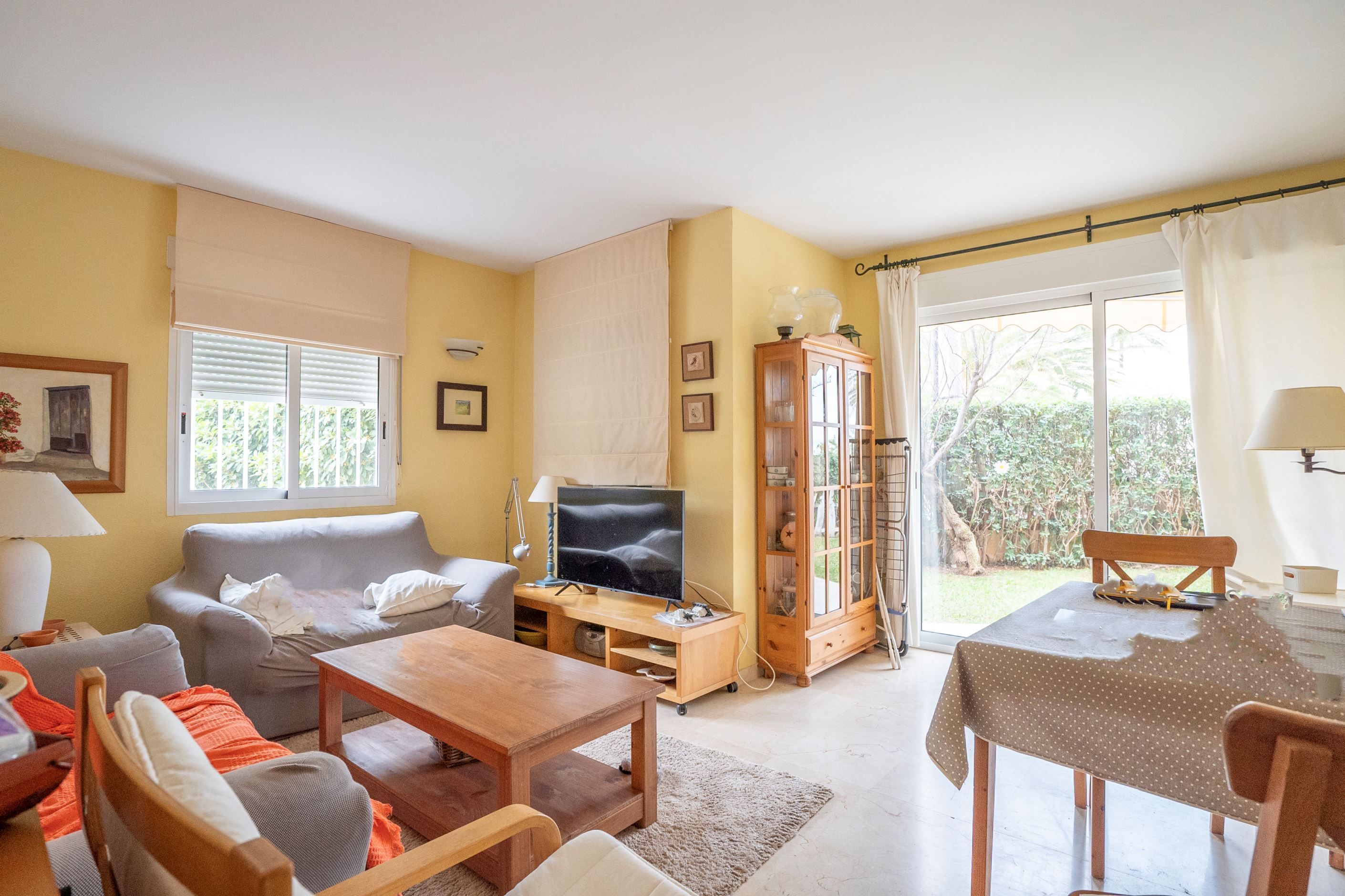 Den täckta terrassen och den privata trädgården ger en idealisk plats att njuta av det spanska klimatet. Urbanisationen erbjuder stora gemensamma trädgårdsområden, pool för vuxna, barnpool samt direkt tillgång till stranden. Parkering på området är reserverad för boende. En perfekt bostad både som permanentboende och semesterhe.