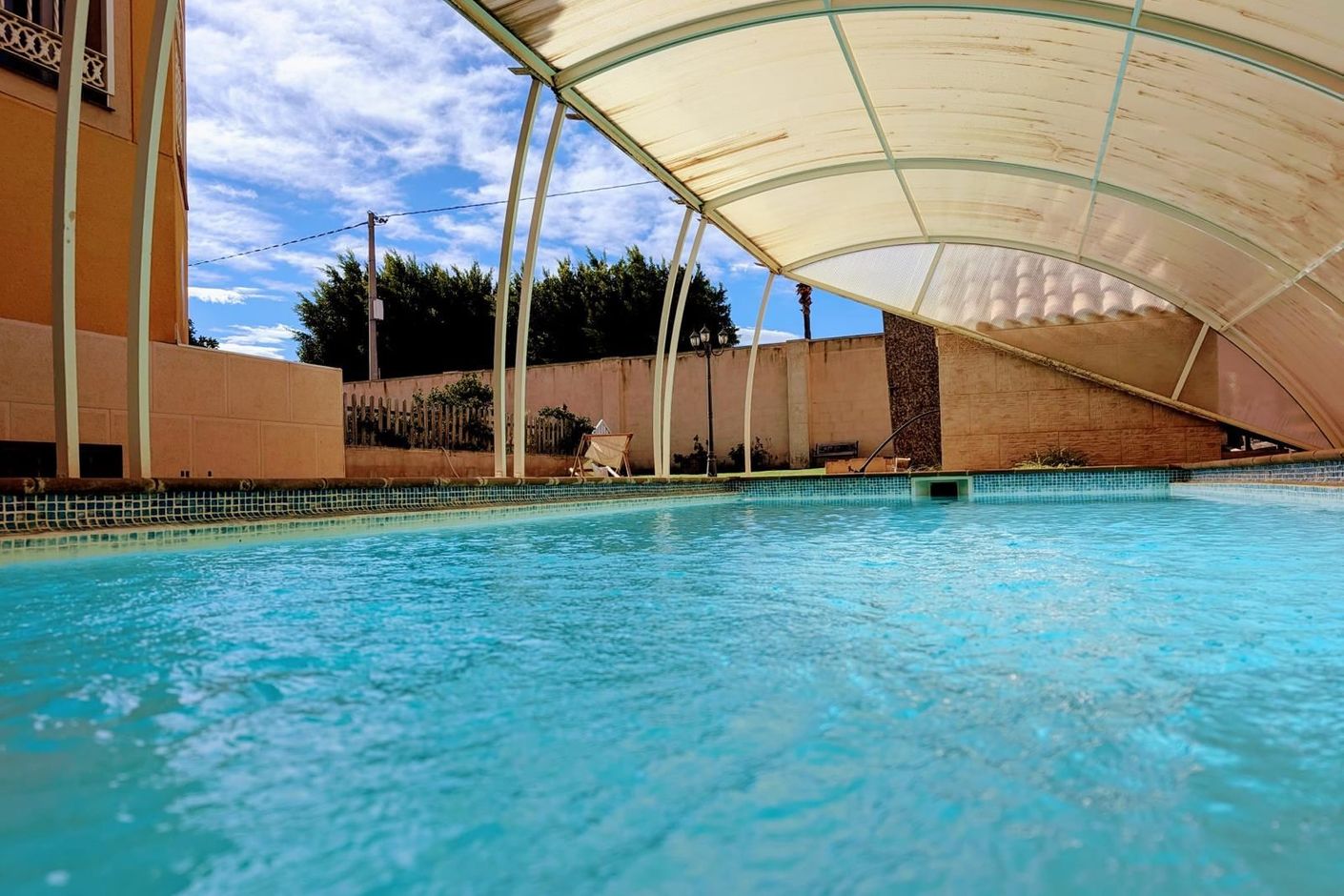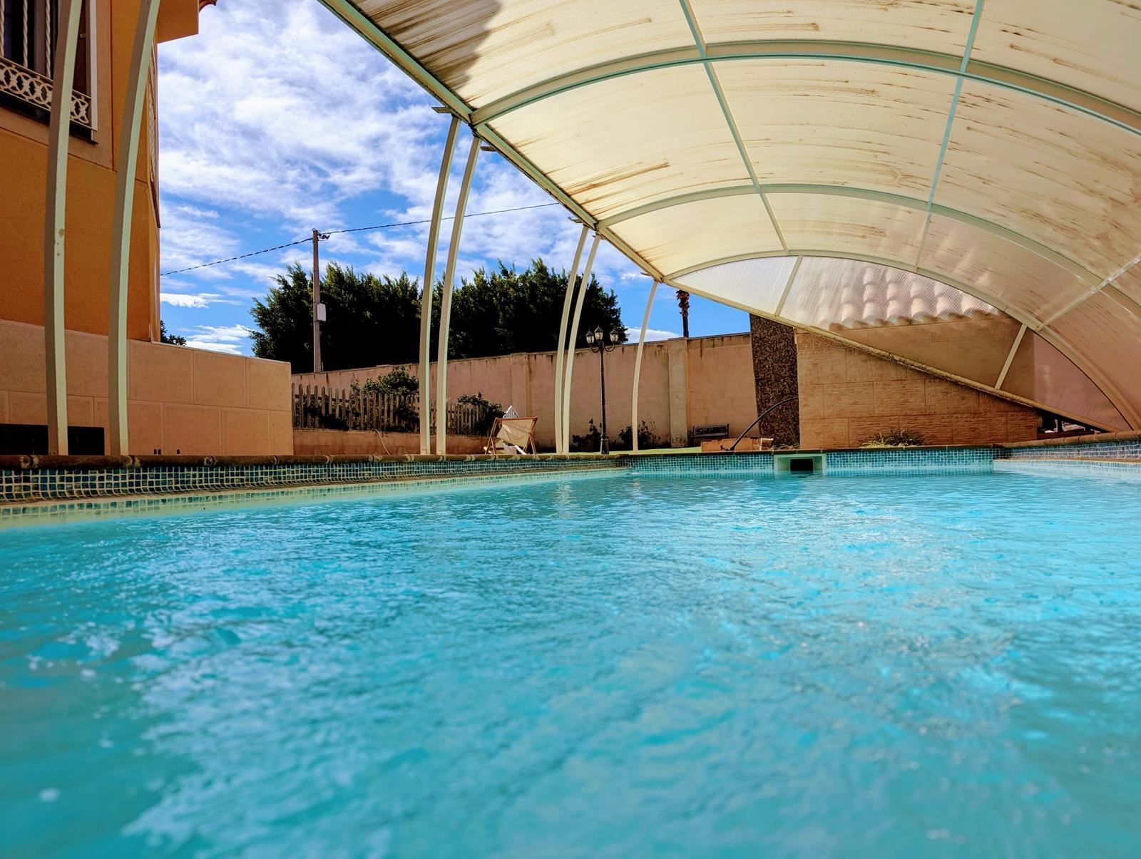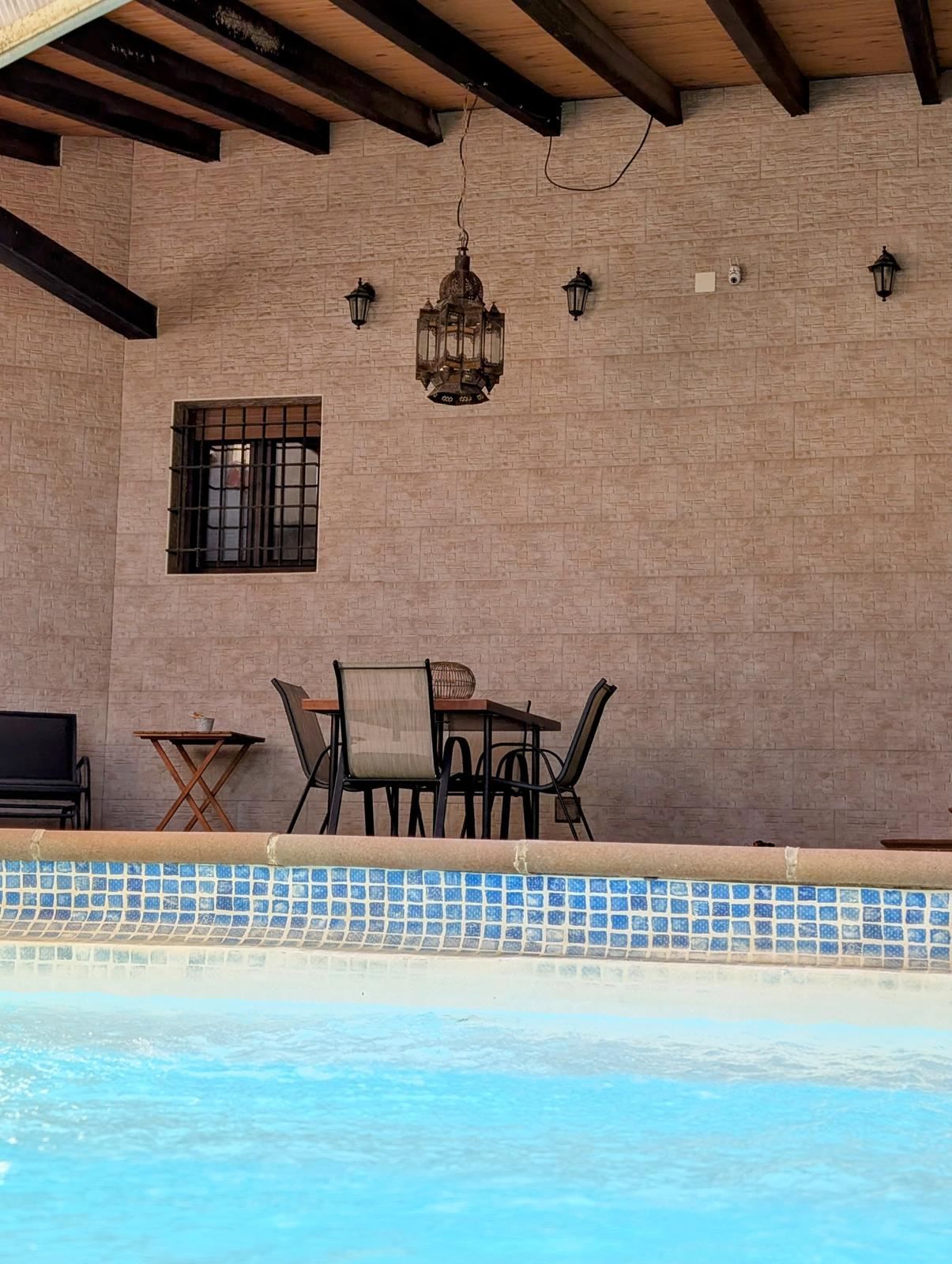 Utomhusmiljön är en av bostadens största tillgångar. Den stora tomten ger gott om utrymme för avkoppling, lek och sociala stunder. Här finns en vacker pool, en lummig trädgård och två stora verandor på 19 m² respektive 60 m² – perfekta för långa sommarkvällar, grillmiddagar och sköna stunder i skuggan. Den större verandan är dessutom utrustad med grill, vilket skapar en naturlig samlingsplats för både vardag och fest.
