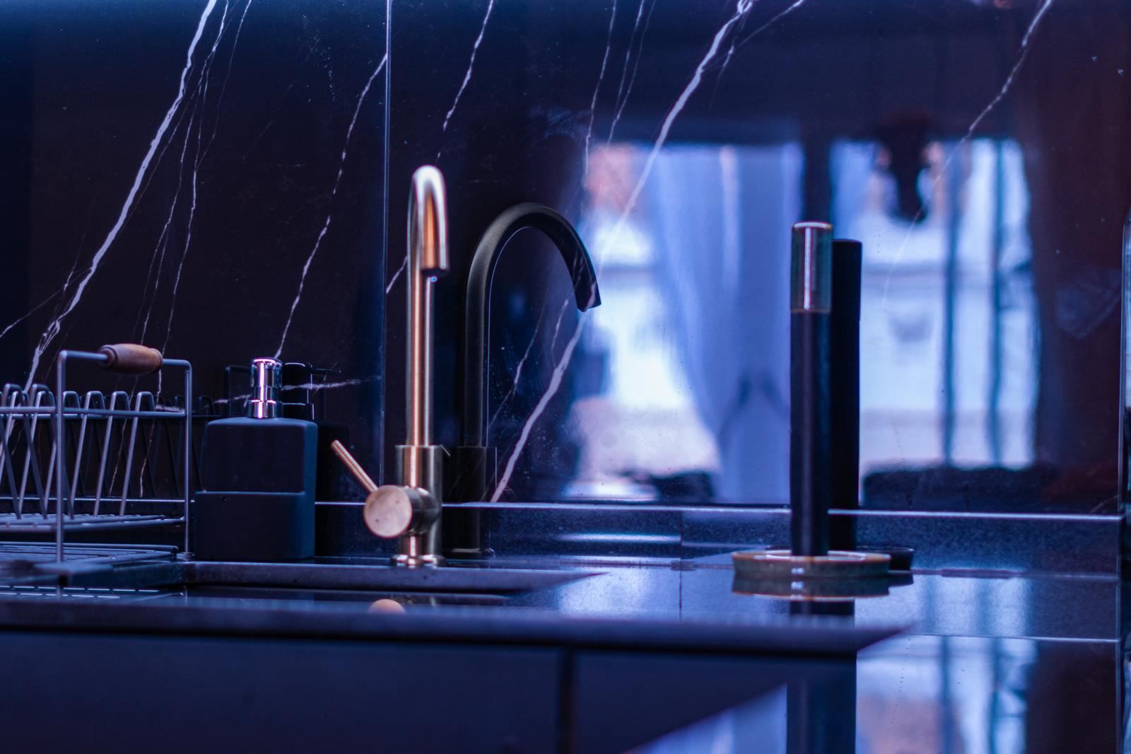 Det stilrena köket är en riktig höjdpunkt. Med sin eleganta design i svart marmor skapar det en exklusiv och modern känsla som passar perfekt för både vardag och sociala stunder. Alla vitvaror och detaljer är genomtänkta för att göra köket både vackert och funktionellt.