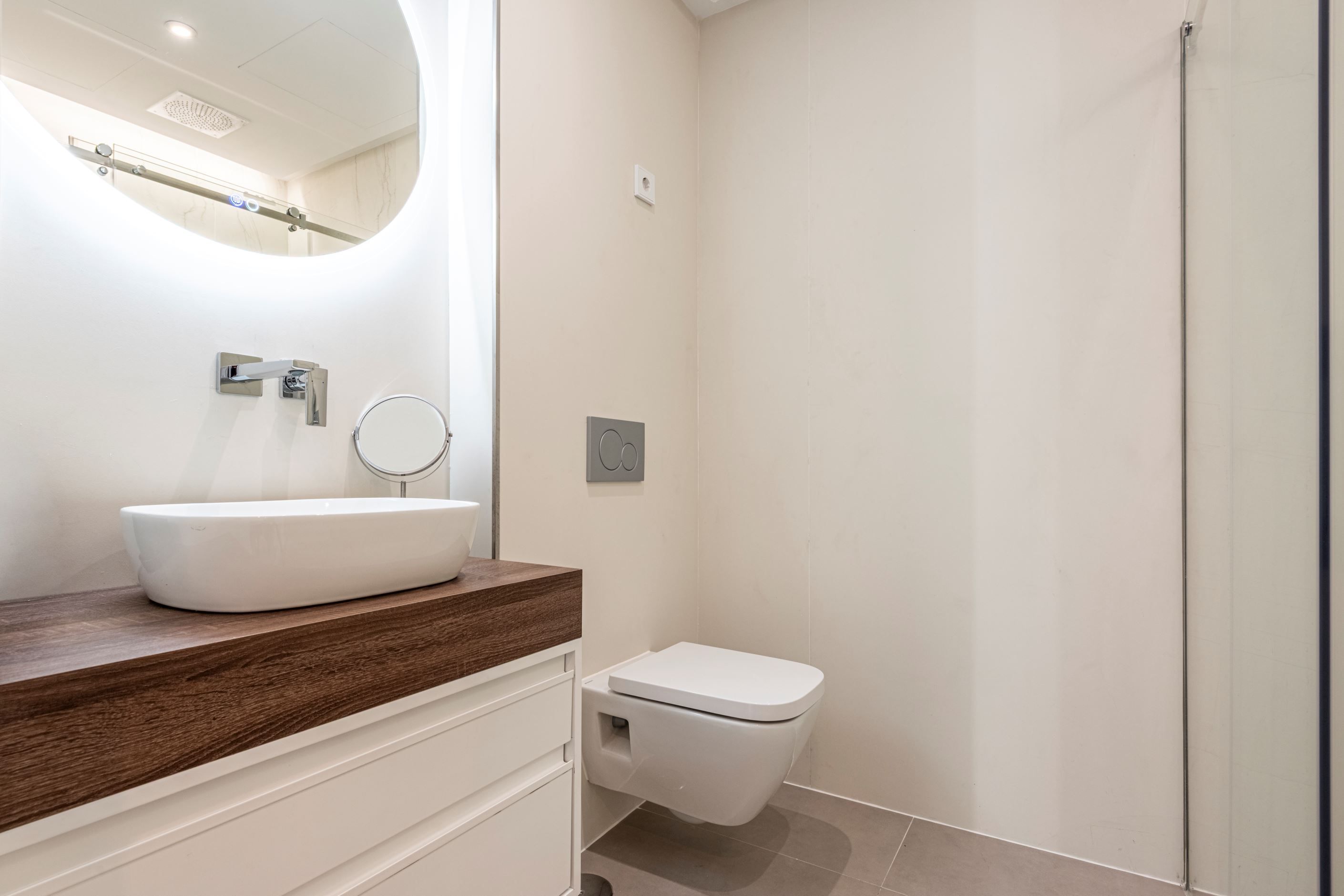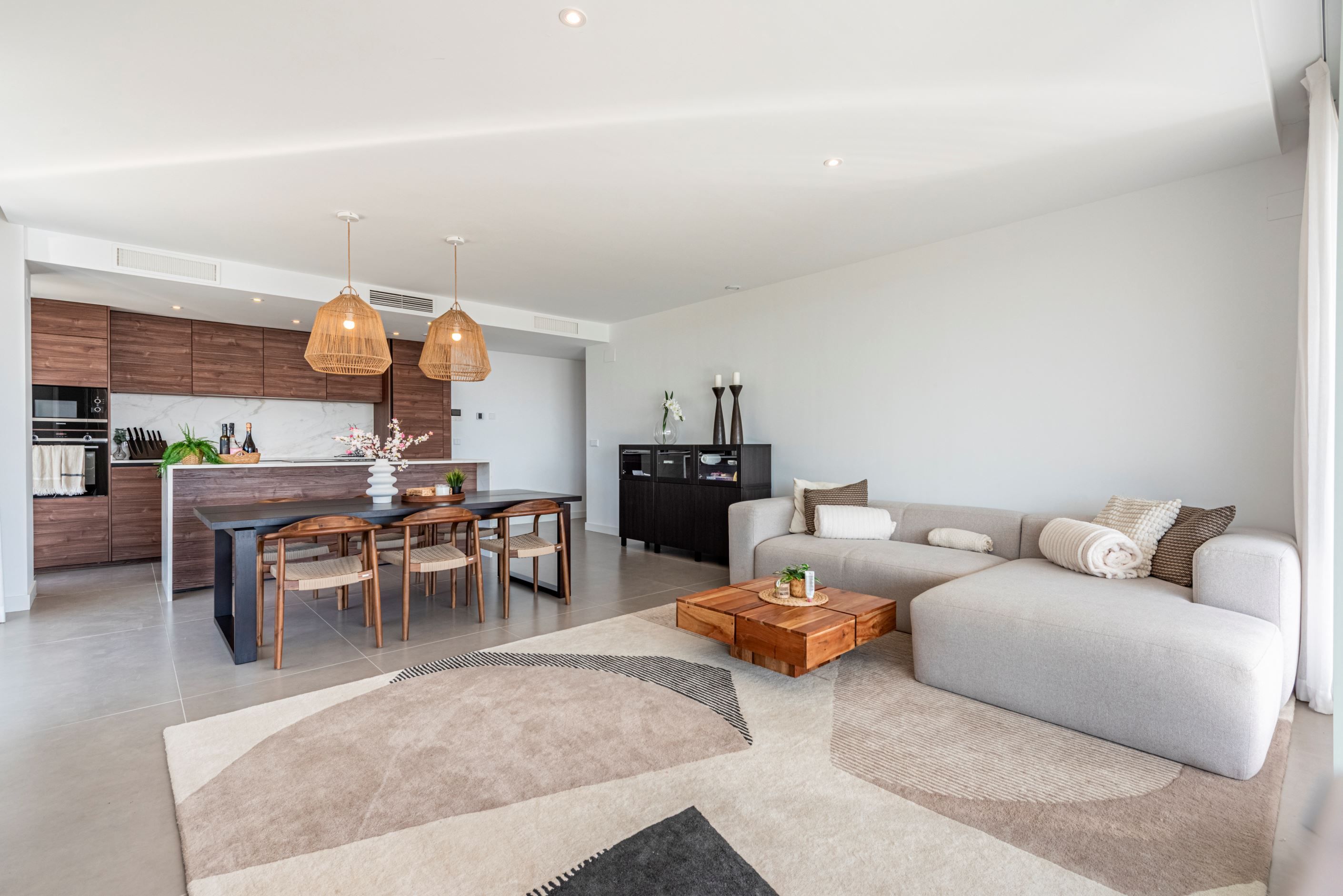 Lägenheten erbjuder tre rymliga sovrum, varav 1 master sovrum en-suite, och två eleganta badrum, utformade med fokus på både funktionalitet och stil. Den öppna planlösningen skapar ett ljust och luftigt hem där vardagsrum, matsal och kök smälter samman på ett naturligt sätt – perfekt för både vardagsliv och sociala tillställningar. Stora fönsterpartier släpper in rikligt med dagsljus och förstärker känslan av rymd.