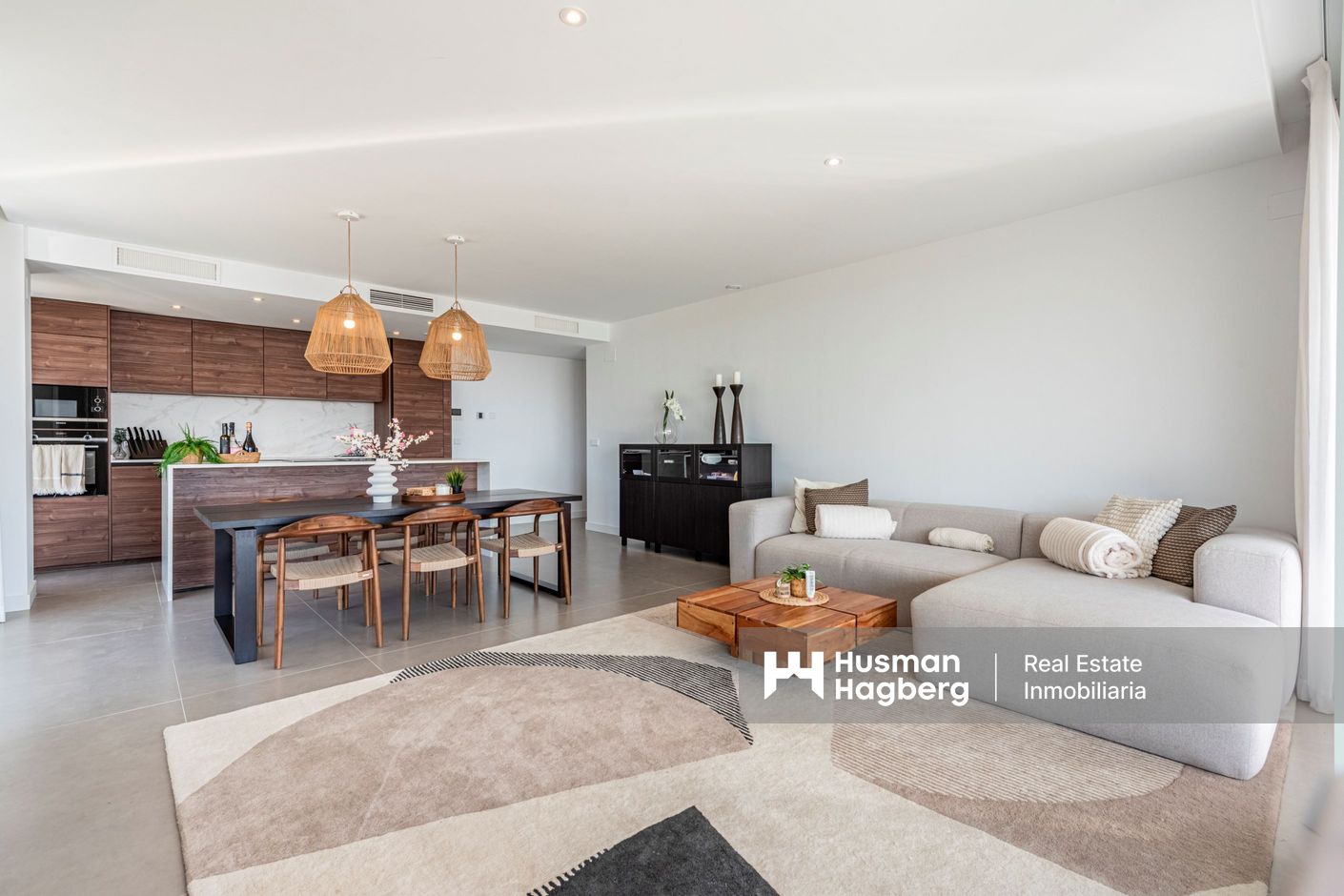 Från bostaden nås en stor syd-/västvänd terrass där du kan njuta av solen från eftermiddag till kväll. Härifrån erbjuds fantastisk panoramautsikt över havet, vilket skapar en perfekt plats för avkoppling, middagar utomhus eller att bara njuta av de spektakulära solnedgångarna över Medelhavet.