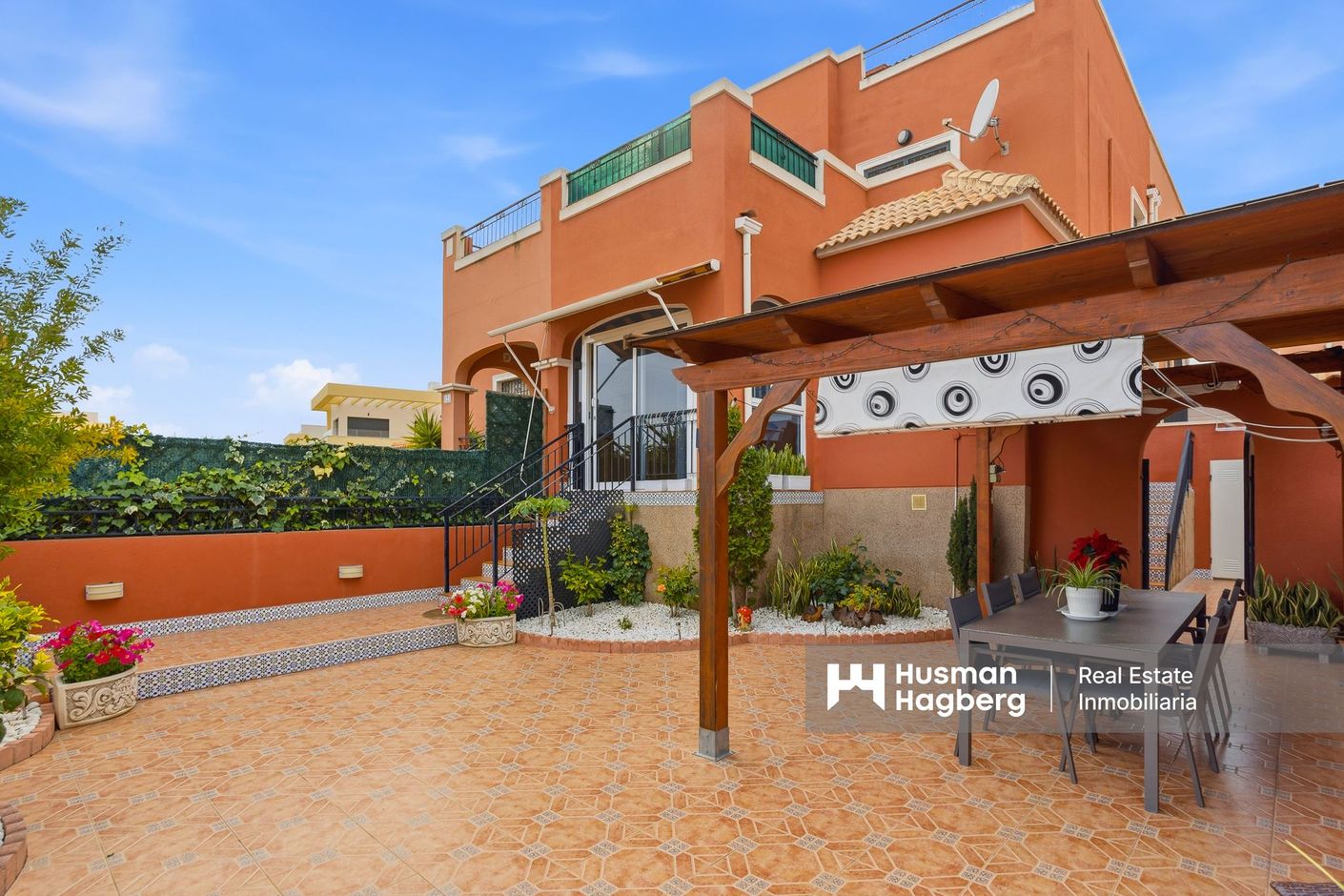 I ett lugnt och omtyckt bostadsområde där vardagen flyter fram i en behaglig takt och solen är en naturlig del av livet, hittar du detta välskötta radhus med tre sovrum och två badrum. Ett hem som bjuder på både trivsel och funktionalitet, perfekt för dig som söker ett bekvämt boende med gott om utrymme och en känsla av att kunna leva lika mycket ute som inne.