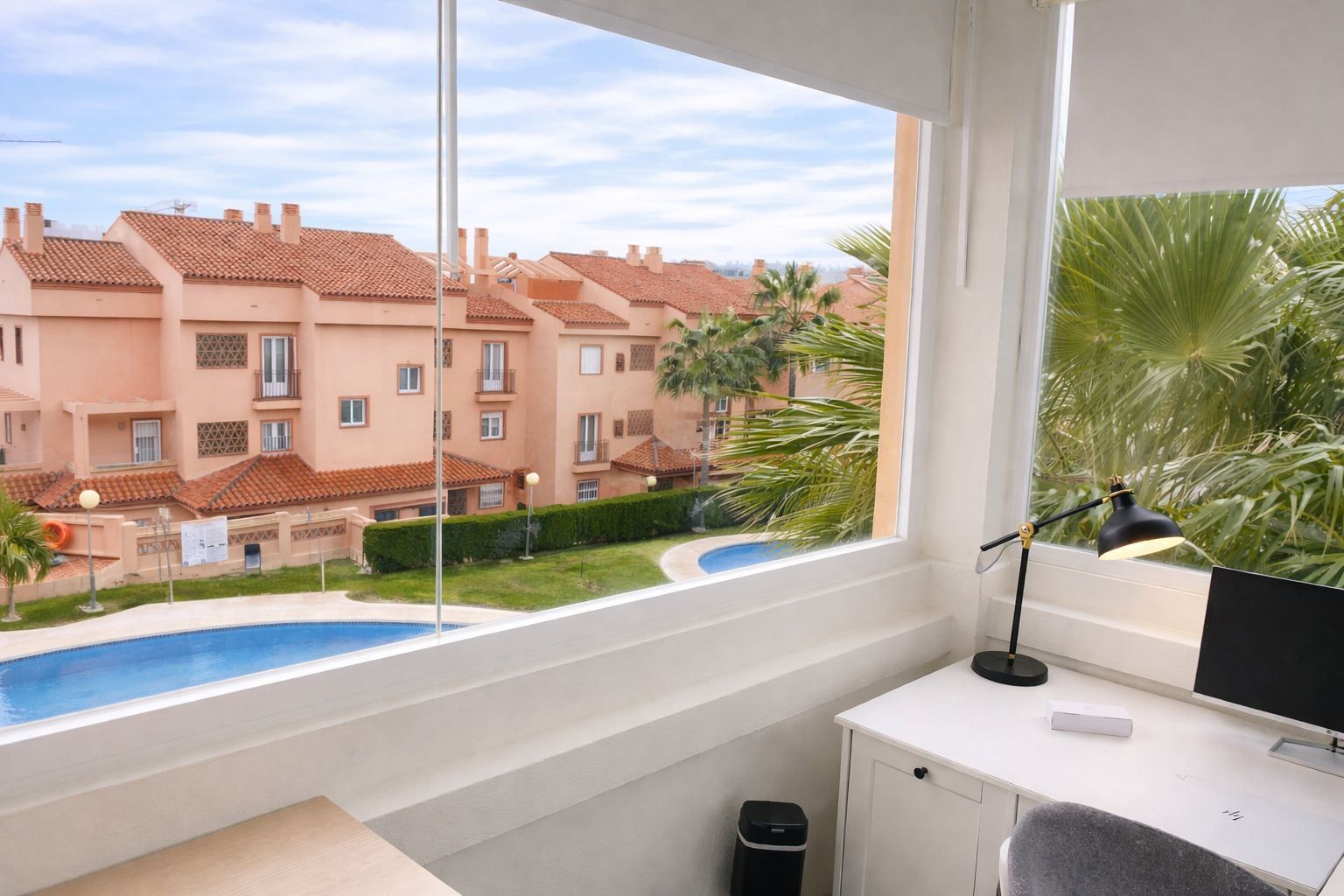 Bostaden tillhör en välskött förening med gemensam pool, perfekt för avkoppling under sommarens varma dagar.