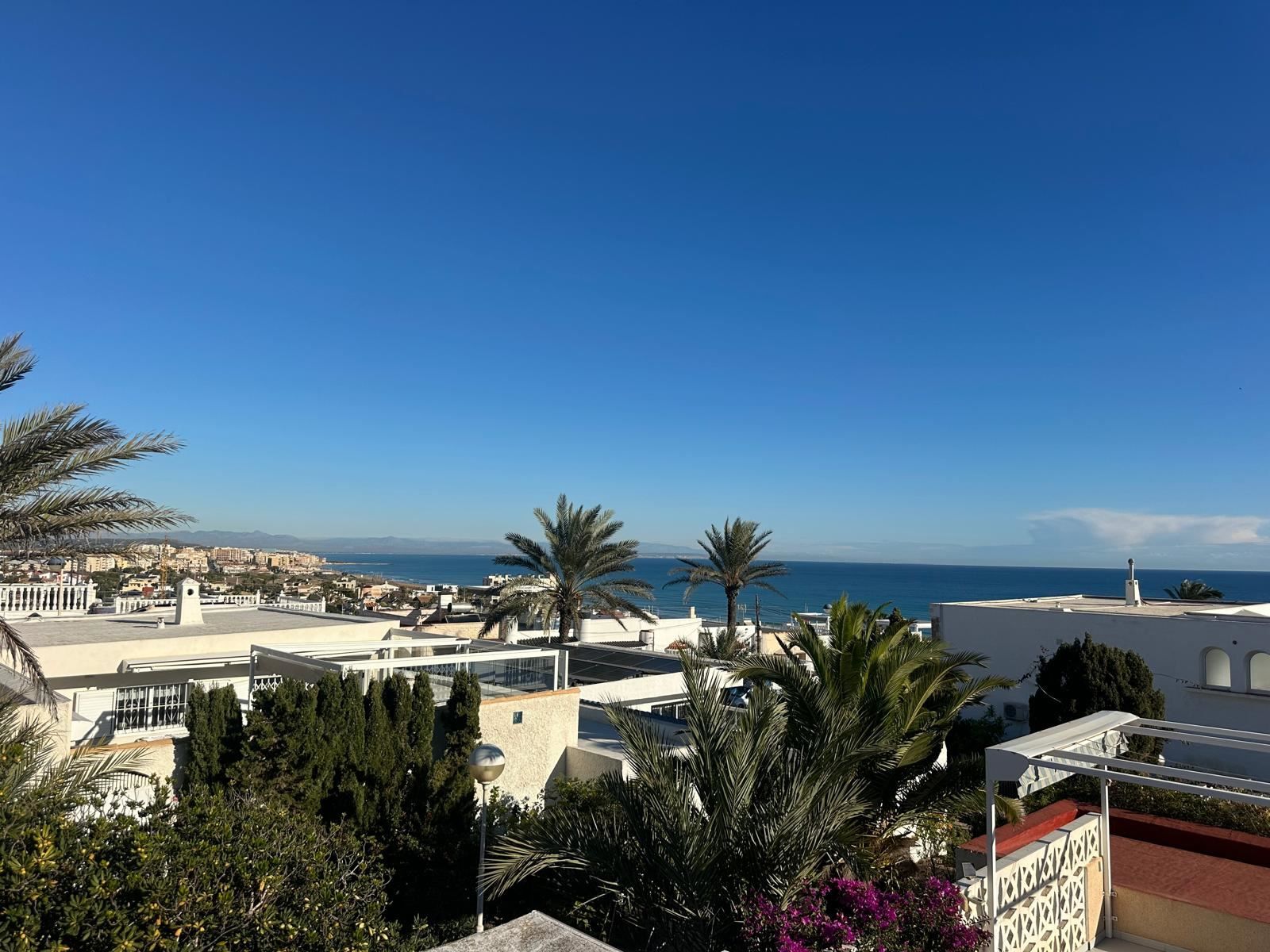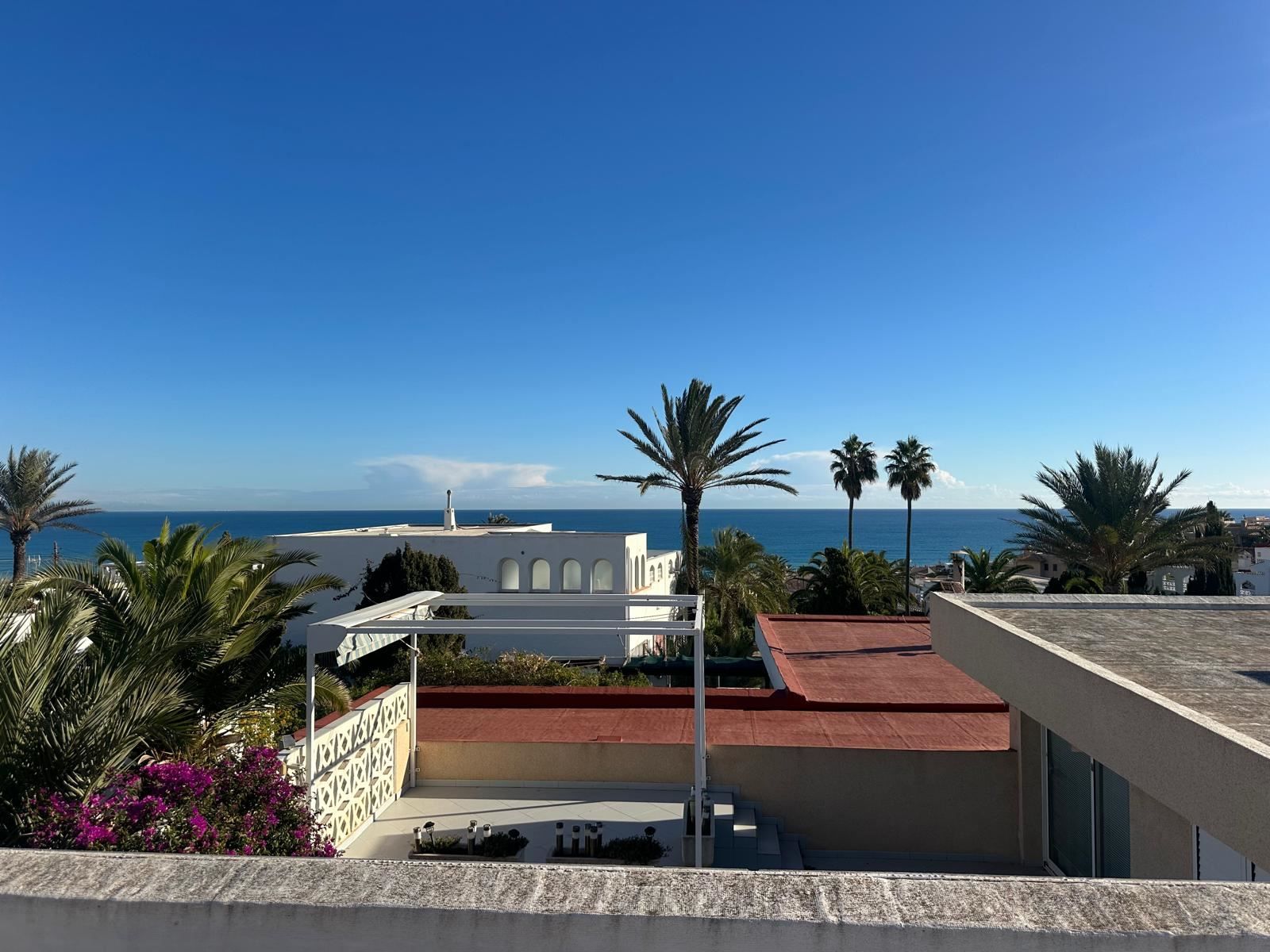 Charmigt radhus med takterrass i soligt läge och havsutsikt